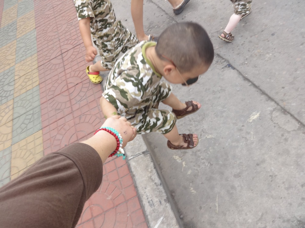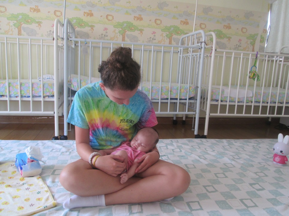 We headed back to the apartment to drop off our purchases and then went right to our afternoon service. I went to the Baby Home with Daniel, Sabrina, Sophia, Addy, Peter, and Esmer. Daniel and Sophia sewed bedding for the babies in Taiyuan – we are going to bring them on our trip, so we had to finish them. Yesterday I cut, ripped, and measured the fabric with Addy and Jack. It is such a great experience playing with the toddlers and babies. I remember the first time I saw them and feeling sympathetic and sorry for their disabilities and conditions. Now I see how normal they are. I find them so cute and adorable. So playful and happy and so smart! It has been such a life-changing experience playing and teaching these kids. Now I can see what my parents mean when they say having kids was hard, and I’ve only been here a week one baby would not let me put him down, and whenever I tried, he would cry and scream MAMA. My left arm almost fell off from holding him hours on end. 😉
