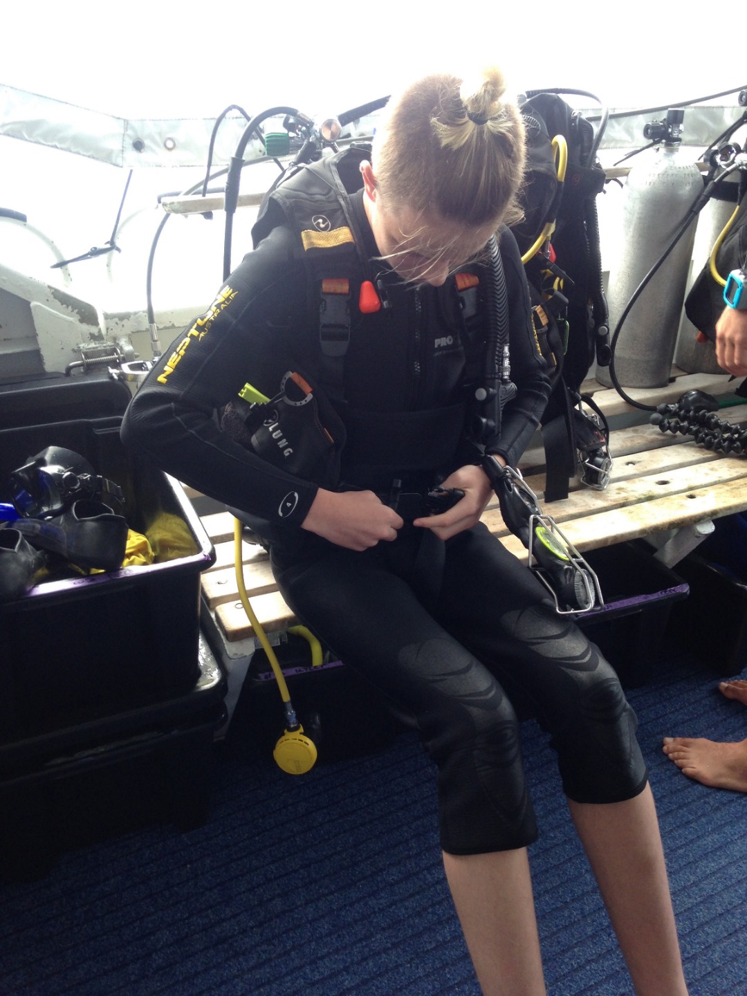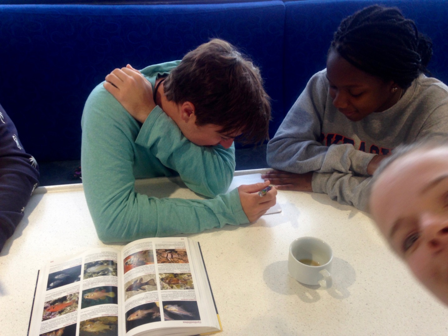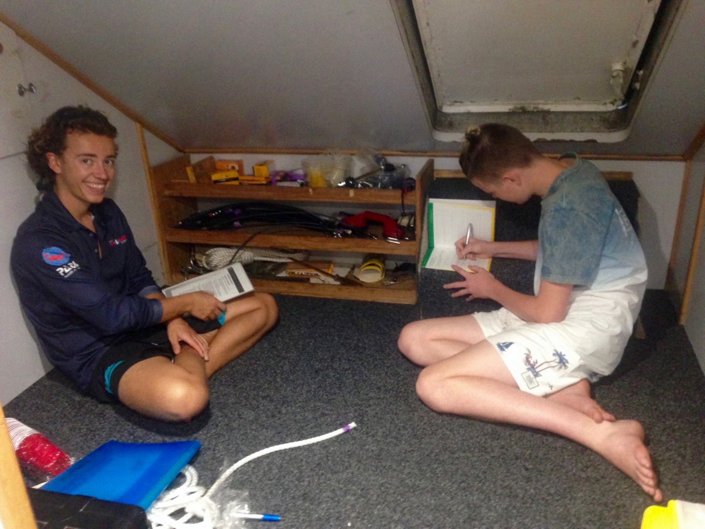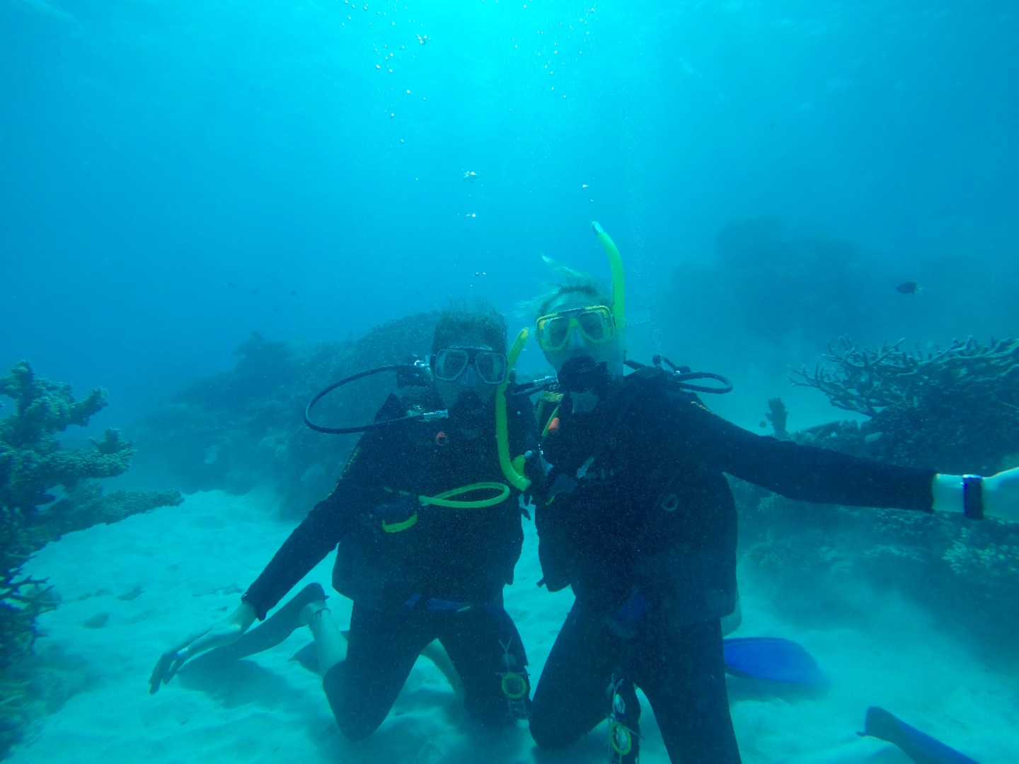 Today we had a great day of dives. Rex and Celsius woke up super early to go on the 7:30 dive with Shaun and Carolyn, while I had the best sleep I have had on the entire trip. When Sofi and I were woken up by Carolyn knocking on our door after their dive, we ate breakfast. The boat was then moved to a different site for the second dive of the day. Once we were there, we went to our briefing and got ready to dive. It was an amazing dive with colorful fish and coral surrounding us. I surfaced early with Rex because neither of us can conserve our air very well, while the other buddy pairs kept diving a little while longer. Once we got out, I was cold, but the dive was worth it. Diving always makes me tired, so after lunch, Sofi and I took the best nap in the history of naps before the next dive of the day. The time came to dive again, and it ended up being my favorite dive of our whole trip. I saw two sharks and a turtle swimming. Sofi got really good footage of the wildlife surrounding us. Once again Rex and I ran out of air before everyone. After this dive, my ear started hurting a little, so I decided to sit out on the night dive. I received a very creative Haiku from Shaun about my new favorite animals, sea cucumbers, and then he wrote one to everyone else because he felt bad. I’m excited to see more sea cucumbers tomorrow.