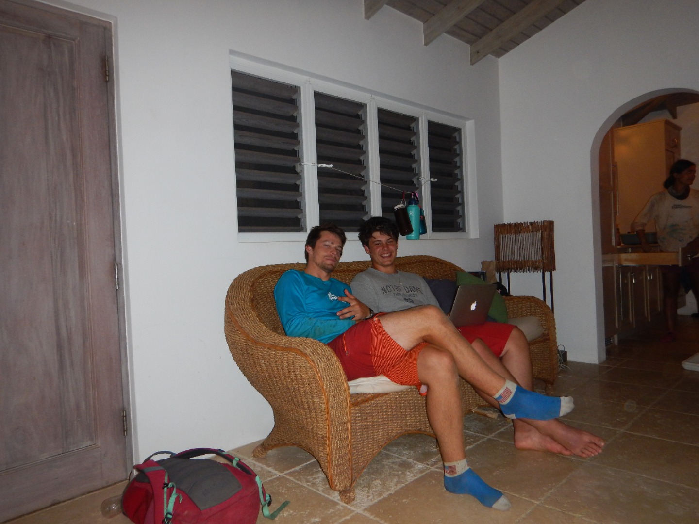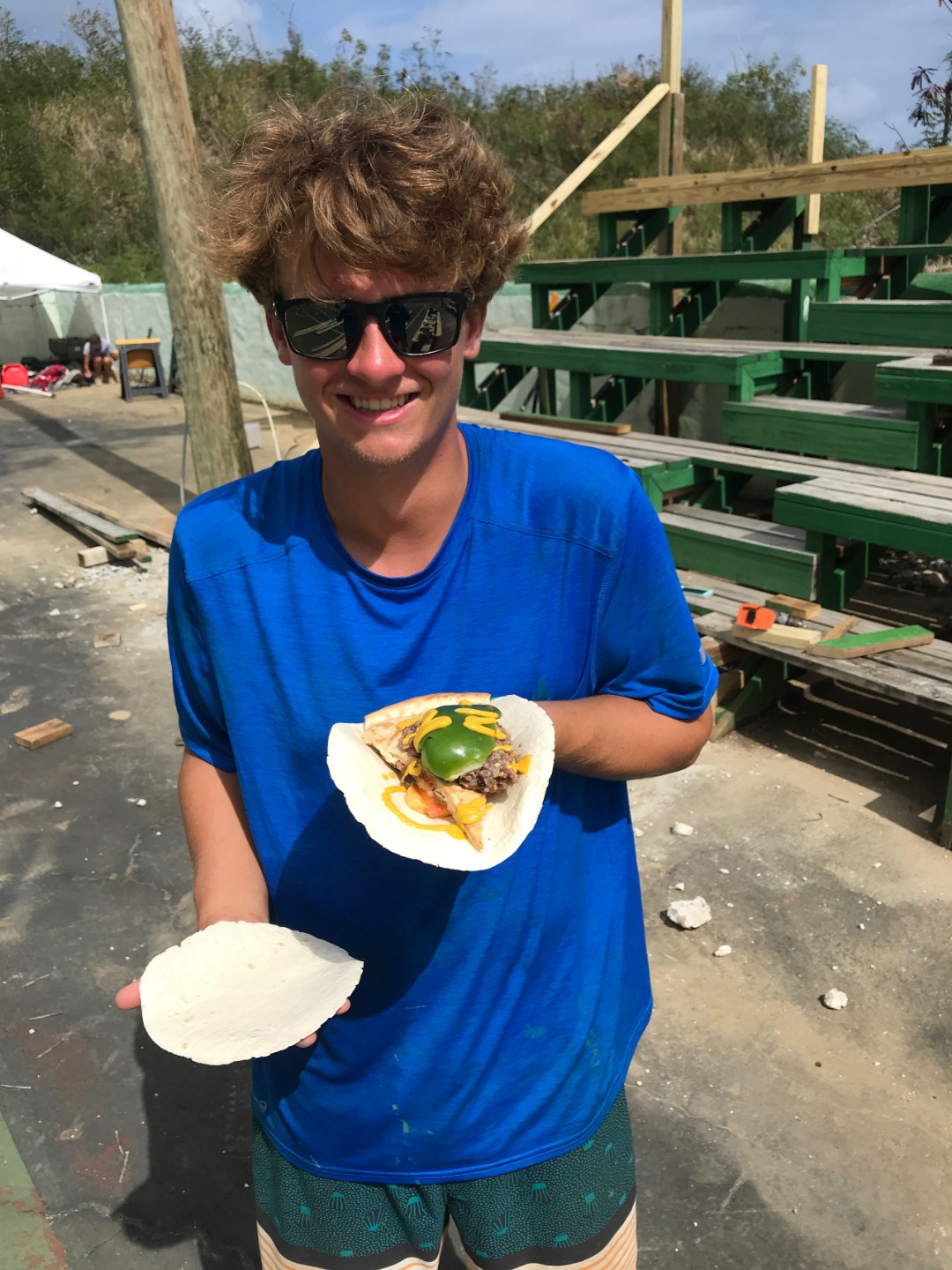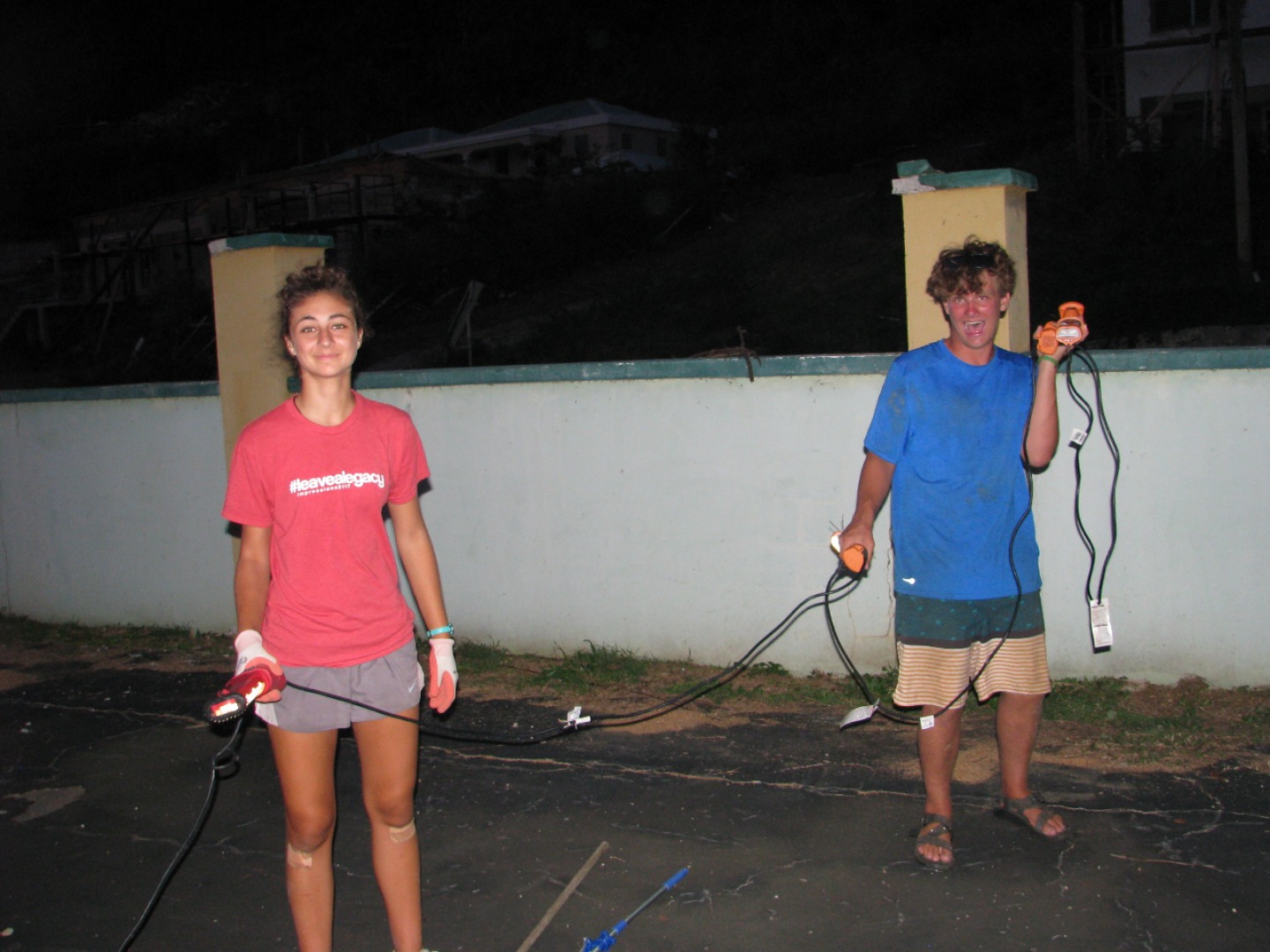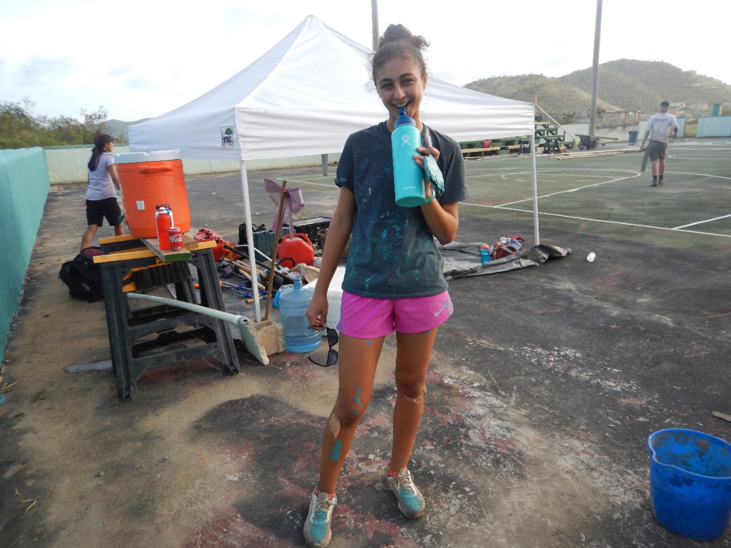 Nobody woke us up this morning because of the long day we had yesterday (except Isaac, David, and Eliot who went working on the bleachers). The girls woke up around 8:00. Don’t ask me why but Shannon and I were in a very funny mood while making oatmeal. We kept laughing for nothing, and 30 minutes later the boys woke up too. Jamie tried to make chocolate chip pancakes. After cleaning and getting dressed, the bleacher’s team came back to the villa: it was time for us to have a deep discussion. Everyone tried to explain their feelings honestly, and we got over some of the tension from yesterday. Then Elliot explained to us that children from the island would come tomorrow to paint the wall, so we had to get the first layer done. David added that even if we don’t do everything we wanted to, coming to this park and trying to make a difference gives hope to local people. He is right because people keep thanking us or proposing to help every day, we even got an article in the local newspapers! We finally ended the discussion with Jaden and Chase eating an egg yolk for fun. With a little bit more motivation we came back to work around 12. I started pressure washing the walls, while David and Isaac got back on the bleachers, Jaden was repairing the wall, and the others started painting the blank wall. I finally reached team painting leaving the pressure washer to Chase. We had lunch on the basketball court and came back to our respective works. In our playful mood, Shanon and I painted the wall (and maybe our arms and legs too) talking about prom. We finally left at 6:30 with a part of the basketball area clean and walls painted. Back home, Jamie cooked cheddar broccoli pasta.