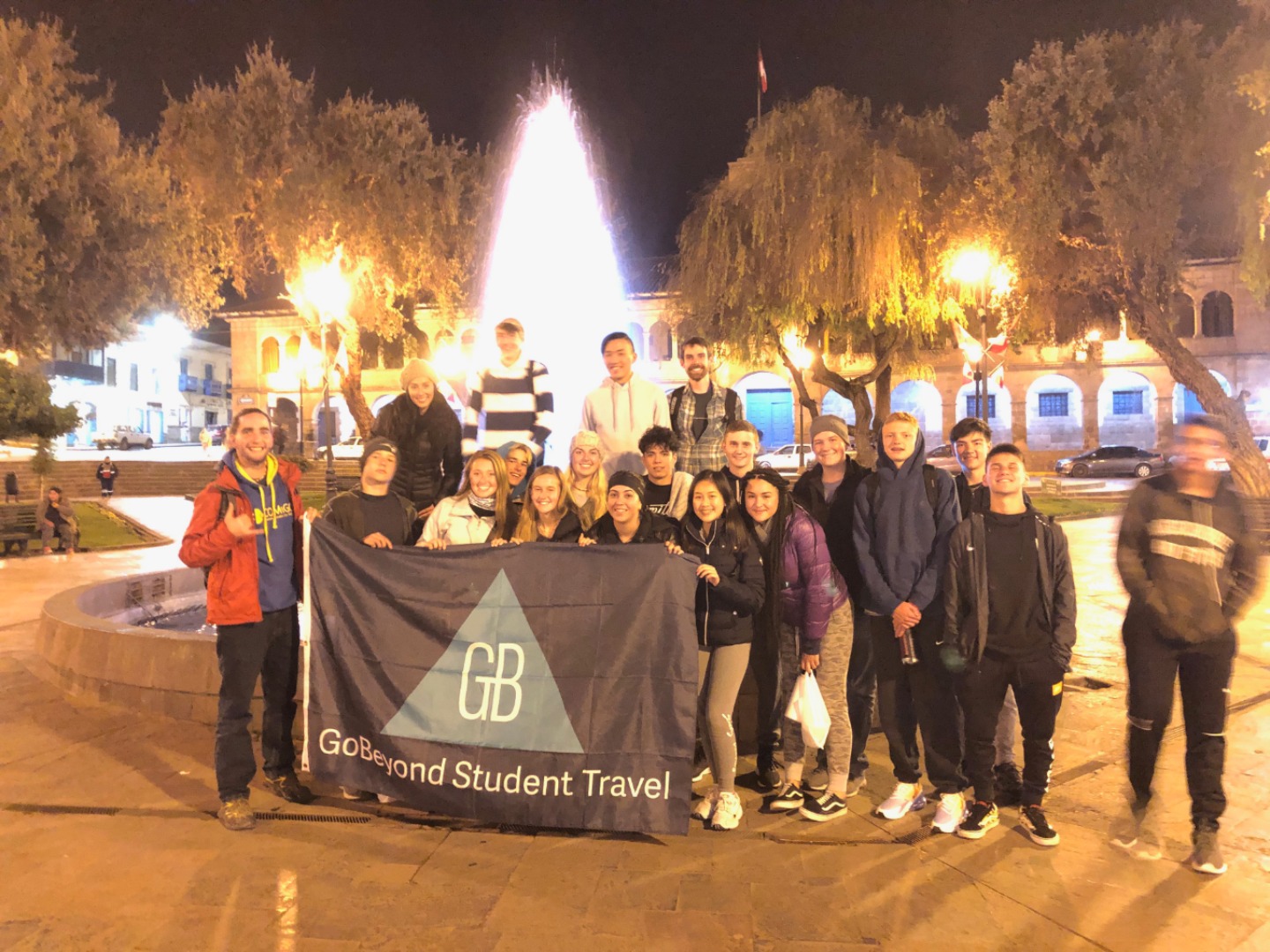 Today was the first full day for our joint expedition of Footsteps of the Inca and Sacred Valley Service! Our final teammates arrived early this morning in Lima, where we met them at the airport to continue our journey up into the Andes. The landscape change outside our plane’s windows was breathtaking as coastal surf gave way to jagged, sparsely populated Andean foothills, in turn giving way to snow-capped peaks and the sprawl of the ancient capital of the Inca, Cuzco (then known as Qosqo). On our way from the airport, our driver teased our upcoming trip by taking a route past the ruins of Saxsaywaman, which we’ll visit in depth tomorrow. An afternoon of lunch and full orientation led us into an evening of brief exploration of the Plaza de Armas, where the first souvenirs of the trip were purchased (though the purchase of sweaters could have been pragmatic, as most of the group is coming from hot summer temperatures and now we’re back to winter!). We finished our day with large bowls of warm soup and a photo op in front of a festive fountain in a smaller plaza, near our hostel.