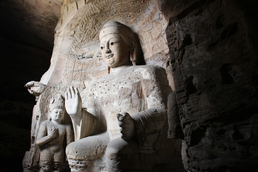 Today our day started at six in the morning as we had to go to Datong. We happily got on the bus and got ready for our five-hour drive. We stopped on the way to eat lunch at a restaurant, where we learned with great surprise that it is legal to smoke indoors in China. A while after we headed to the Buddhist caves. During this visit, we got to walk around and see several different caves. Some of the Buddhas were very impressive as they were carved with great detail despite their massive heights. Also, we learned in the museum that there is a collection of smaller Buddhas that represent the events of the larger Buddhas’ lives. After a long walk, we went back to the bus and went to the hotel. There we got to rest for a bit before having dinner at a western buffet. Overall we were very satisfied with our day as we got to step out of our comfort zone.