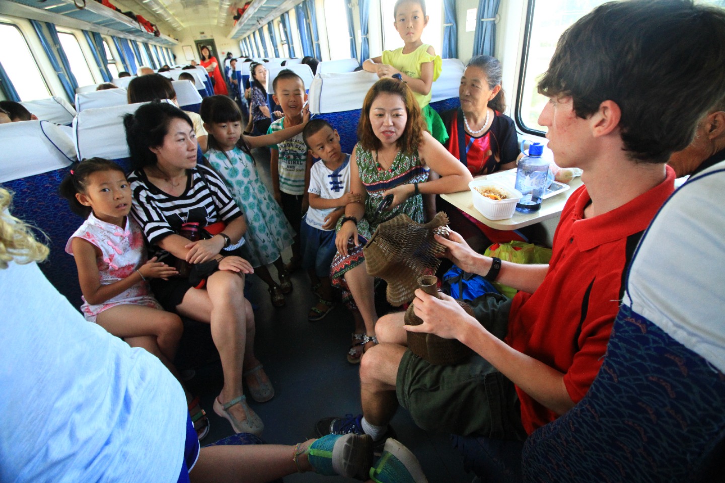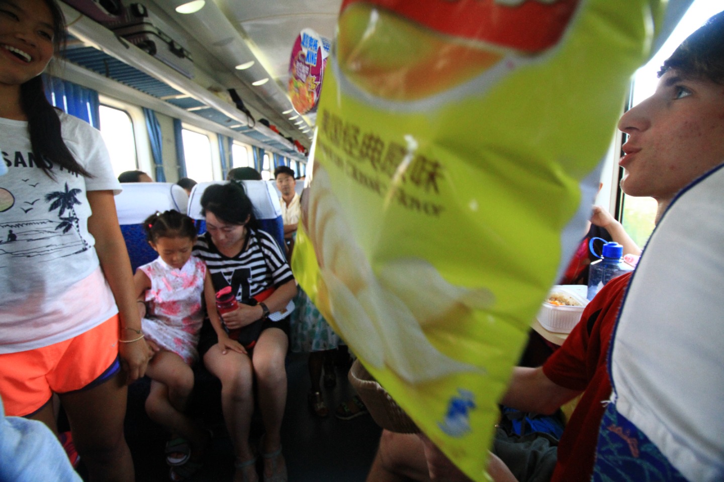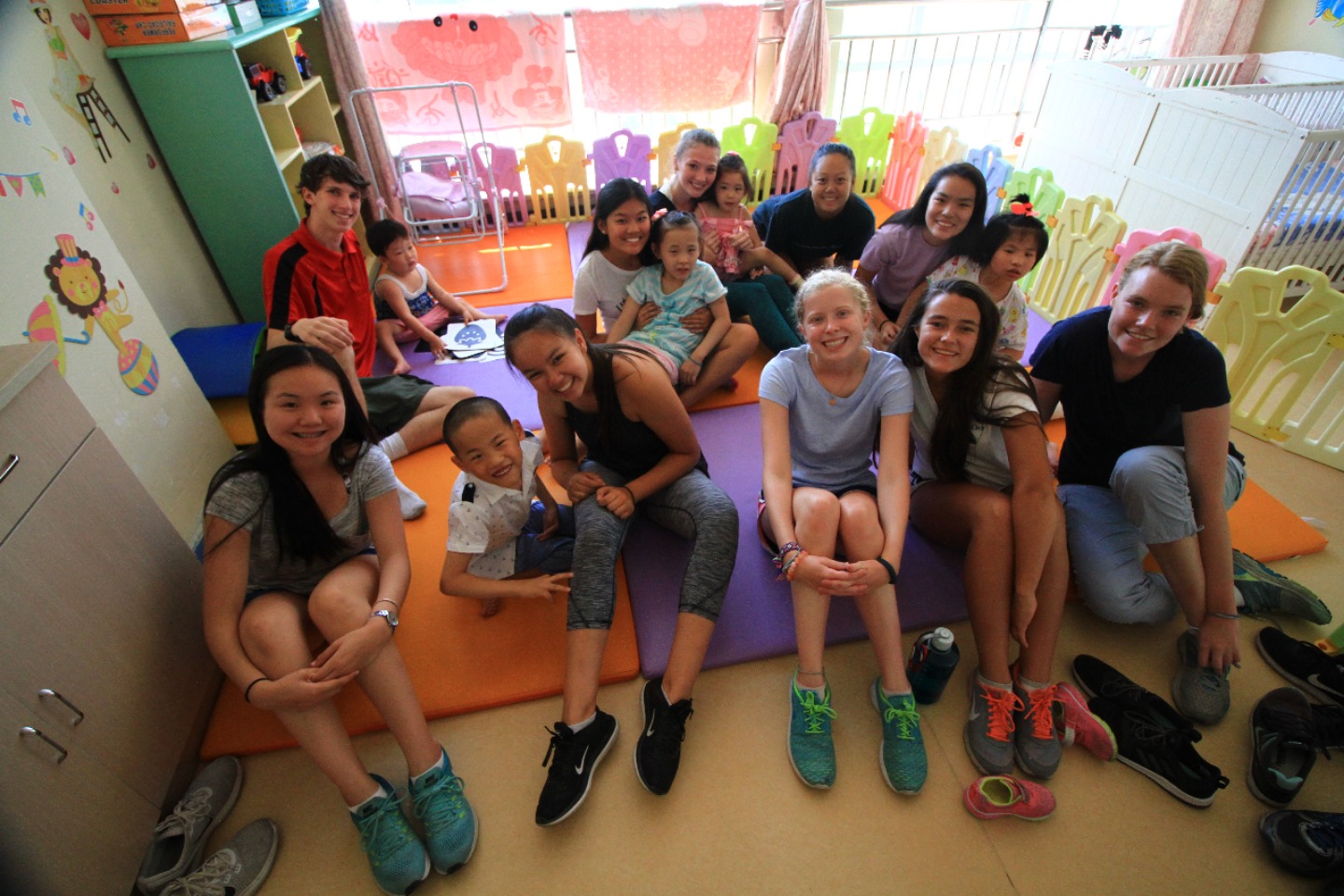 Today we got to sleep in a bit, which was an unexpected surprise. After breakfast at the hotel, we all piled into cabs with our luggage and headed to the orphanage. I think I can speak for everyone when I say that we are sad to have to leave these kids so soon. We all have enjoyed playing with and learning from these kiddos. But after our service, it was time to start to say a hard goodbye. After our goodbyes to our Baotou babies, we went for a snack run across the street, to stock up for the train ride ahead of us. After our snack run, we headed back to the orphanage to relax for a bit before our afternoon train ride to Datong. The children were all napping, so the downtime turned out to be a blessing in disguise for us as well. We all caught up on our journals and got to start making some string bracelets (shout out to Maggie for supplying the string). Right now, we are heading to Datong on another train ride – Seth is entertaining some of the children on the train while others of us are taking silly photos. Although I am sad to leave the kids and this cool town, I am excited to see what adventures lie ahead in Datong.