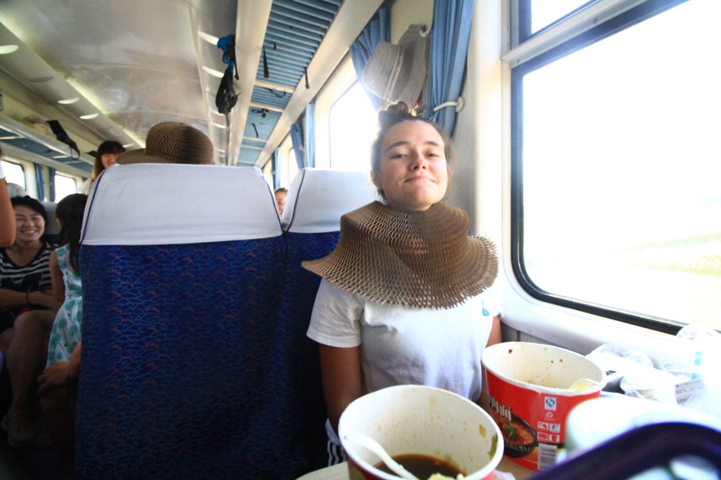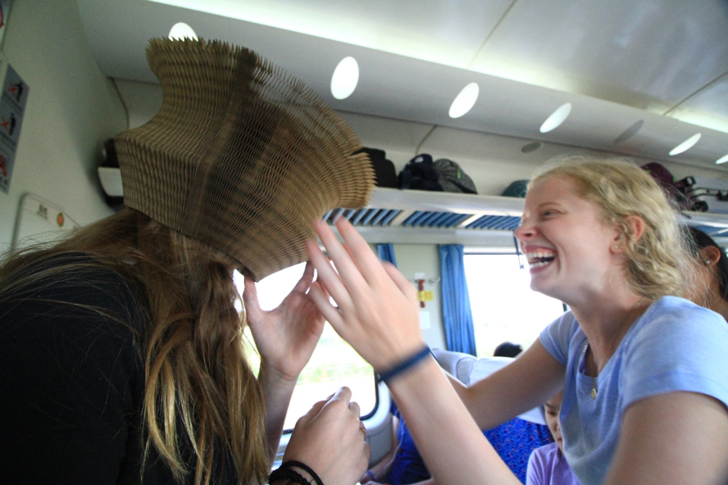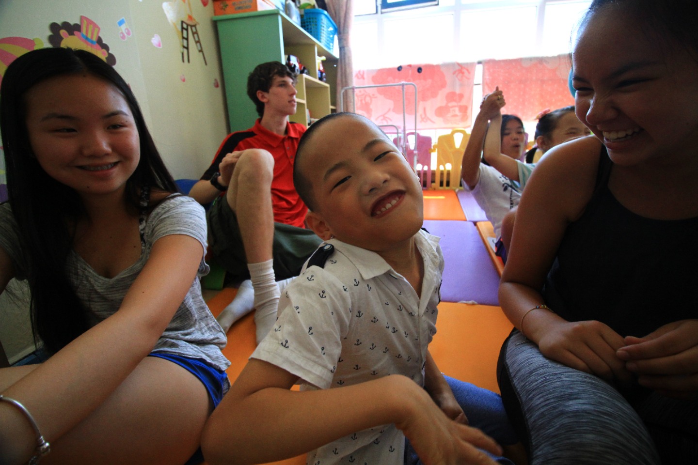 Today we got to sleep in a bit, which was an unexpected surprise. After breakfast at the hotel, we all piled into cabs with our luggage and headed to the orphanage. I think I can speak for everyone when I say that we are sad to have to leave these kids so soon. We all have enjoyed playing with and learning from these kiddos. But after our service, it was time to start to say a hard goodbye. After our goodbyes to our Baotou babies, we went for a snack run across the street, to stock up for the train ride ahead of us. After our snack run, we headed back to the orphanage to relax for a bit before our afternoon train ride to Datong. The children were all napping, so the downtime turned out to be a blessing in disguise for us as well. We all caught up on our journals and got to start making some string bracelets (shout out to Maggie for supplying the string). Right now, we are heading to Datong on another train ride – Seth is entertaining some of the children on the train while others of us are taking silly photos. Although I am sad to leave the kids and this cool town, I am excited to see what adventures lie ahead in Datong.