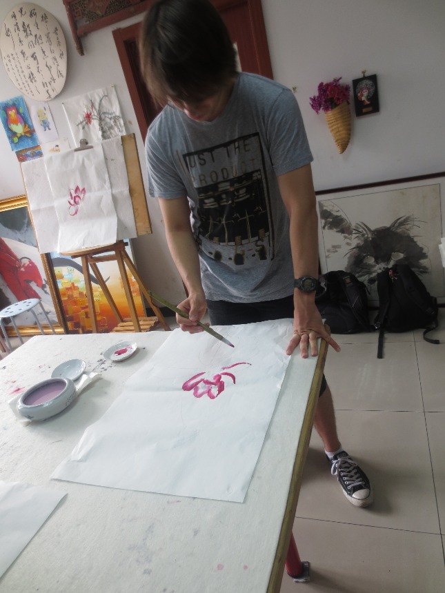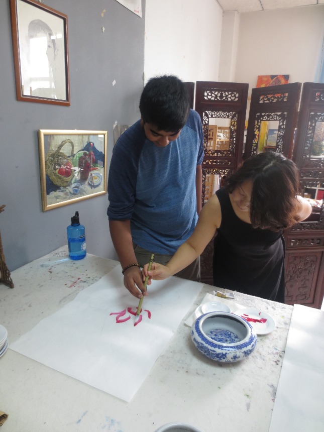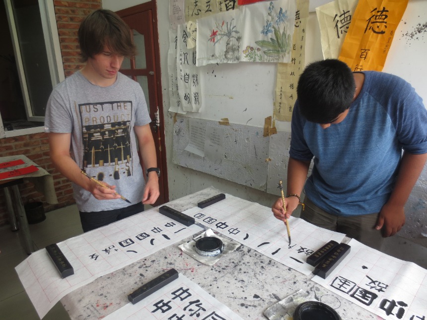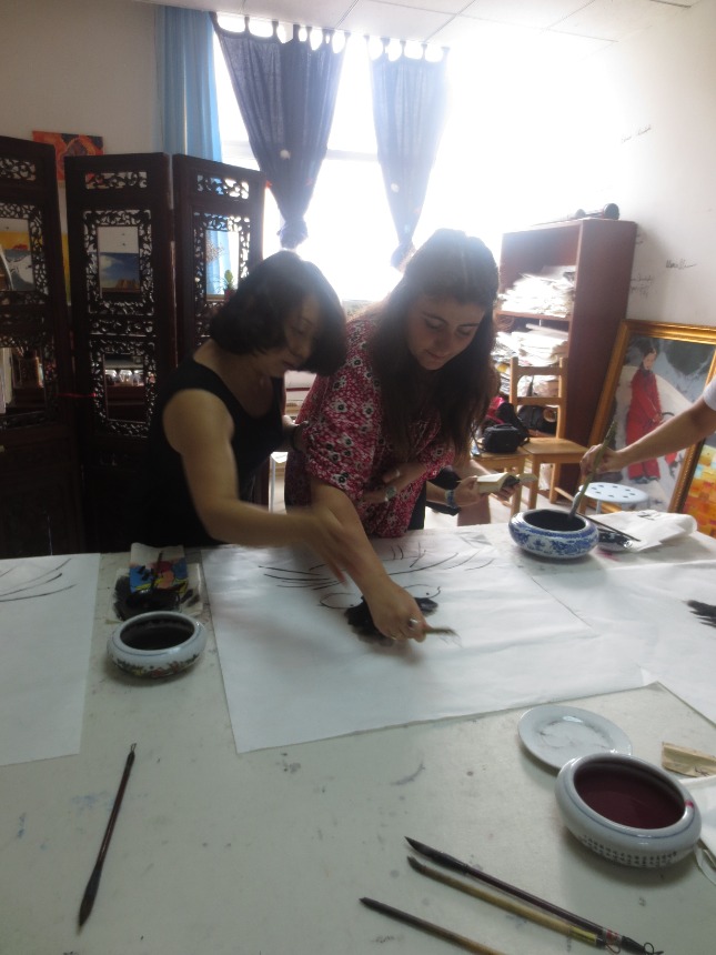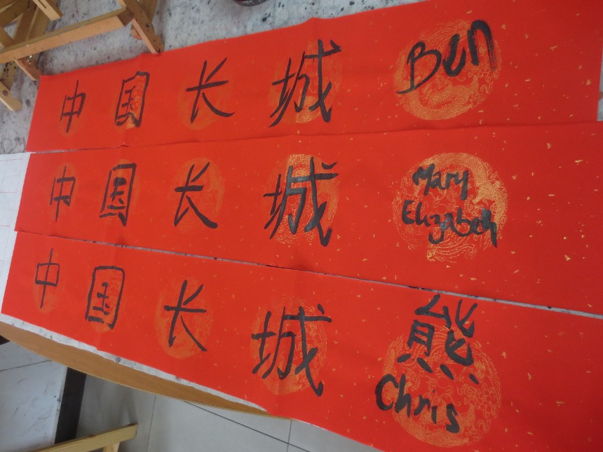 Hello everyone! Today was our third official day in Beijing, China. Our morning routine was typical: wake at 0700, shower and get ready for the day ahead, breakfast at 0800, and arriving at the orphanage at 0845. We spent the next 3 hours caring for and entertaining the children as per usual. They can be a handful sometimes, but the happiness of being important to the kids is a wonderful feeling and definitely worth the effort. We returned just before noon, where we were greeted by a great meal of homemade spaghetti with vegetarian sauce, garlic bread, and lotus fruit along with some leftovers. After watching some short documentaries about Chinese traditions (building styles, New Year’s and weddings), we attended an art and calligraphy class run by Yao Art Studio. We tried our hand at traditional calligraphy and artistic brushwork, topped off by a tea ceremony featuring Chinese white tea and complimentary sweets, such as mini pineapple cakes, traditional mooncakes (flaky pastry filled with red bean paste and salted egg yolk), and various other small snacks. After our return to the apartment, we watched Kung Fu Panda 2, a comedic animated movie by Pixar Studios. The rest of the evening was spent eating dinner (white rice, cooked bamboo shoots, rice noodles with cucumber and sweet & sour meatballs) and relaxing in the living room.