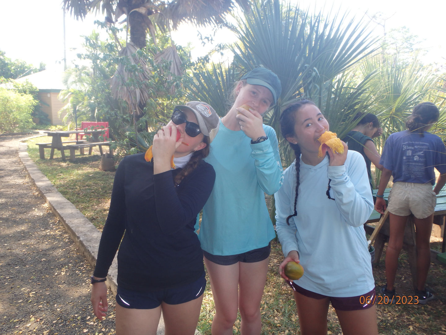 Hi everyone!! Today we worked on our second service project. We went to a botanical garden to rake leaves, prune plants, and paint tables. We started the day with an enthusiastic song about chihuahuas, which hyped us all up to go on a beautiful walk to the garden, which Zoe and Ella took charge of, with occasional directions from Krisz. Once we got to the garden, not only did we complete our engaging tasks, but Logan, Gary, and Gavin managed to collect a grand total of 19 fresh mangoes. After a long day’s work, we had the pleasure of eating lunch on LAND. Pretty sick. Everyone rushed to get smoothies, and Chava had the biggest smile I’d ever seen when she had her first coffee in a week. When we got back to the boat, we had a fantastic dinner, and Krisz serenaded us with his world-famous vocals. We’re currently taking turns showering with fresh water and Hibiclense and preparing to watch the documentary “BlackFish.” I’m being pressured to shower now. Love and miss you all!!