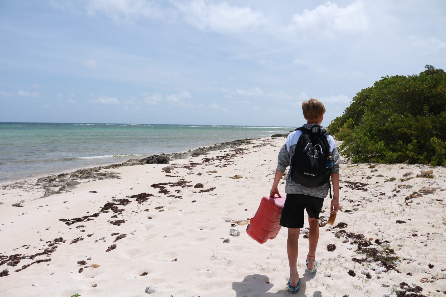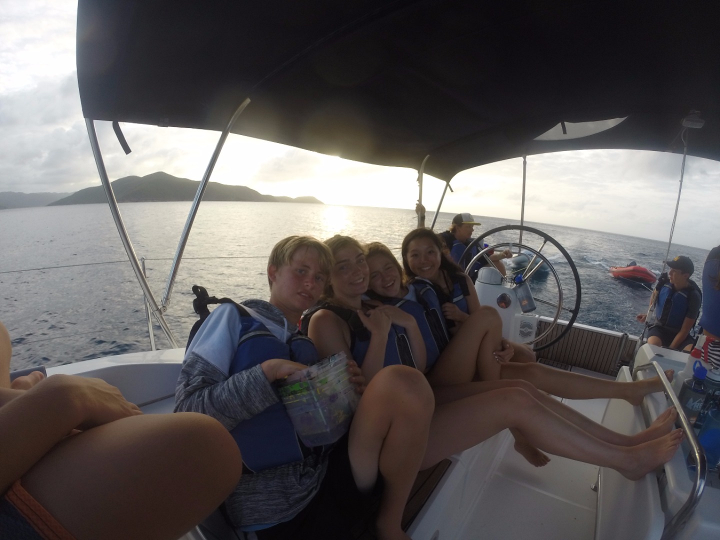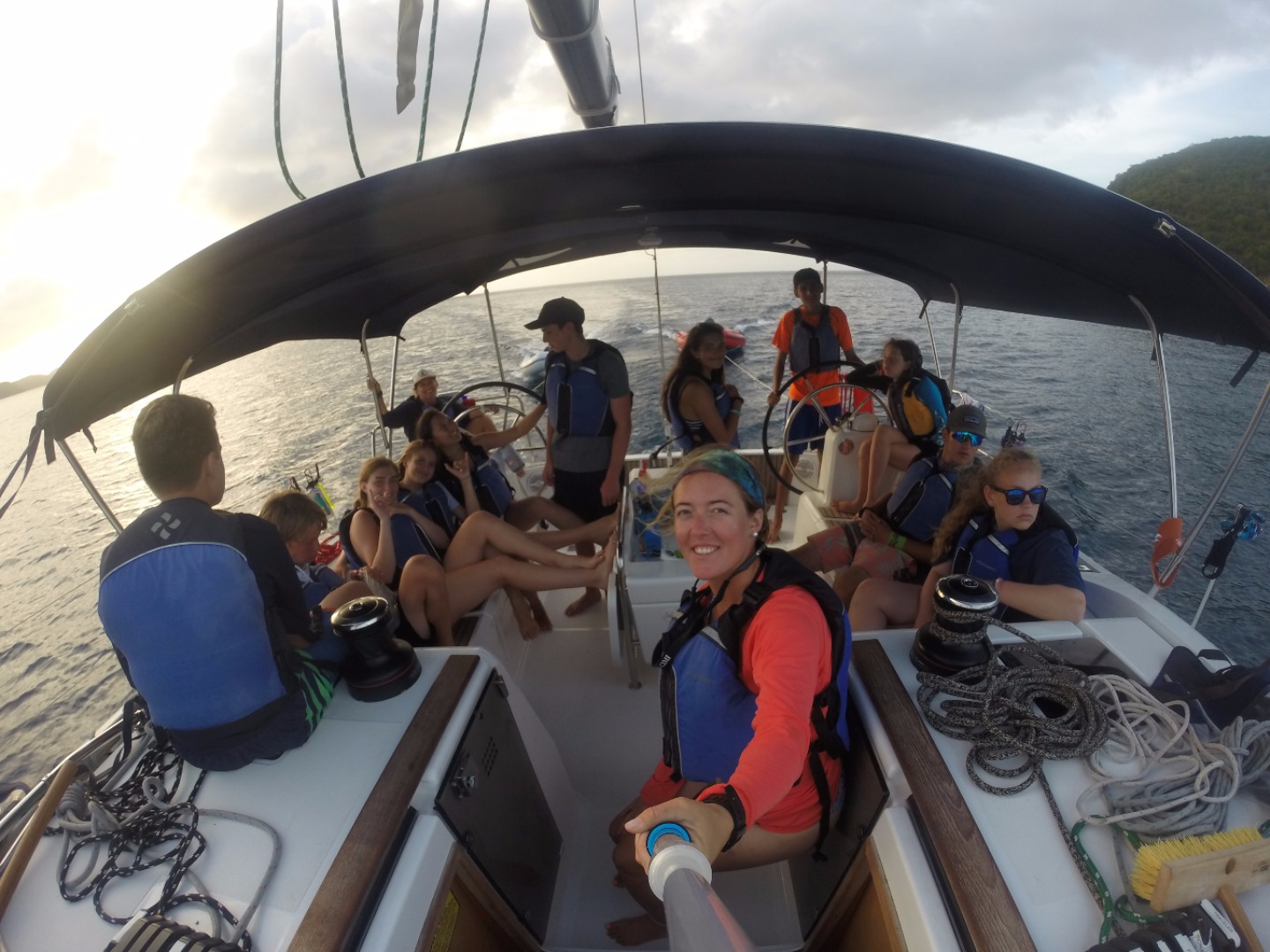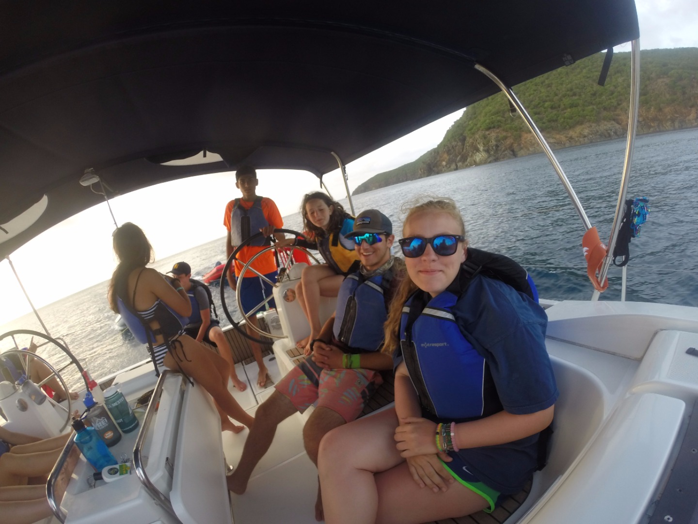 This morning, we woke up later than usual and prepared for a busy day with trash collecting and sailing. After a quick breakfast, we set off on a four-hour hike in Anegada where three teams competed to win a trash-collecting scavenger hunt; some of the items included all seven types of plastic, shoes, a child’s toy, and a unique item. Although today was hot and the hike was long, we got to experience firsthand the beautiful blue-green water and beaches of Anegada that teemed with sea life and conch shells. My group encountered the unique sight of nurse sharks mating on the beaches, which was amazing because we had previously only seen baby sharks. It was awesome to see everyone work hard and be serious but still have fun and be competitive about keeping the beaches clean for the people and ecosystems in Anegada. Then, after lunch, our boat sailed for three hours from Anegada to Great Camanoe on the most chaotic yet fun ride yet. Throughout the entire sail, we played twenty questions and sang Christmas carols at the top of our lungs, and we experienced all of the holidays today ranging from Thanksgiving dinner to birthday celebrations for everyone on our boat, and today brought everyone closer than ever. Today was another perfect day in BVI!