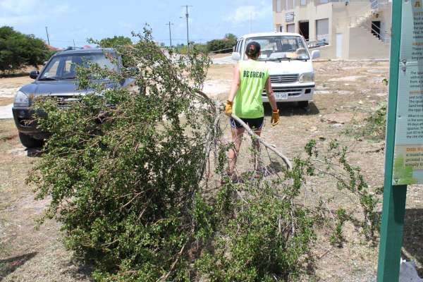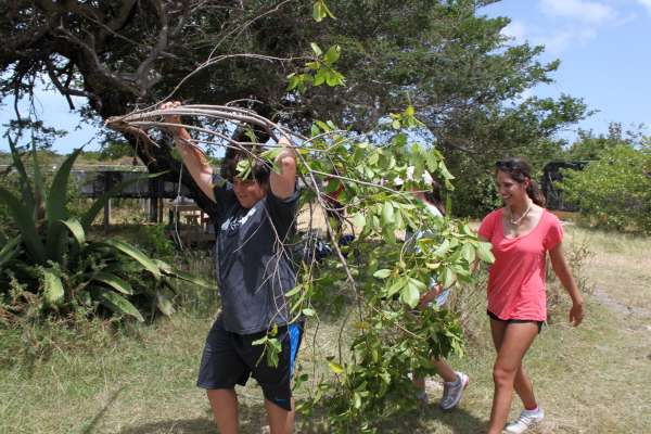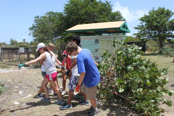 We then cut all the weeds and invasive trees that were covering the fence. We had to be really careful not to cut down the native tree of Anegada, Acacia Anegadences (common name: Poke Me Boy) because it is only found there. Kat, Laura, and I demolished a tree that was invading the fence. While cleaning, Victoria found a tarantula. Mikey, a super shy park ranger, answered a lot of our annoying questions; a request made by our staff. After cleaning up the center, I looked back and saw how much our cleaning job affected the Center; We all felt accomplished. After all that labor and hard work, we headed back to the boat for a 3-hour sail.
