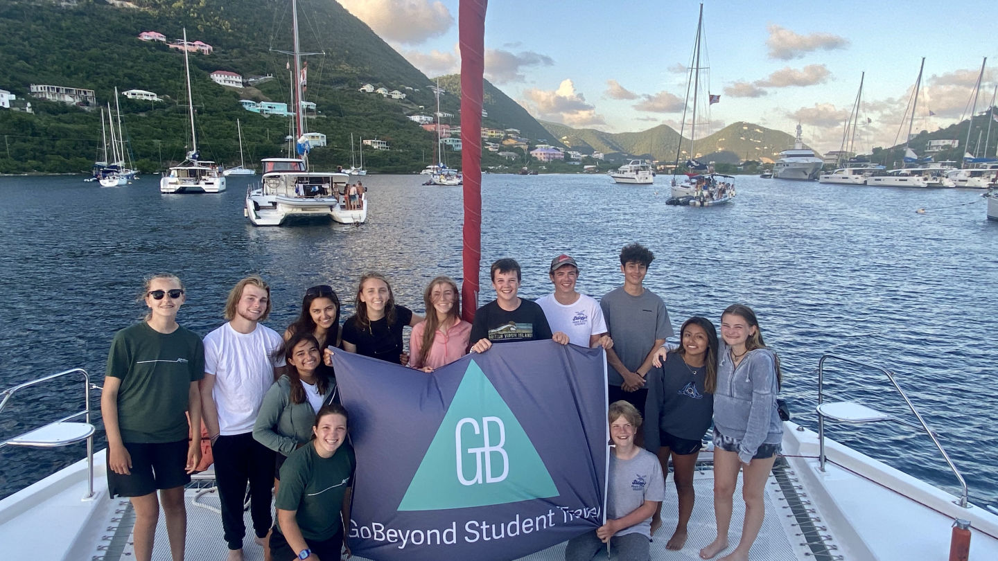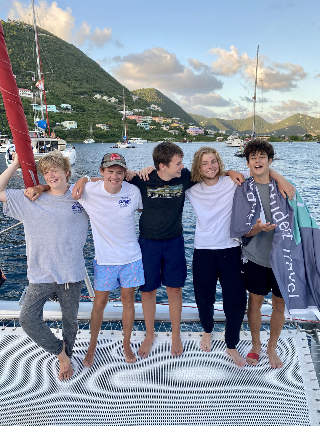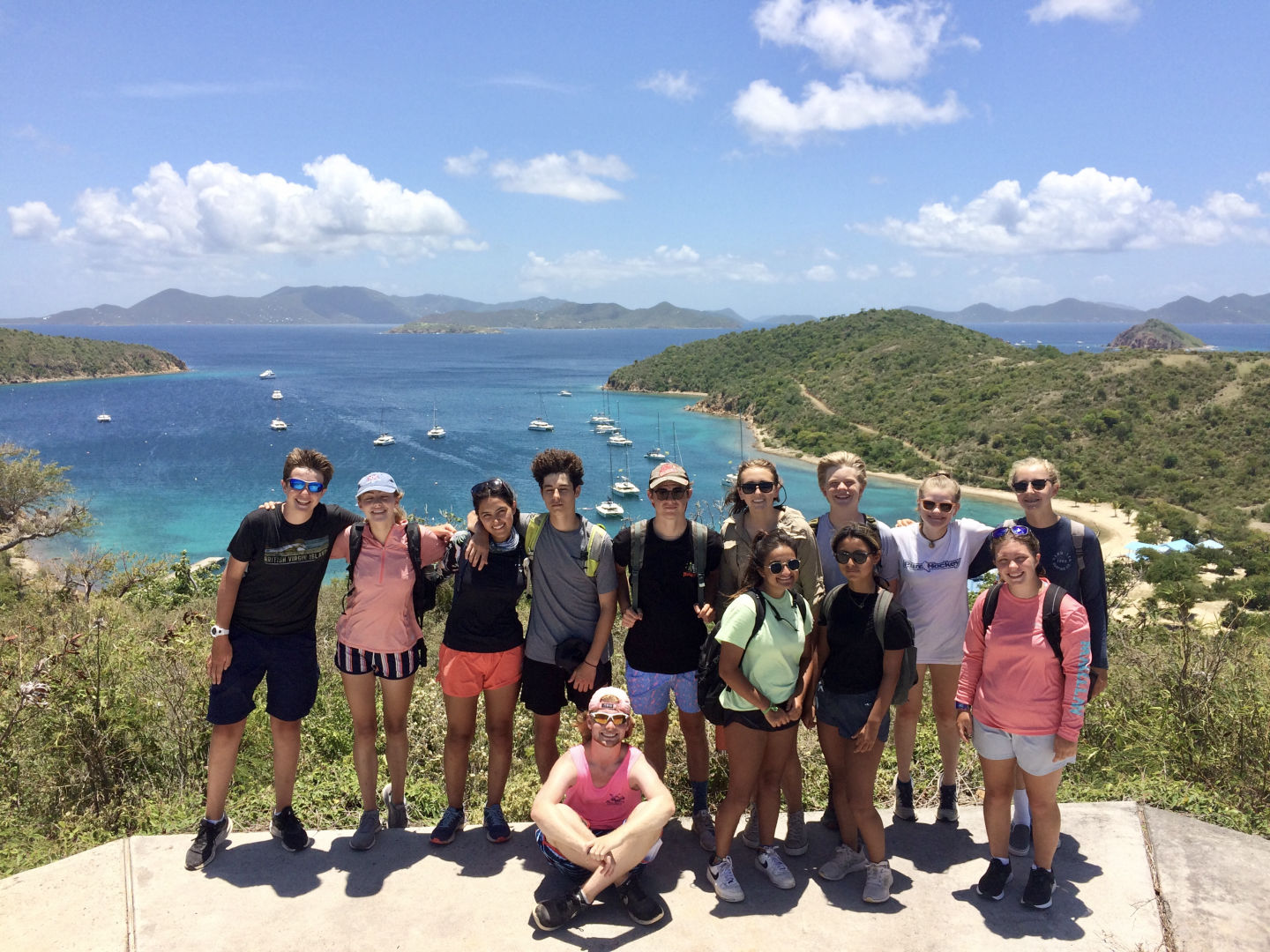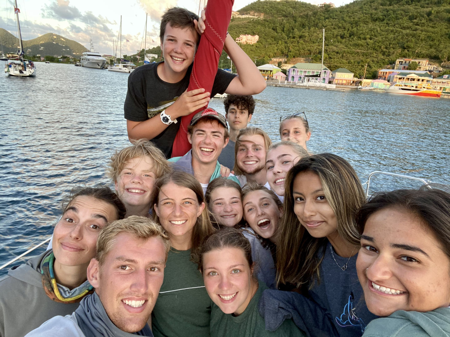 After taking the last moment to take pictures and enjoy the view, we descended towards our boat. We motored back home to West End and did a “boat appreciation” deep clean while underway. Soon we turned the corner into Soper’s Hole, where we began our journey three weeks ago. We took our final ocean showers, followed by lots of funny photos. Then, we divided our GoBeyond flag into 16 pieces, one for everyone on board, and passed them around to sign. We ended the evening with a BBQ picnic on the bow and a final squeeze, where our skipper of the day asked, “what was your favorite part of the trip?” It was a sweet way to reminisce, practice gratitude, and share laughs.