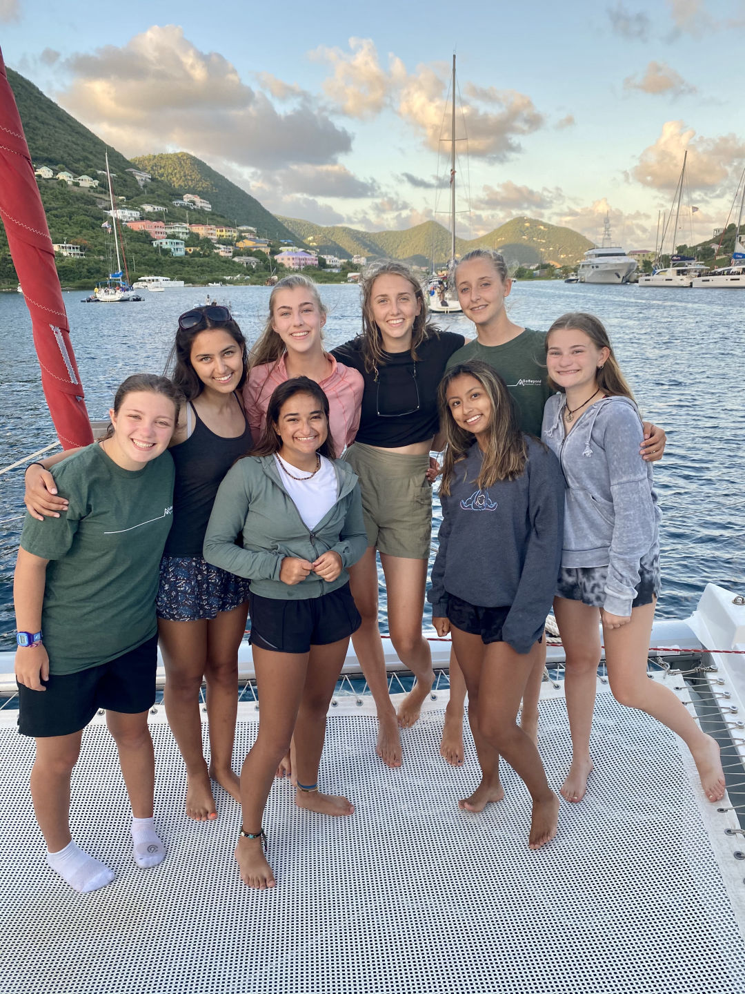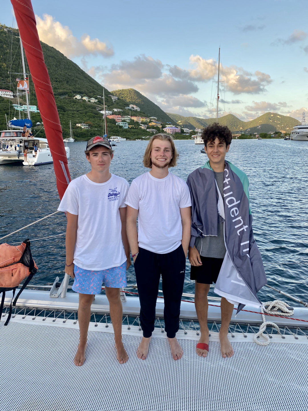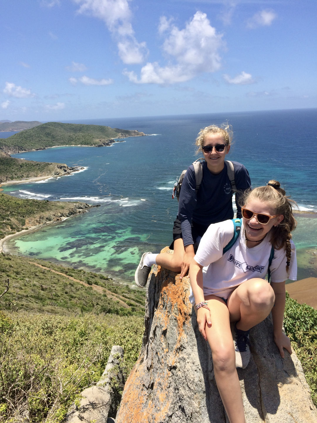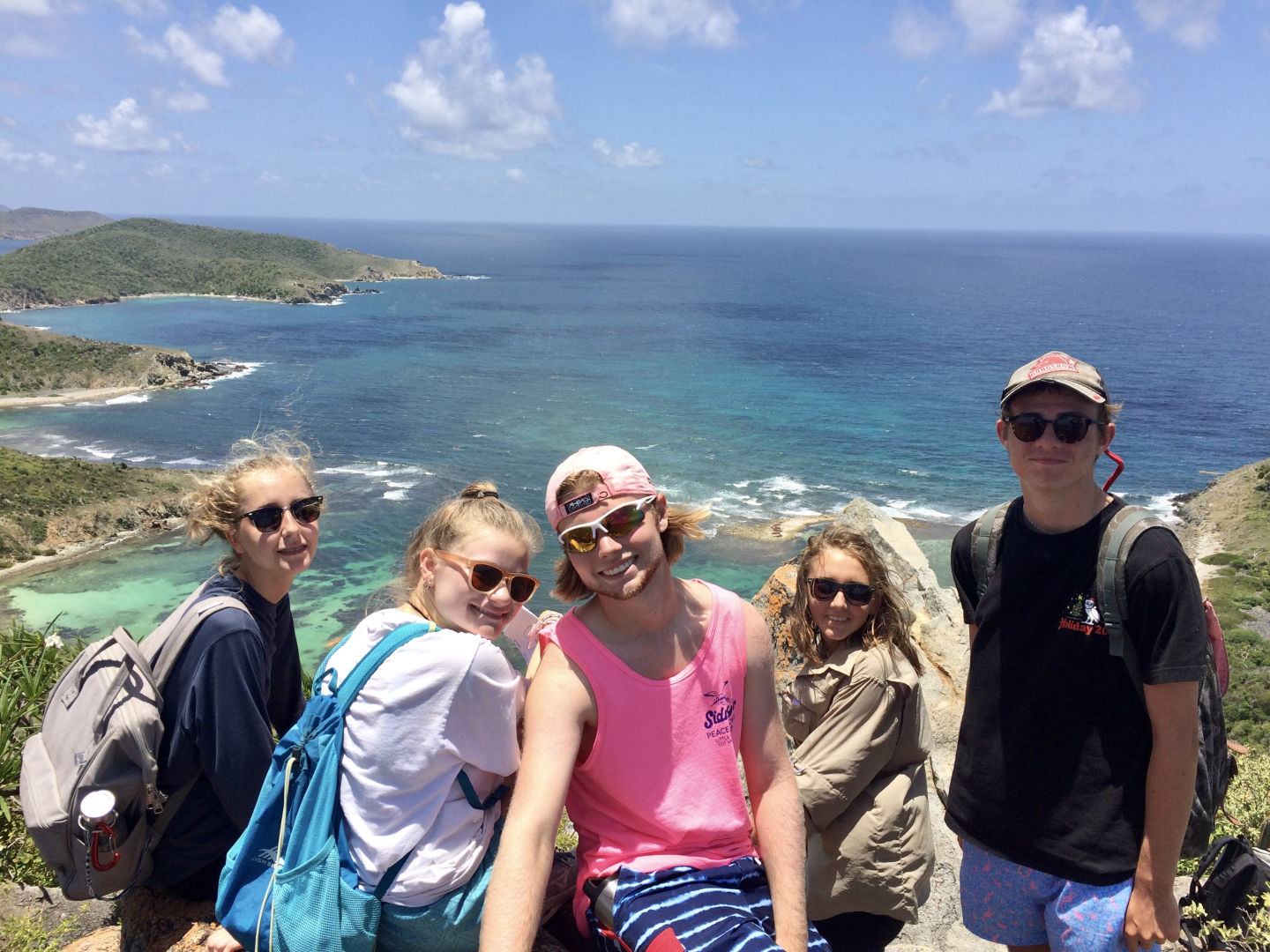 After taking the last moment to take pictures and enjoy the view, we descended towards our boat. We motored back home to West End and did a “boat appreciation” deep clean while underway. Soon we turned the corner into Soper’s Hole, where we began our journey three weeks ago. We took our final ocean showers, followed by lots of funny photos. Then, we divided our GoBeyond flag into 16 pieces, one for everyone on board, and passed them around to sign. We ended the evening with a BBQ picnic on the bow and a final squeeze, where our skipper of the day asked, “what was your favorite part of the trip?” It was a sweet way to reminisce, practice gratitude, and share laughs.