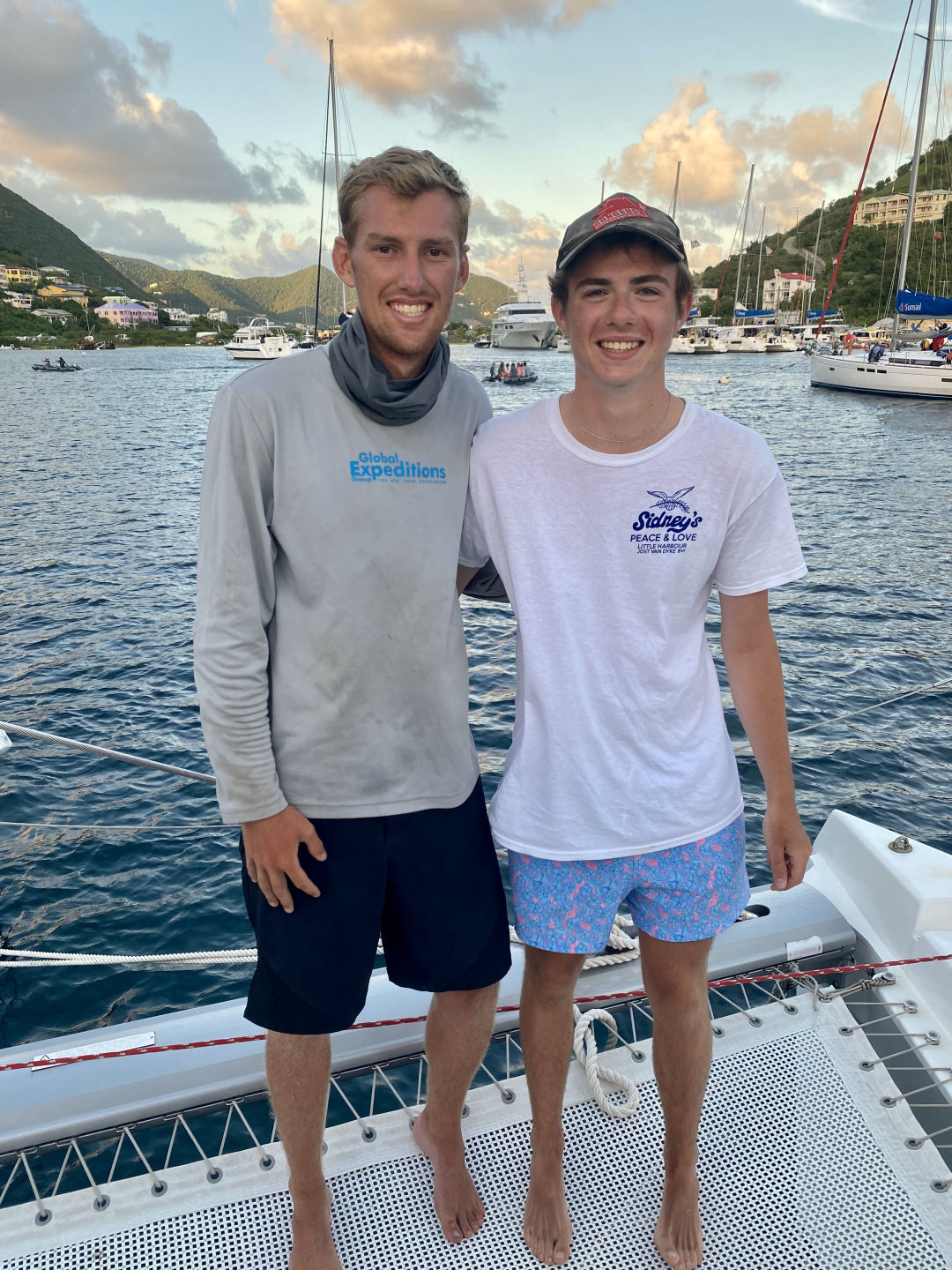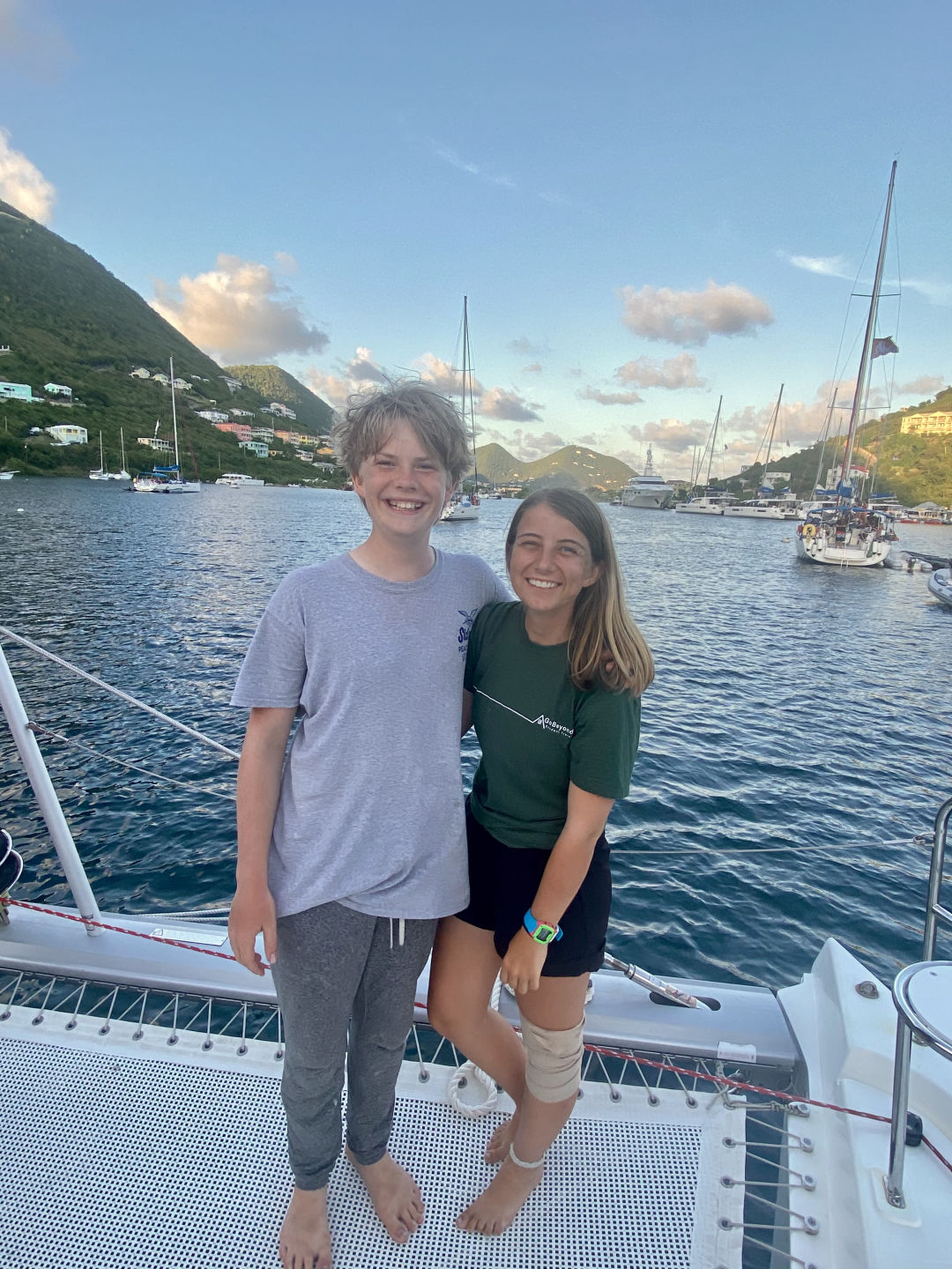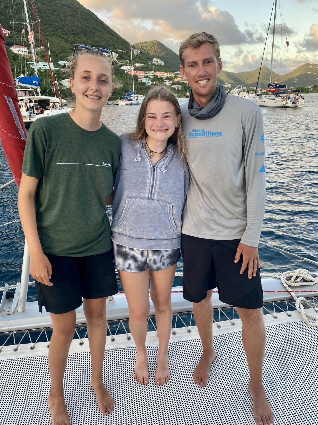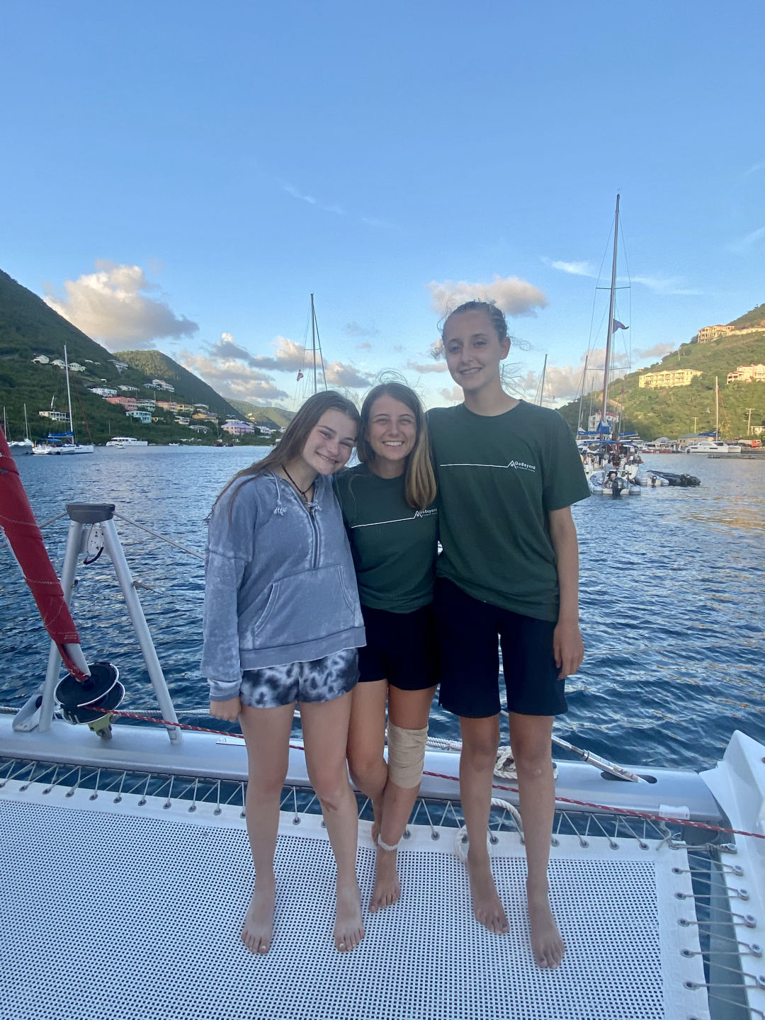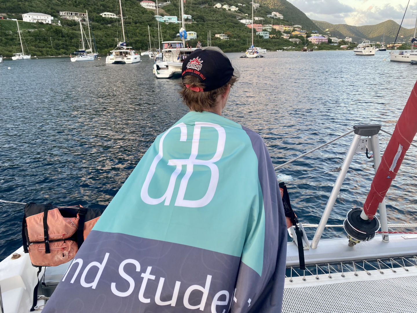 After taking the last moment to take pictures and enjoy the view, we descended towards our boat. We motored back home to West End and did a “boat appreciation” deep clean while underway. Soon we turned the corner into Soper’s Hole, where we began our journey three weeks ago. We took our final ocean showers, followed by lots of funny photos. Then, we divided our GoBeyond flag into 16 pieces, one for everyone on board, and passed them around to sign. We ended the evening with a BBQ picnic on the bow and a final squeeze, where our skipper of the day asked, “what was your favorite part of the trip?” It was a sweet way to reminisce, practice gratitude, and share laughs.