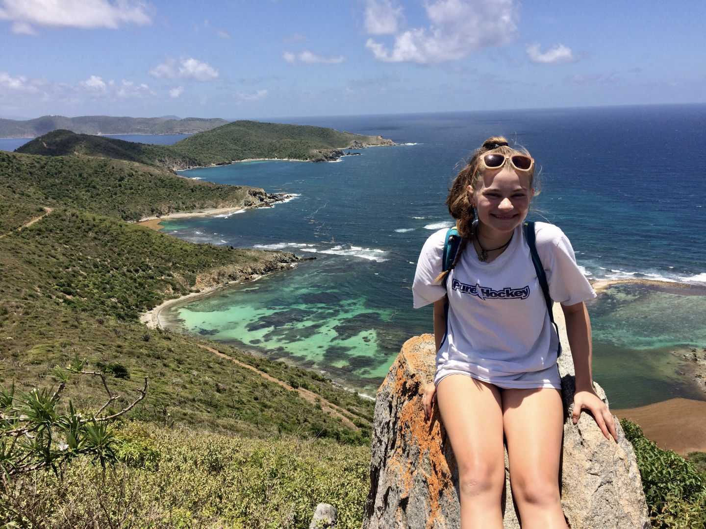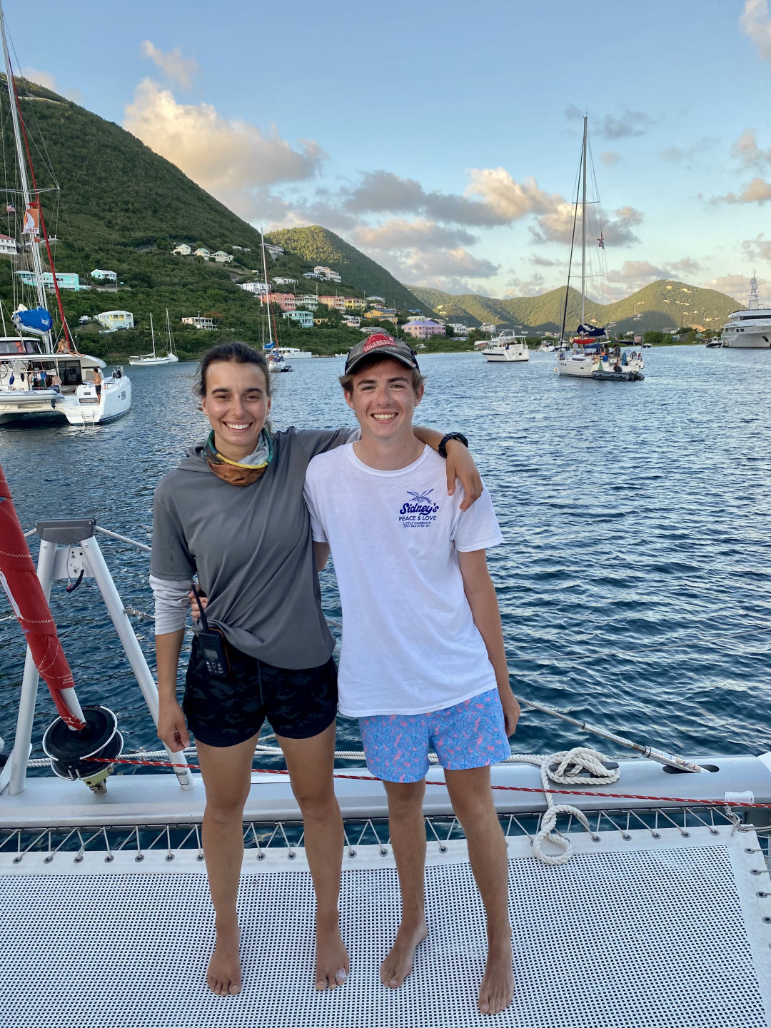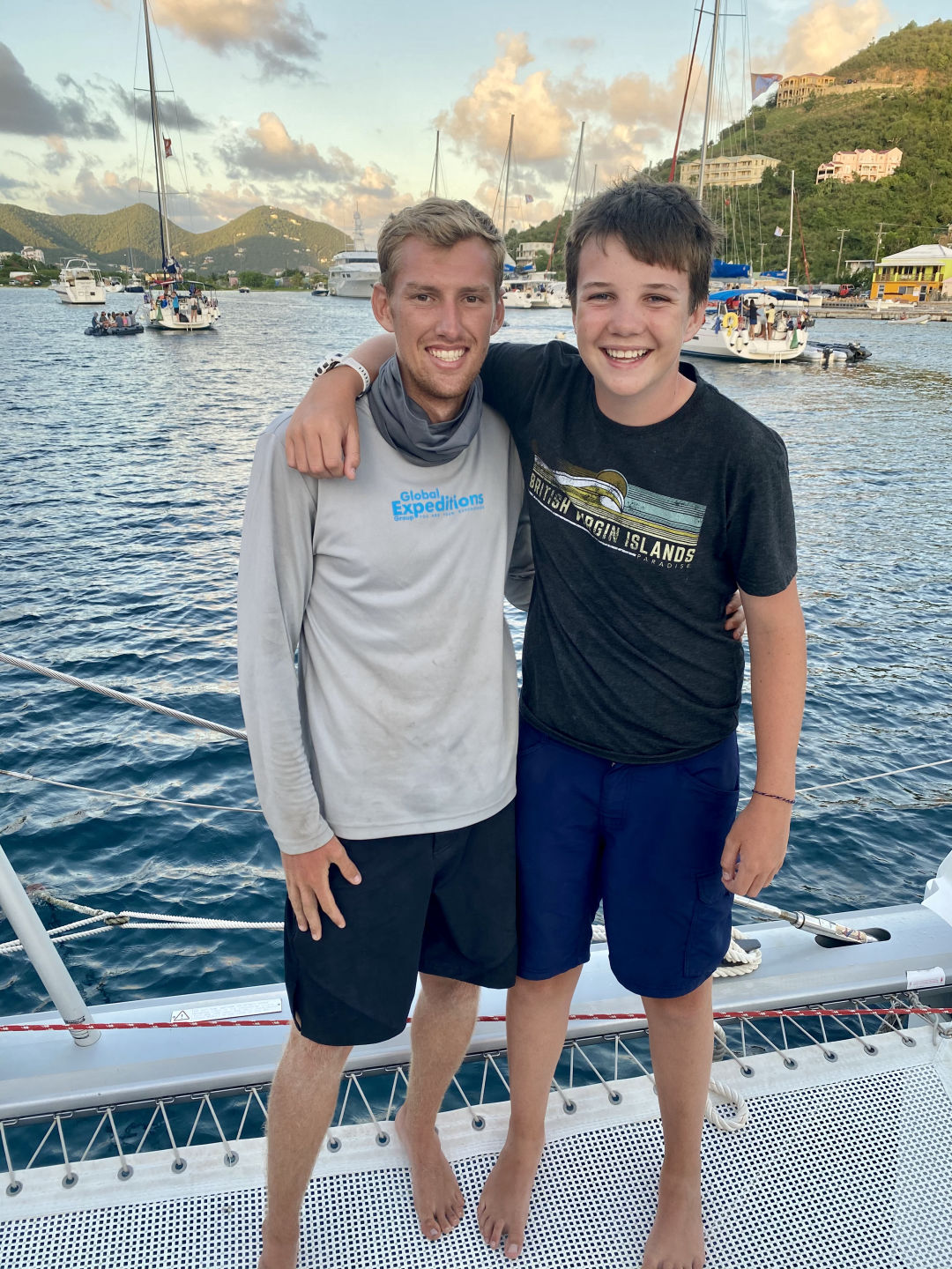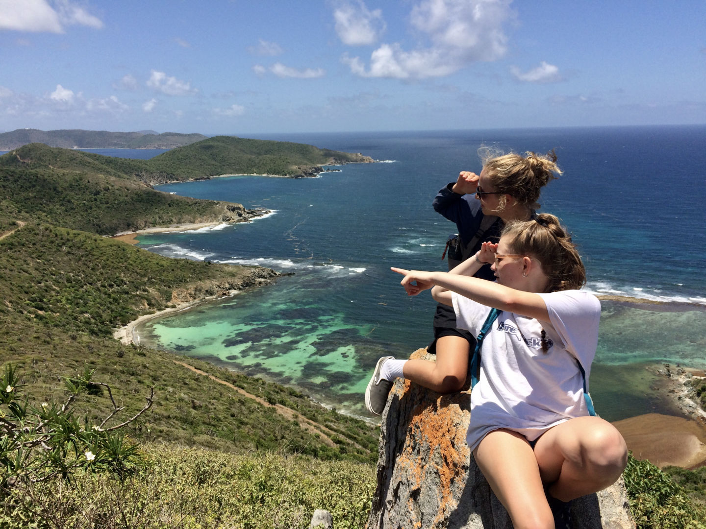 After taking the last moment to take pictures and enjoy the view, we descended towards our boat. We motored back home to West End and did a “boat appreciation” deep clean while underway. Soon we turned the corner into Soper’s Hole, where we began our journey three weeks ago. We took our final ocean showers, followed by lots of funny photos. Then, we divided our GoBeyond flag into 16 pieces, one for everyone on board, and passed them around to sign. We ended the evening with a BBQ picnic on the bow and a final squeeze, where our skipper of the day asked, “what was your favorite part of the trip?” It was a sweet way to reminisce, practice gratitude, and share laughs.