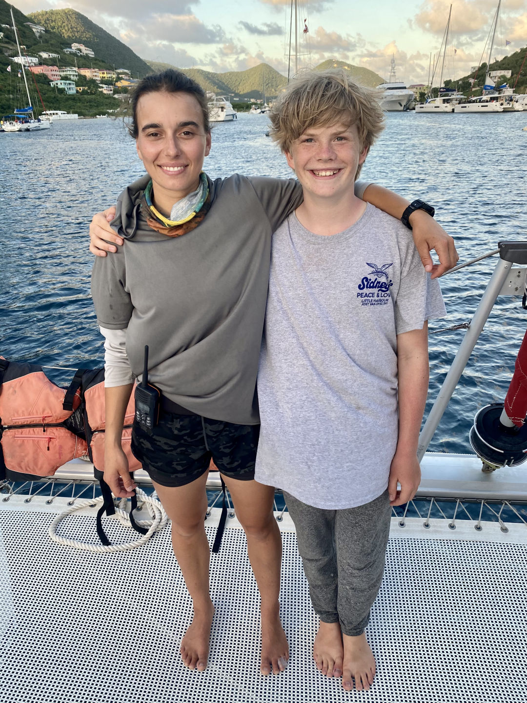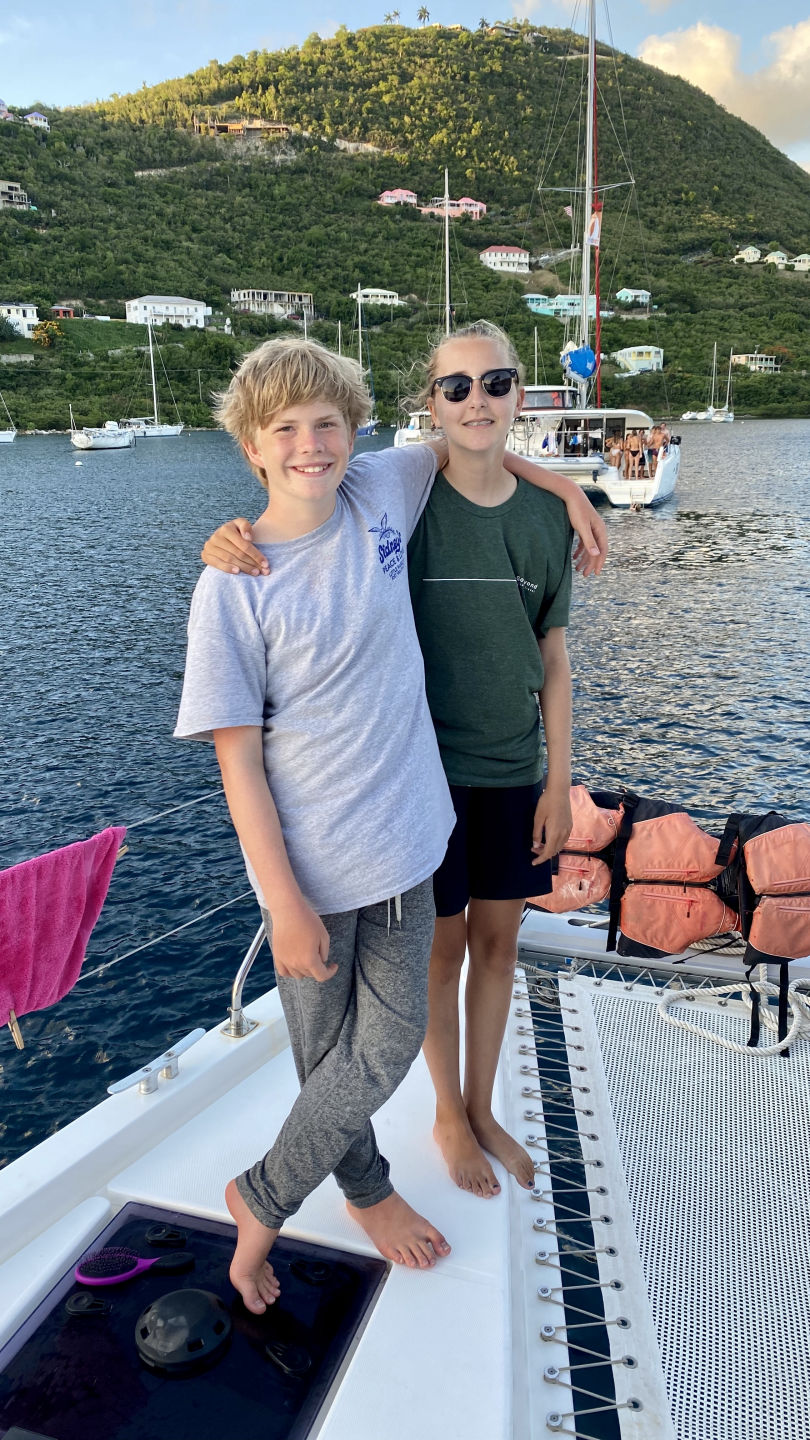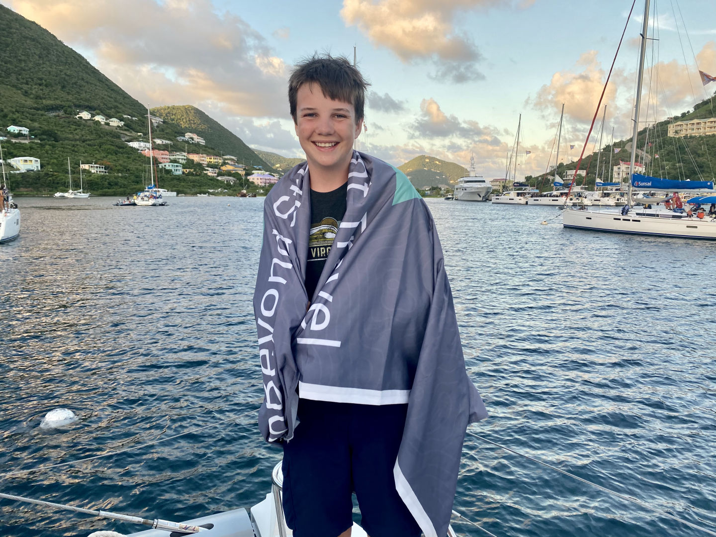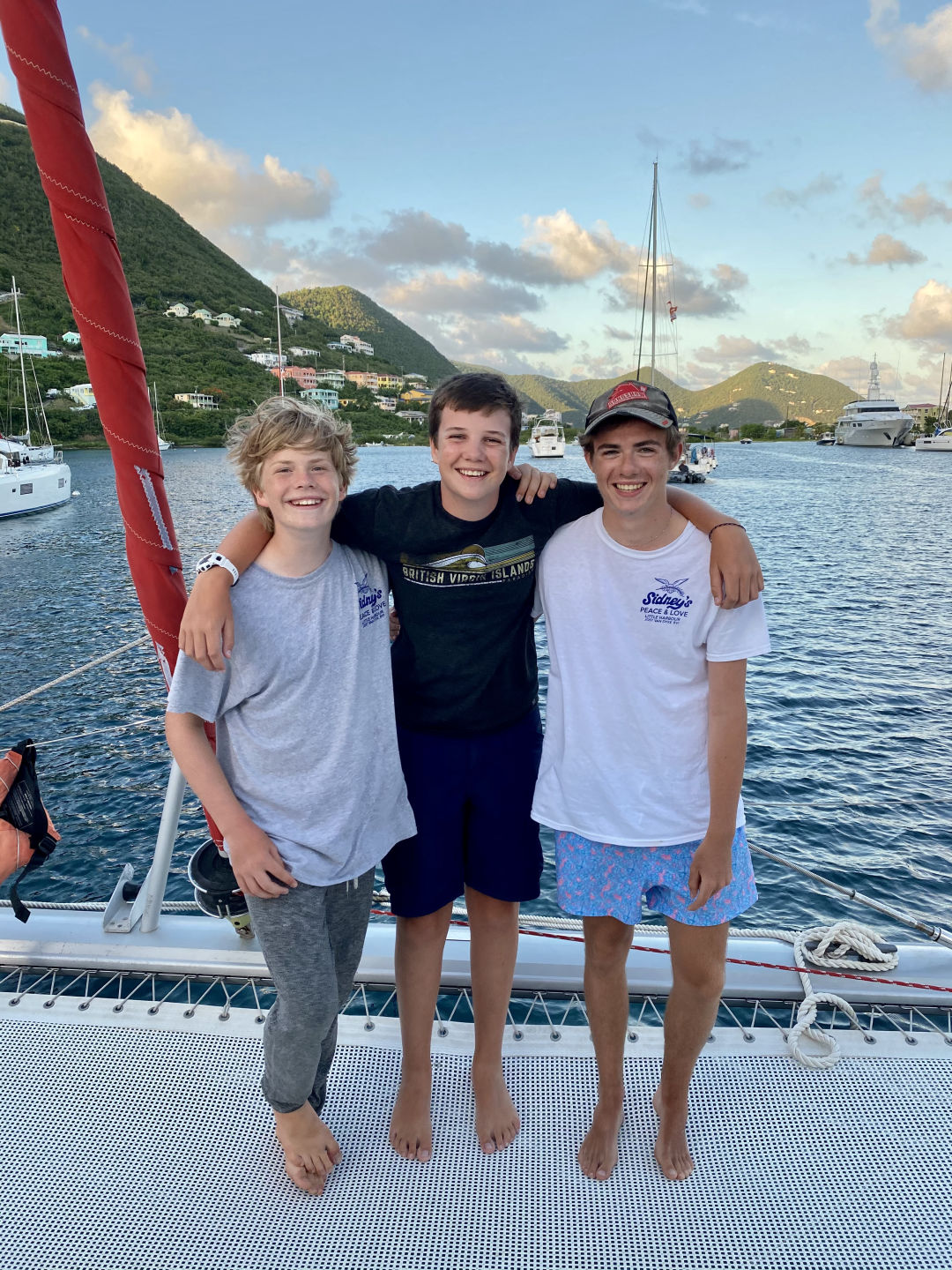After taking the last moment to take pictures and enjoy the view, we descended towards our boat. We motored back home to West End and did a “boat appreciation” deep clean while underway. Soon we turned the corner into Soper’s Hole, where we began our journey three weeks ago. We took our final ocean showers, followed by lots of funny photos. Then, we divided our GoBeyond flag into 16 pieces, one for everyone on board, and passed them around to sign. We ended the evening with a BBQ picnic on the bow and a final squeeze, where our skipper of the day asked, “what was your favorite part of the trip?” It was a sweet way to reminisce, practice gratitude, and share laughs.
