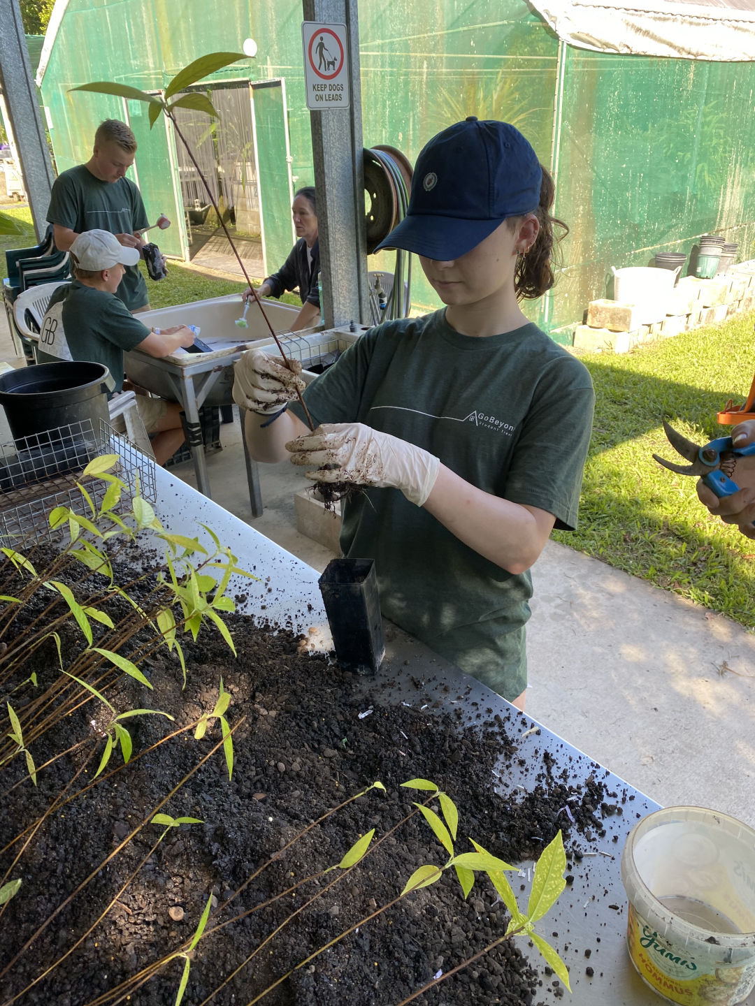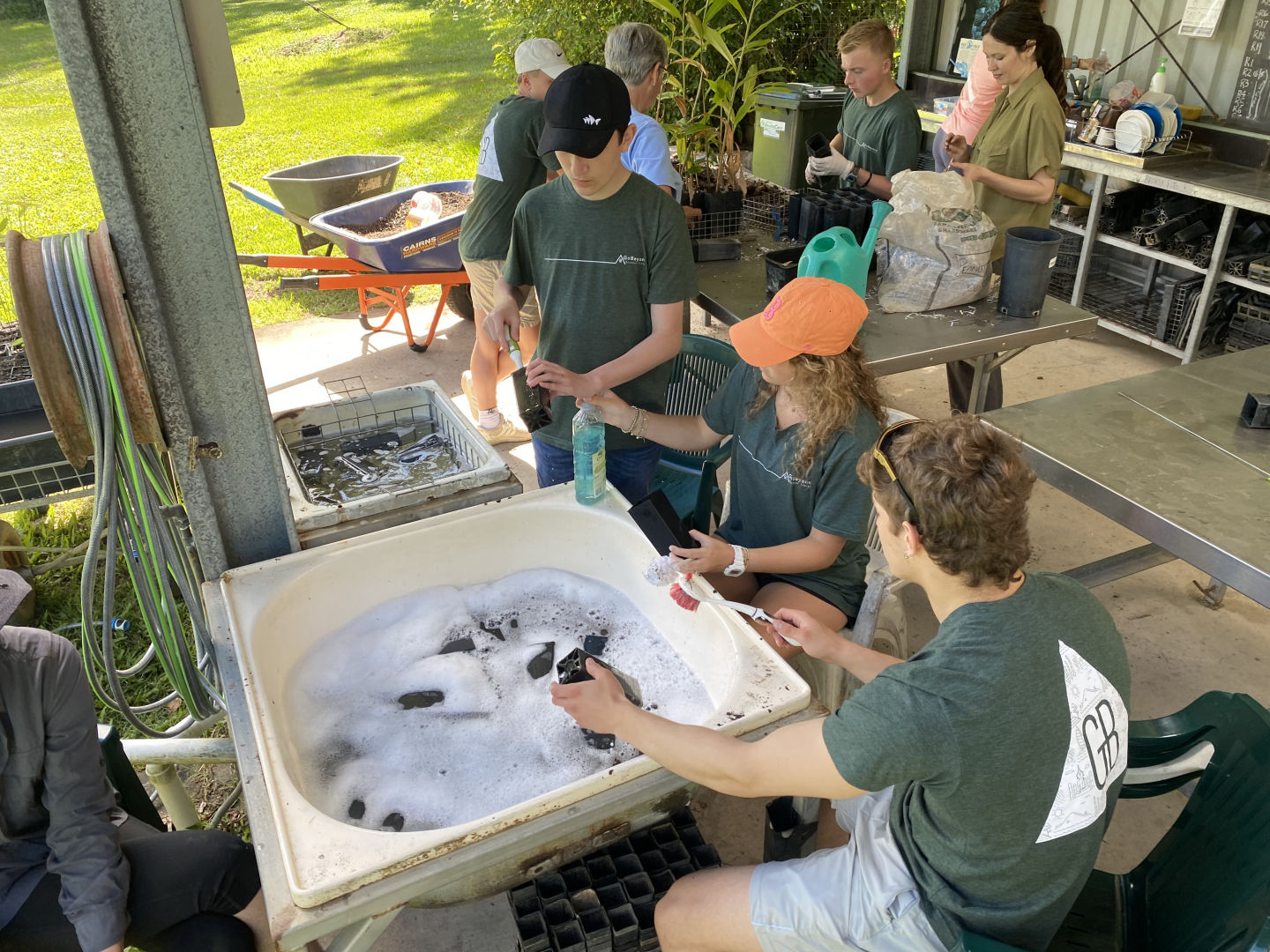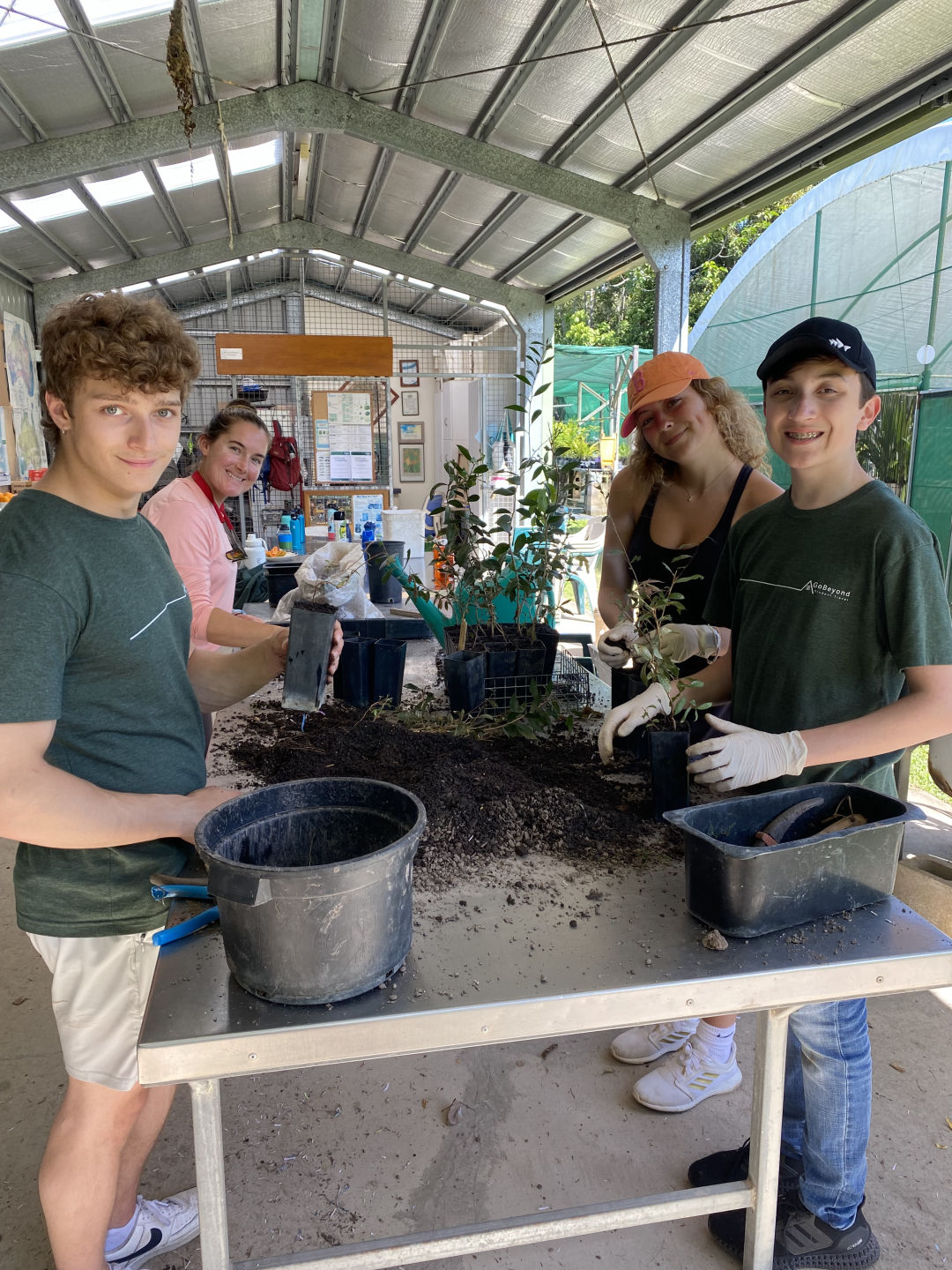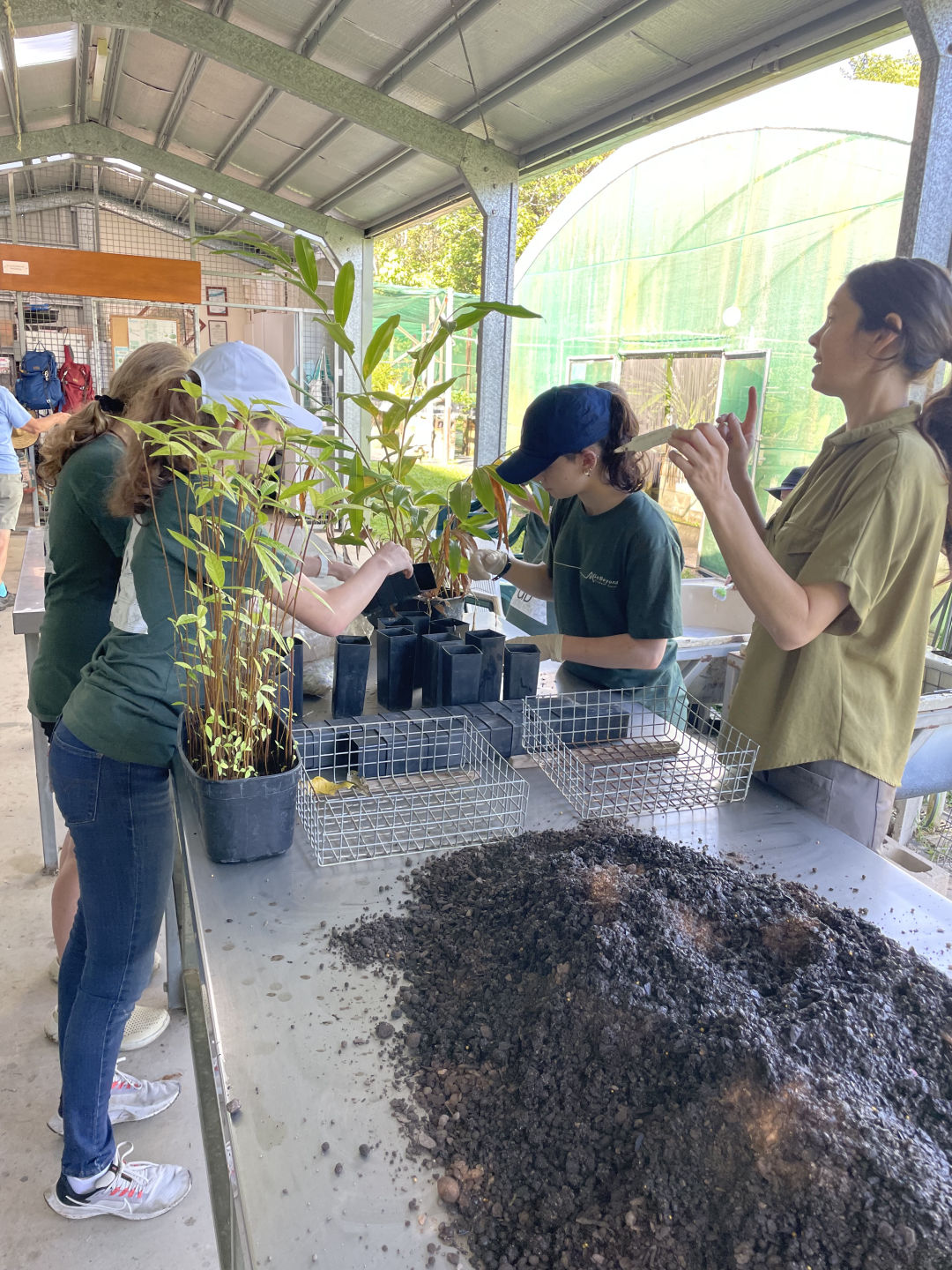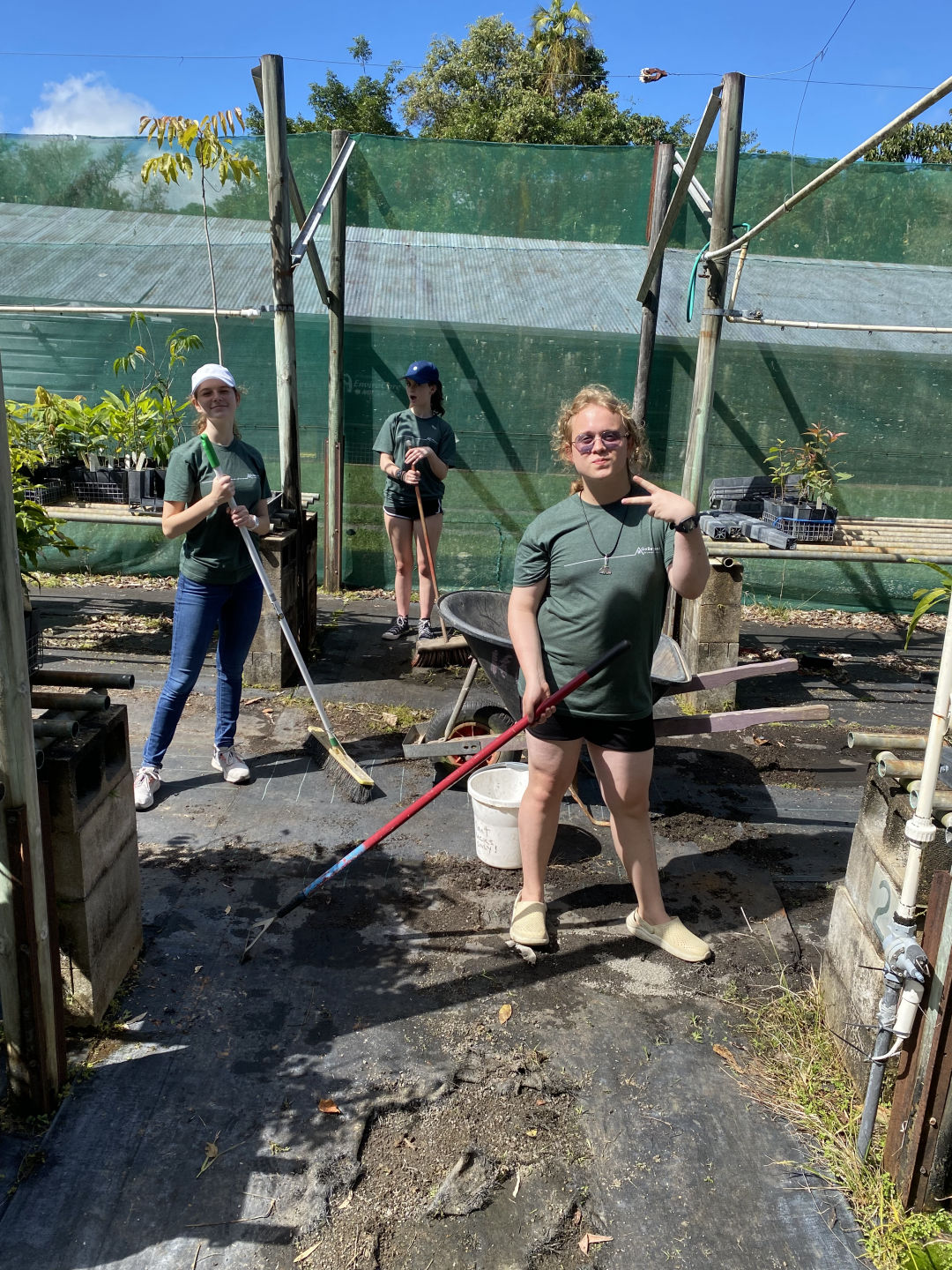 Today, we woke up in our terrific cabins located in the Kuranda rainforest. After traveling around in different hostels and boats, it was so luxurious to have a cozy bed and even a bathroom in our room. We ate a quick and healthy breakfast of croissants and Pop Tarts before we headed over to the van to be transported to Envirocare. After arriving at Envirocare, Cathy, the lead volunteer, explained the area and the different stations we would be working at. We even had a delicious break of morning tea, including tea and scones with jam and cream. These stations included potting plants such as young fig trees, writing tags for plants, shoveling soil, laying out and hammering new floor mats in the potting room, weeding, and washing dirty pots. Although it was hot and difficult work, it was enjoyable and community-building as well. Some of us tasted the local chili peppers that were growing around the area (and spent the rest of the day coughing and wheezing), and we even spotted some wildlife. One of these creatures was a blind snake, which we originally thought was a worm. We also spotted many grubs while shoveling soil, although these creatures were particularly controversial amongst our group. After a long day of work, we all piled back into the van and headed back to the cabins. Taking a dip in the pool after a sweaty day of community service seemed to be the best idea, but words cannot describe the hypothermia we all endured in the process (saying a hot shower was a miracle after this experience would be an understatement). After we all dried off, we had a lovely dinner of tacos, chips, and guacamole courtesy of Amanda and Steph. Thanks to all the volunteers at Envirocare for such a fun, informative day, and we are all excited about tree planting and frog monitoring tomorrow!