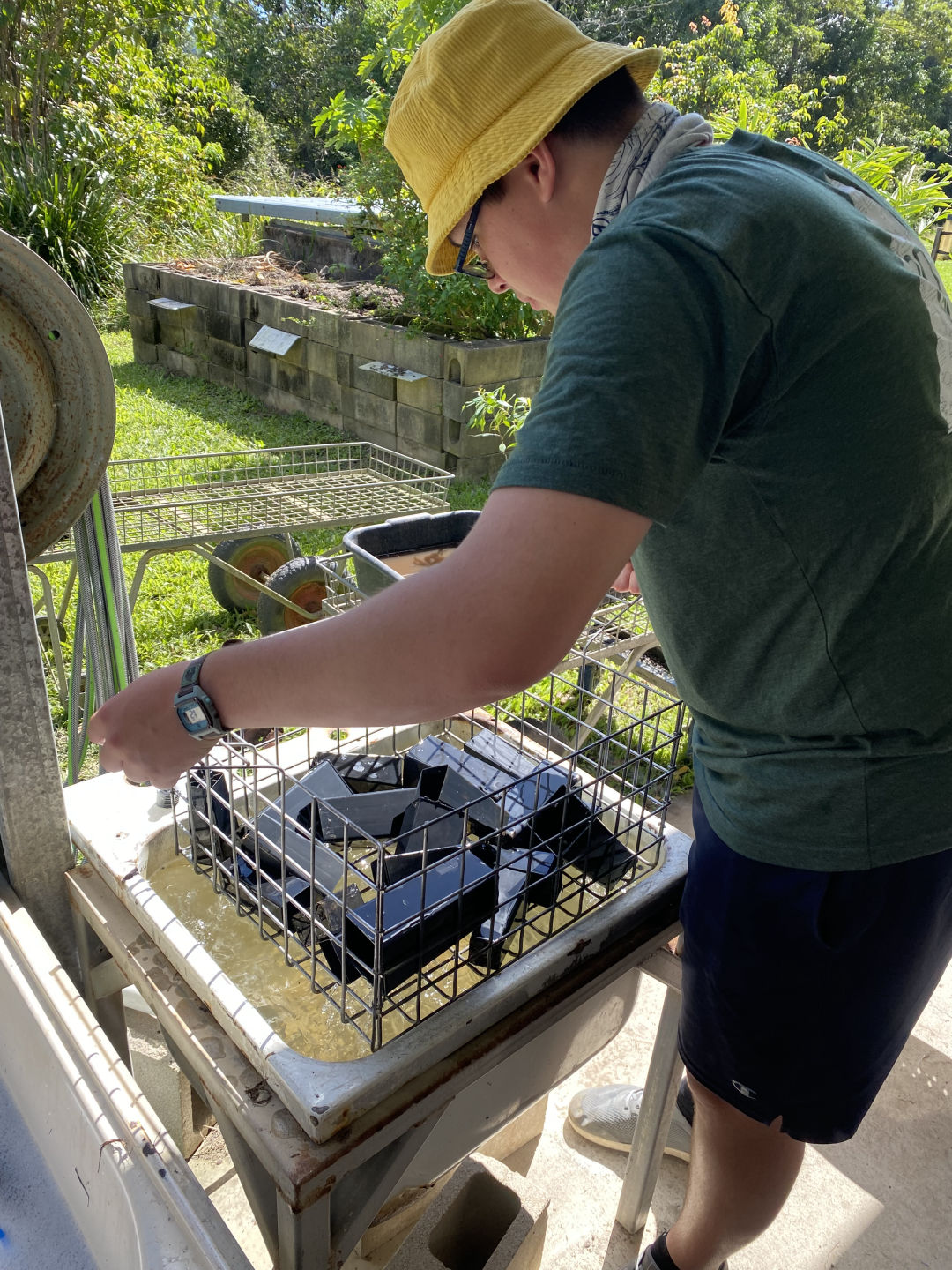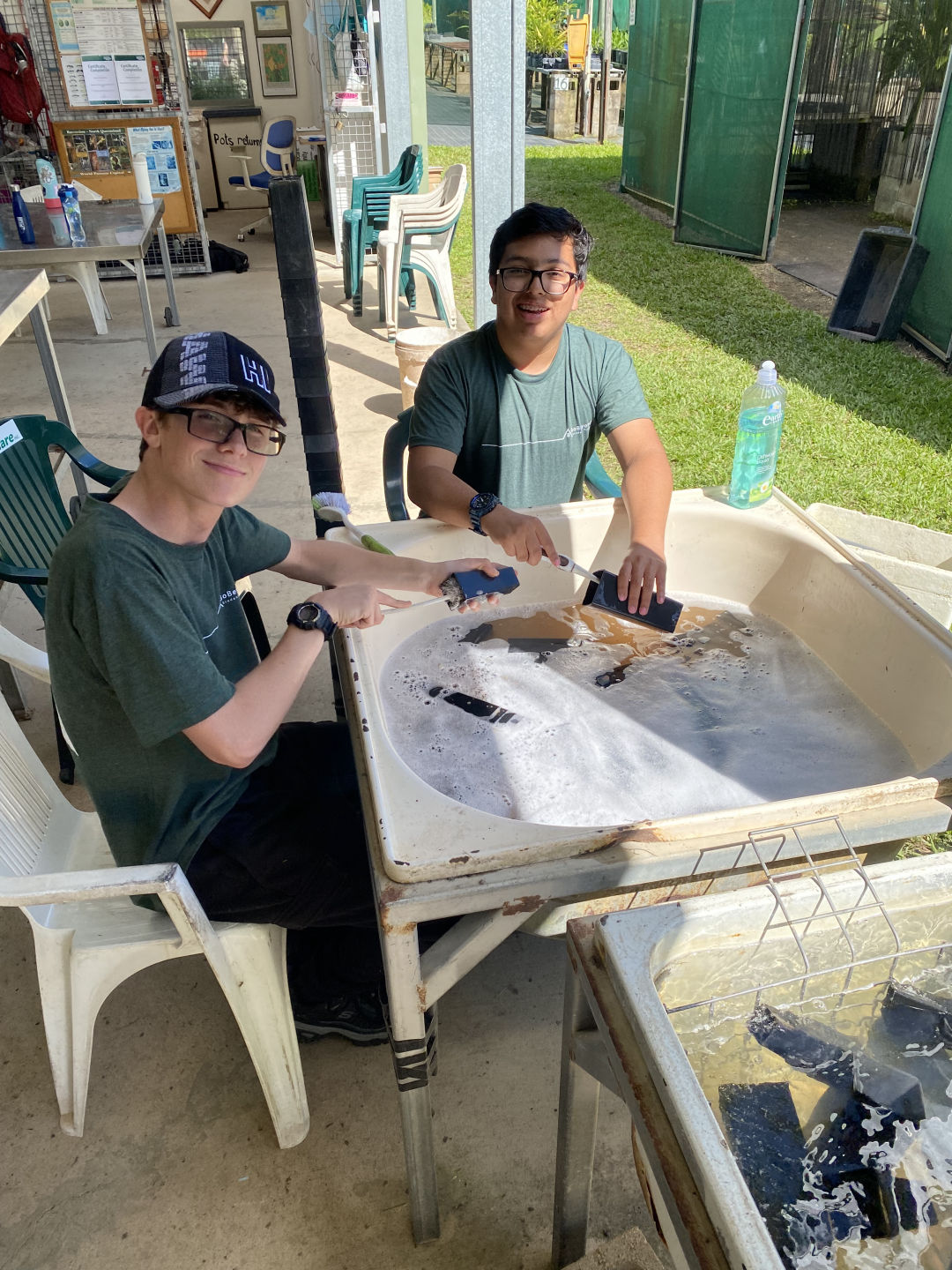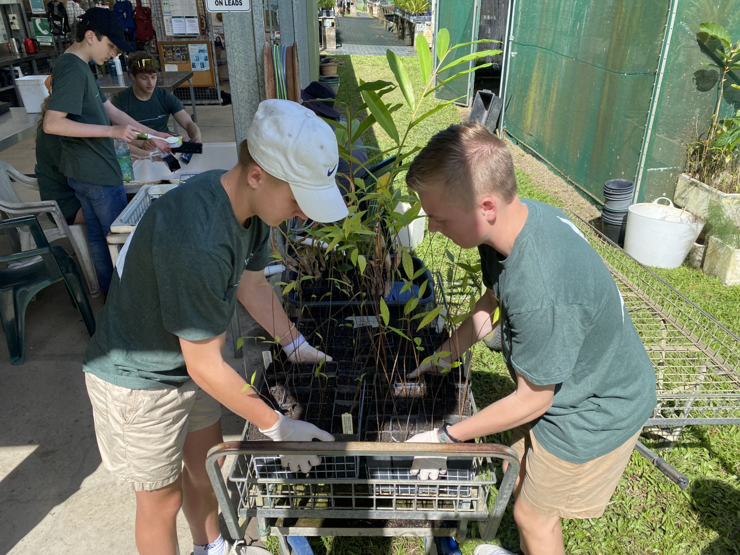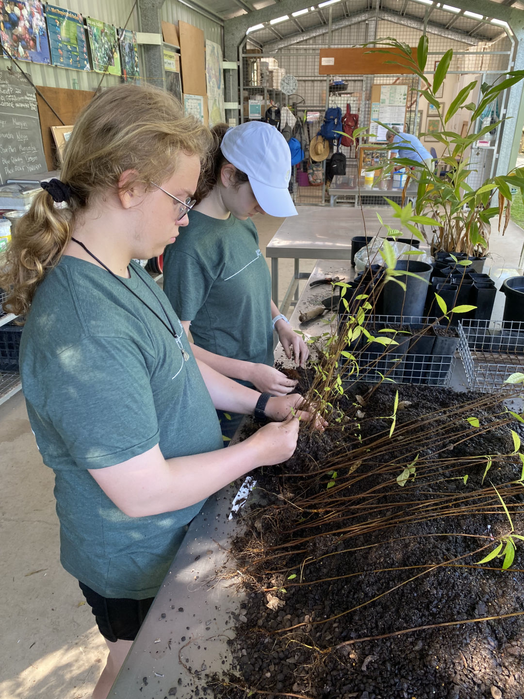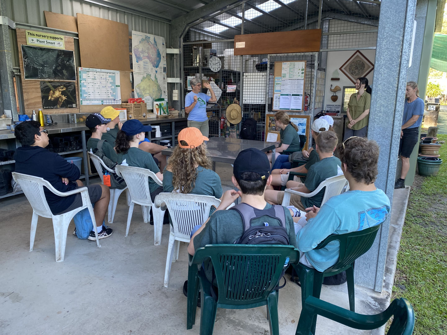Today, we woke up in our terrific cabins located in the Kuranda rainforest. After traveling around in different hostels and boats, it was so luxurious to have a cozy bed and even a bathroom in our room. We ate a quick and healthy breakfast of croissants and Pop Tarts before we headed over to the van to be transported to Envirocare. After arriving at Envirocare, Cathy, the lead volunteer, explained the area and the different stations we would be working at. We even had a delicious break of morning tea, including tea and scones with jam and cream. These stations included potting plants such as young fig trees, writing tags for plants, shoveling soil, laying out and hammering new floor mats in the potting room, weeding, and washing dirty pots. Although it was hot and difficult work, it was enjoyable and community-building as well. Some of us tasted the local chili peppers that were growing around the area (and spent the rest of the day coughing and wheezing), and we even spotted some wildlife. One of these creatures was a blind snake, which we originally thought was a worm. We also spotted many grubs while shoveling soil, although these creatures were particularly controversial amongst our group. After a long day of work, we all piled back into the van and headed back to the cabins. Taking a dip in the pool after a sweaty day of community service seemed to be the best idea, but words cannot describe the hypothermia we all endured in the process (saying a hot shower was a miracle after this experience would be an understatement). After we all dried off, we had a lovely dinner of tacos, chips, and guacamole courtesy of Amanda and Steph. Thanks to all the volunteers at Envirocare for such a fun, informative day, and we are all excited about tree planting and frog monitoring tomorrow!