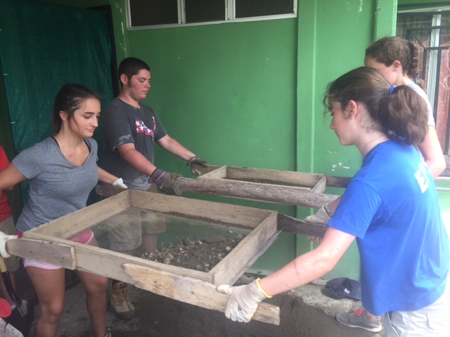 Starting the day off was an early morning rise that gave us the time to pack our bags and get ready for another difficult day out in the sandy Costa Rican fields. We got to breakfast in time for us to devour some beans and rice before we hopped on the bus ready for an elaborate working experience. The bus took a mere half hour to drive us to our destination where we arrive and scuttle to yesterdays position in an orderly fashion. I was in charge of the sifting side of the operation, which included shoveling and transporting the dirt to be sifted at the stations. A very long day of work ended with the outer walls of the classroom nearing completion, leaving only the front drywall to be put in to seal the structure in its entirety. Blisters and cuts corroded my hands as we rode the bus home, tired from all of the hard work but feeling accomplished that we did most of the heavy lifting in a minuscule two-day span. But most importantly, we felt invigorated about all the work we finished, and we couldn’t wait to finish the classroom for Fatima and the country of Costa Rica.
