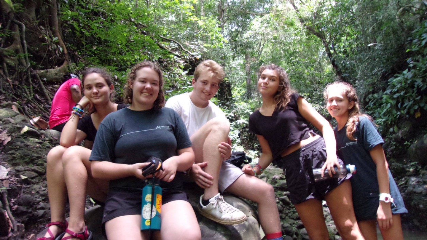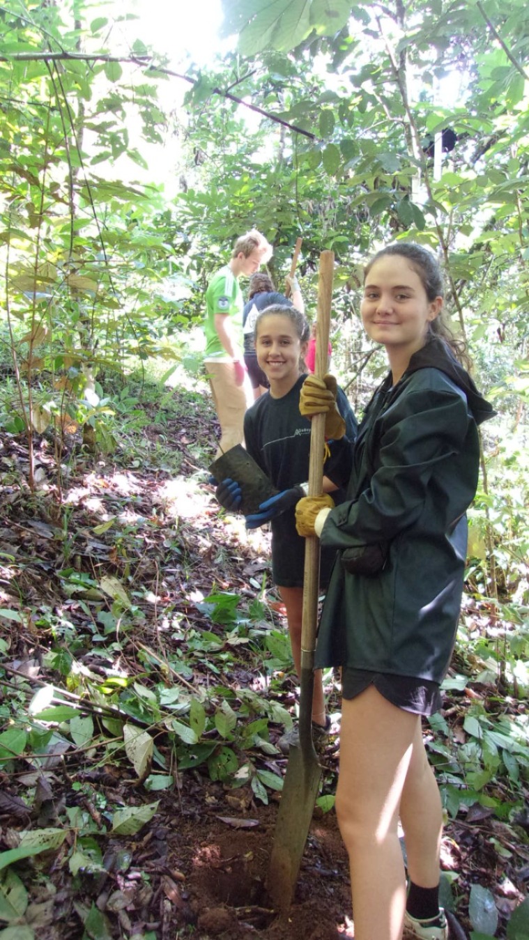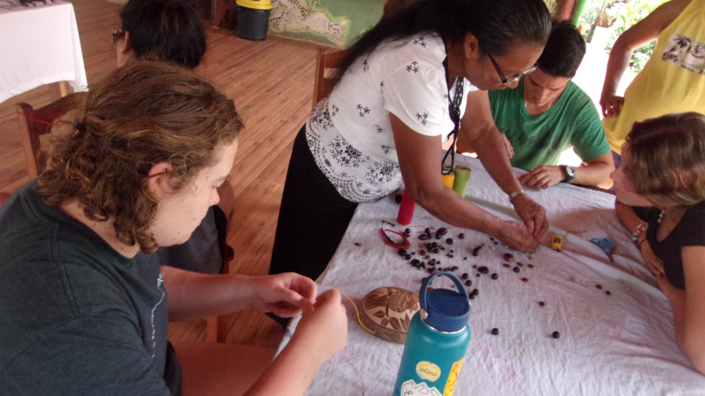 Today after we had breakfast, we went to the “jungle” to plant some trees. After we finished planting all the trees, one of the indigenous men who helped us do the work, gave us mamones chinos as a thank you for our help. The mamones chinos were freshly picked off the trees near us. After we finished, we got back to our cabins to put on our chacos and swimsuit, since we were gonna go to a pond. We had a long walk, but finally, we arrived at the pond. We spent some time there and took a few pictures. After we arrived back to our place, we had lunch. Right after lunch, two indigenous people came to teach us how to do handcrafts, the traditional way. That was very fun, and we all made some pretty cool things. After dinner, we played Meca’s favorite game, “Soup Salad”! Which is a fun charades type game that had us laughing a lot with our goofy attempts at describing words. Last night in the Jungle!