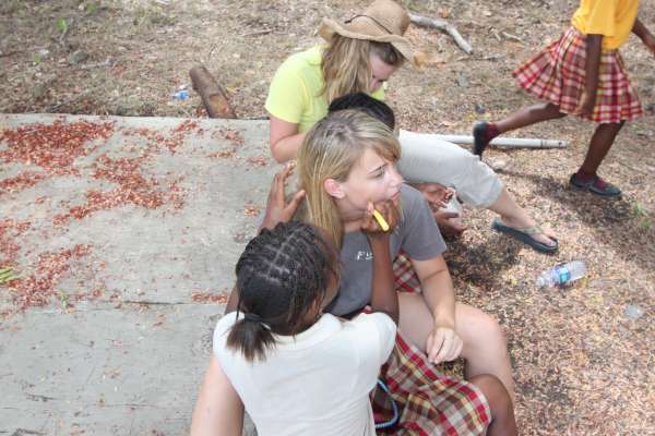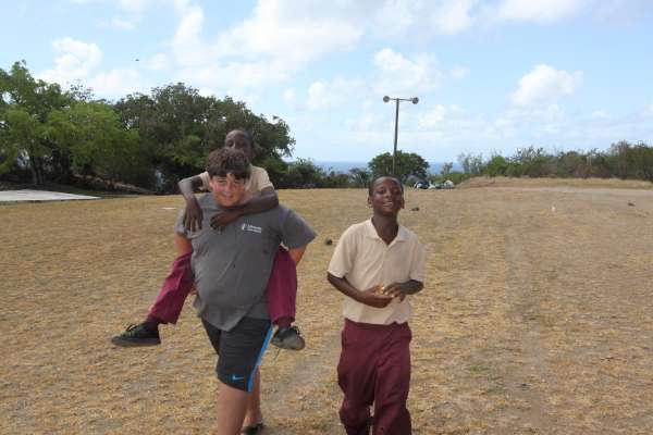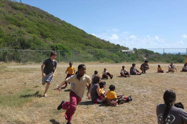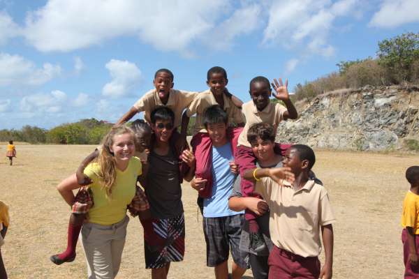 Today started with an exciting trip to Robinson O’Neal elementary school. We played with kids from first grade to sixth grade from about 9:00 to 12:00. The games we played included baseball, basketball, Frisbee, duck duck goose, face painting and many more! It was so much fun being able to interact with all the kids and experience the BVI through their eyes. After we left the school, we came back to the boat to clean up and get ready for shore time! We spent from 1:45-3:15 onshore in Leverick Bay where we ate lunch at Jumbiees and went to the grocery store. After shore time we hurried back to the boat to sail to Vixen Point where the dance would be held that night. Vixen Point was only about 5 minutes away so after arriving and catching a mooring ball we all got to take real freshwater showers! With only being able to take saltwater showers the whole week, it’s safe to say we were all pretty excited for fresh water showers. After showering, we left in a dingy for Vixen Point to eat burgers and hot dogs at 6:00 with everyone before the dance. Then we danced the night away with great music and socializing from 6:30-11:15. After getting back to the boat, we all talked about the dance and how much fun it was and then went to bed.