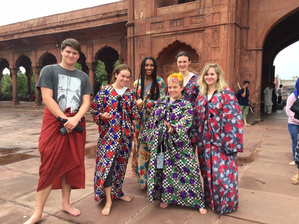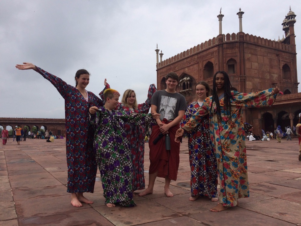 After a late start, we took refuge from the monsoon rains in Gandhi’s house today transformed into a museum. After a delicious lunch in a beautiful building in the city center, we went for a stroll inside the Jama Masjid mosque. Despite our robes to respect Muslim tradition, we made the day of a few men. Last but certainly not least, we visited the magnificent Akshardham complex where we learned all about the non-violence policy of Hinduism and many more through an interactive visit. The building itself was a mine of stunning, delicate, intricate enstoned religious figurines.