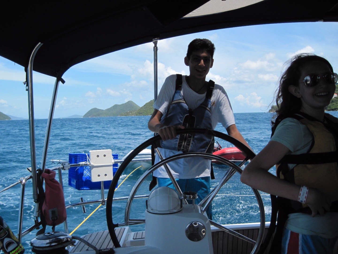 Being a first timer on this trip, I had no idea what to expect. The day started at 3:30 in the morning when I hear five to ten people shuffling into the bottom of the boat because of the small downpour that occurred. Waking up at 6:00 when the sun is shining bright is something new because I am used to the sun rising around seven or eight. After a quick breakfast of cereal, we had an assembly on the docks with all of the other groups at 8:30. This was the day we would start our voyage into the vast ocean. I did not expect to be asked to drive the boat out of the dock, but I took up the challenge and somehow did it. It was a bit exhilarating, but you get the hang of it after a while. Our group helped each other with lifting the sail, and we made it to Norman Island to do our first snorkel expedition. Then came showering in the ocean and dinner to end the day. The best part of the day was driving the boat and snorkeling in the caves. So far, day one had its ups and downs (mostly ups though), and I cannot wait for more fun this trip.