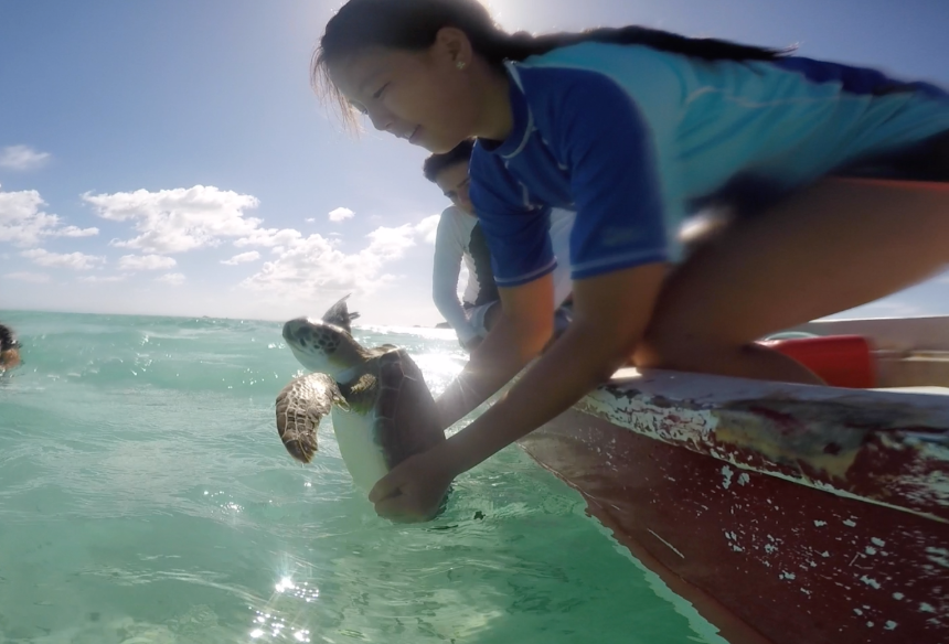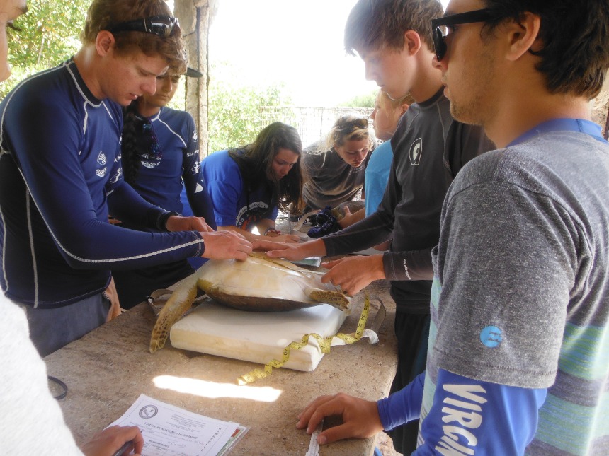 After a lovely morning of cold cereal and semi-warm milk, everybody hopped into the dinghies and sped to land. After a very ‘cozy’ taxi ride we arrived at old Anegada yacht anchorage to do the most incredible thing in the world, other than eating yummy food; tagging turtles. In total, both boats caught and tagged a total of 9 sea turtles. And after such a fun day of tagging turtles, we had some shore time to buy souvenirs. For dinner, we had Thanksgiving dinner, and afterward, we had a wonderful forum.