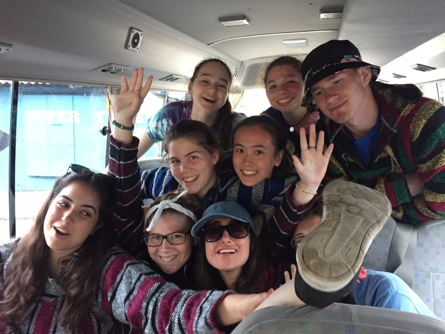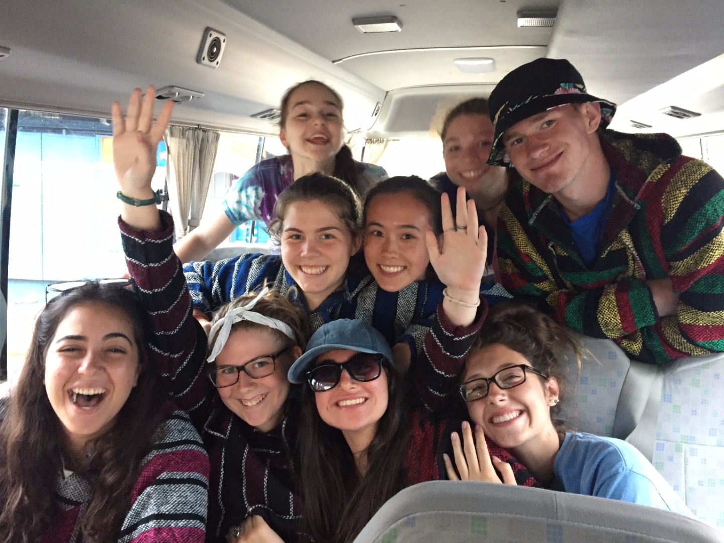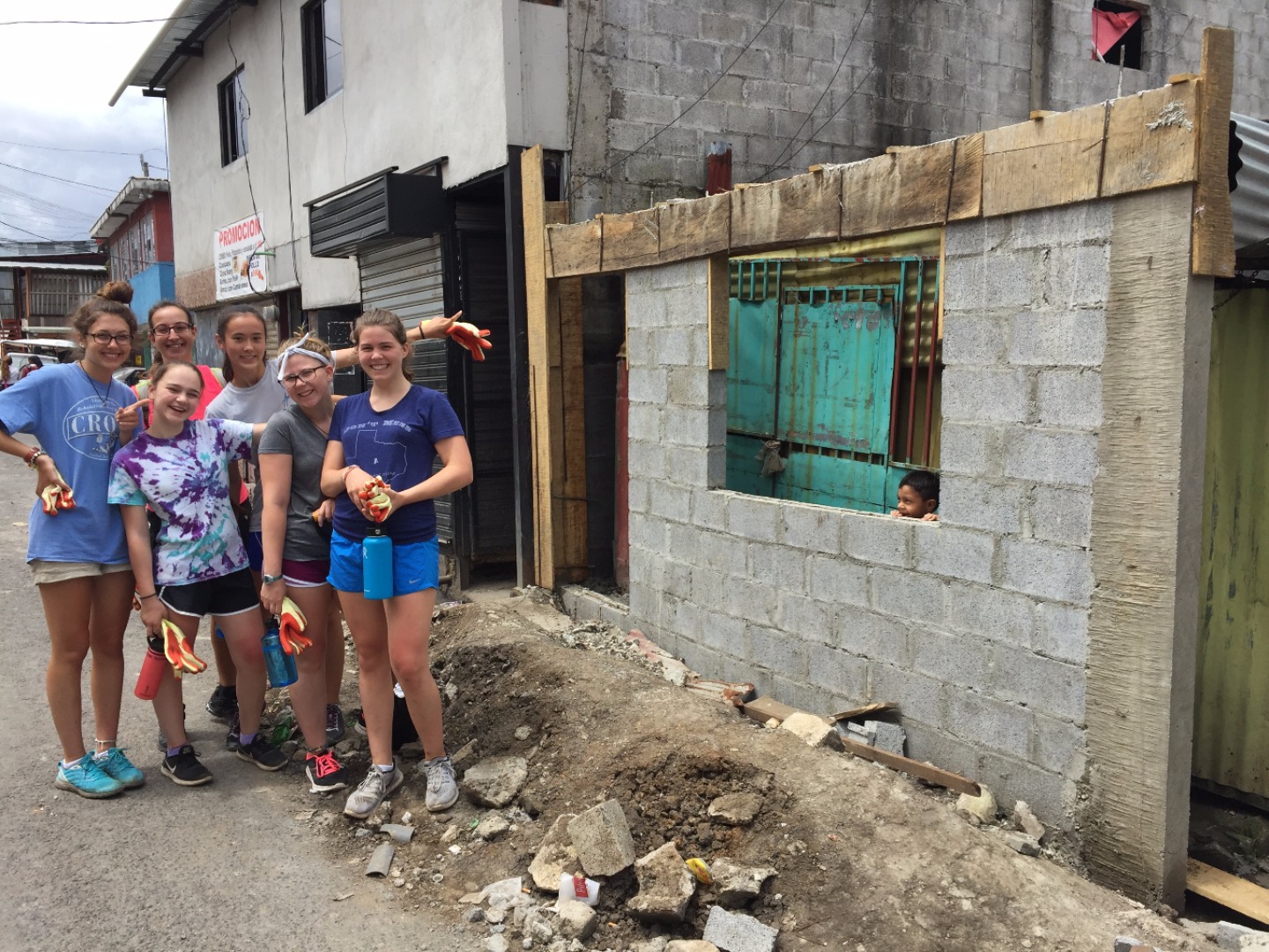Today we went to La Carpio where we painted another mural for the entrance of the Costa Rican Humanitarian Foundation building. The other group was shoveling rocks and sand to help clean up from the amazing wall project! Then we went to the market in San Jose where we bought all sorts of touristy things like jackets and other cool Costa Rican souvenirs. We all practiced our bargaining skills, and some of us managed to bring the price down to one-third of the original price! A few of us were given free rings made from the extra pieces of one of the metal workers. We then ran to the supermercado to get slushies and Trits (our favorite ice cream) and ate them on the bus. On our way back, we sang and danced together on the bus. Now we’re hoping to go to the soccer field in our neighborhood to hang out a bit before we head back to dinner with our host families. Buenas Noches!