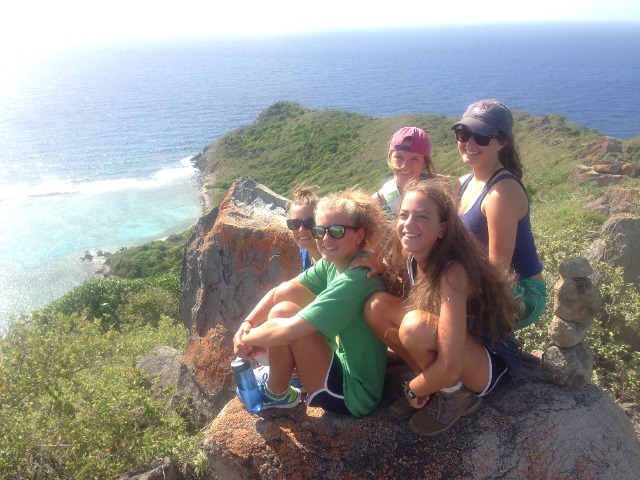 Today is the last day being on the boat, and so far it has been incredible. We woke up very early, each in random parts of the boat. We had to eat breakfast quickly because we had a big day ahead of us and it needed to start as soon as possible. There is a mountain called Spyglass very close to where we had anchored the night before, and we had the luxury to climb it. Once we reached the top, there was a spectacular view that took all of our breath away. Although it was a short hike, it was exhausting, and we were all drenched in sweat. Looking over the mountain, down onto the water, I felt so lucky to be in the most beautiful place on earth. It was a perfect location to reflect on what we had done on the trip, and appreciate how it made an impact on each one of us personally. I couldn’t imagine having a better last impression of the BVI, because this view was the best I’ve ever seen in my entire life. The rest of the day we have been cleaning the boats as thoroughly as possible because it has to be returned to Sunsail Charter company. Our last hoorah of this trip will be a barbecue between all of the boats, and we will all say goodbye. It will most definitely be difficult to let go and detach ourselves from this amazing adventure, but we will all bring back a piece of it in our day to day lives. This trip has changed each of our lives in so many different ways, and I’m truly grateful for that.