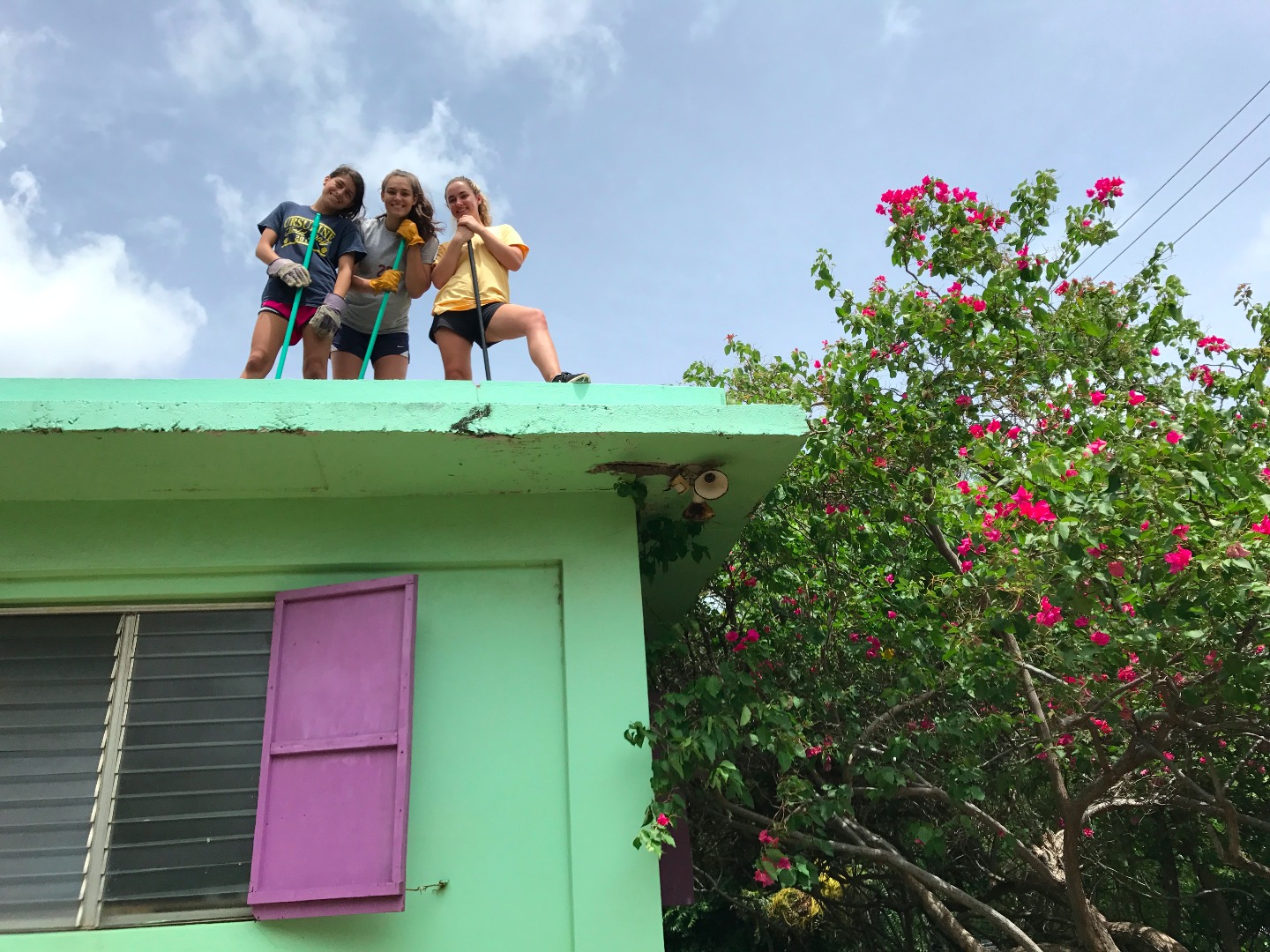 Today we woke up at 6:30 and I was the skipper. We motored to a school on Virgin Gorda. When we got to the school, we split up into different groups to do work. My group was with Izzy and Alyssa. We cleared the roof of gravel, dirt, and sealant. It took a long time, but we did it! When we finished cleaning the roof, it was lunchtime. The teachers at the school made us a nice lunch of rice, beans, chicken and Johnny cakes. After lunch, we went back up to the roof. We got a bucket of sealant and painted as much of the roof as we could. We had so much fun playing and talking to the kids who went to the school. Then we went back to the dock, and I drove us back to the anchorage without killing us. We all showered in the ocean and had a leg shaving party. Then we all sat hung out on the salon. It was a fun day, but we are all tired and excited for tomorrow.