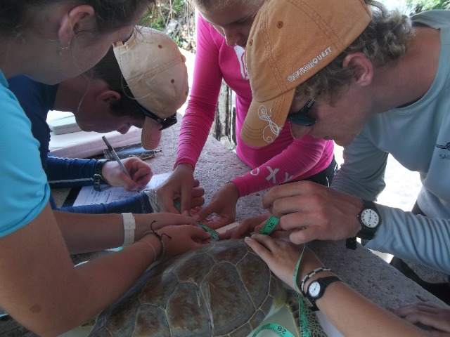 Today, I had to wake everyone up at 7:15 because I was skipper (which is pretty late by the way). We had cereal for breakfast and packed up all of our laundry. At about 9, we got on the dingy to meet the cab to take us to go turtle tagging. We went to Old Anegada Yacht Harbor where we met a guy named Richard. He has worked with boats his whole life, and he was the one who took groups out to get the turtles. The first group was Bonnie, Ashley, David, and me and it was the coolest group ever. We drove about 20 minutes out into the water when we saw our first turtle.