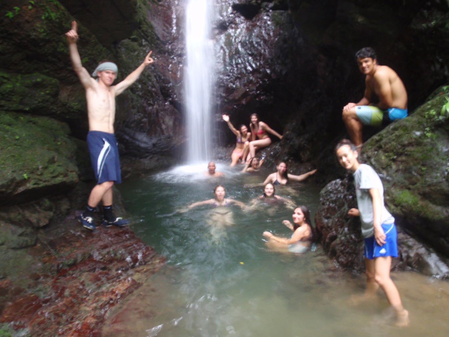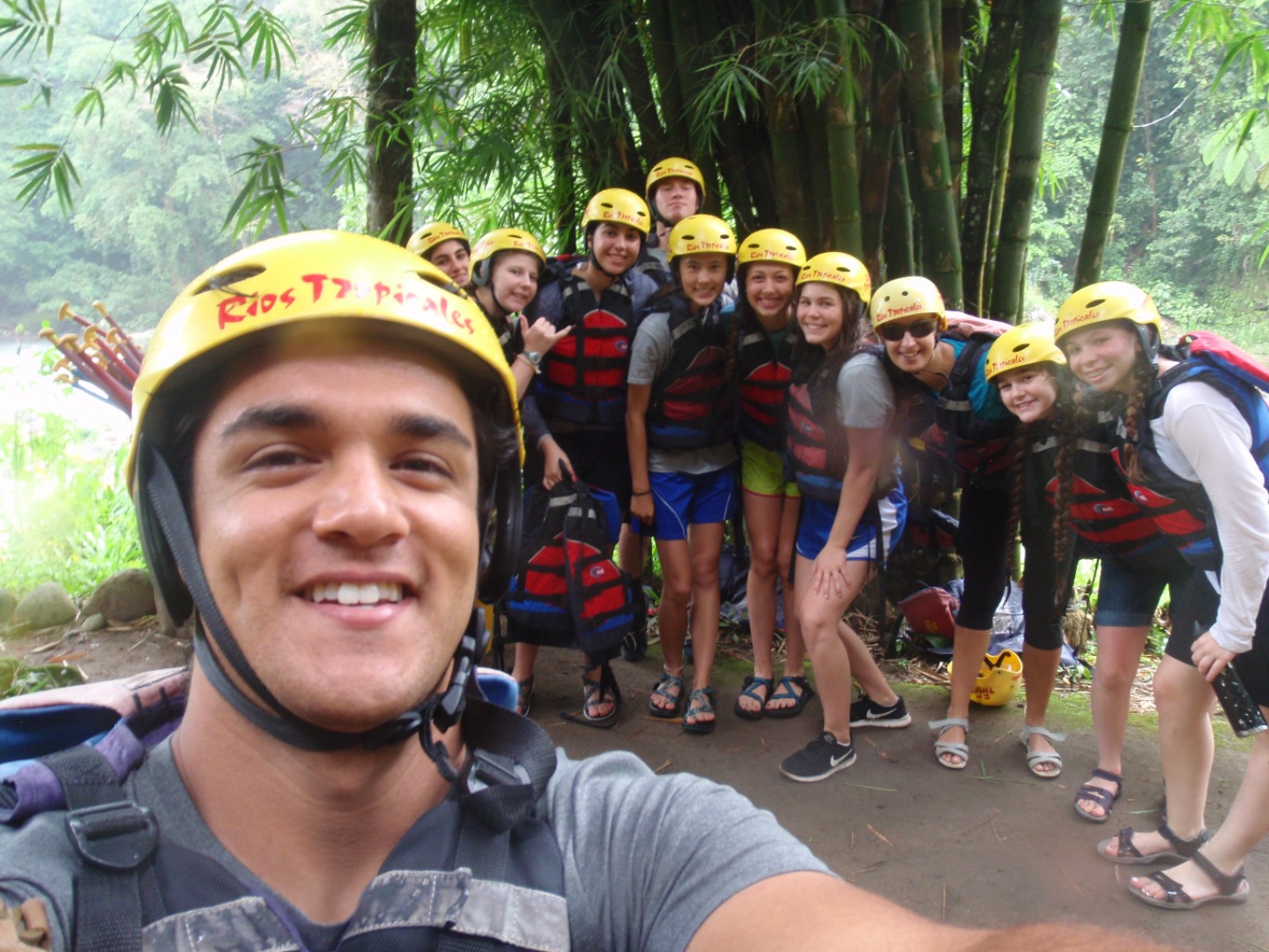 Hey guys, it’s Mia and Raquel again. We are back from our east coast excursion! Today we woke up at around seven at the beautiful Rio Tropicales lodge, located on the Pacuare river. Breakfast was comprised of the BEST banana pancakes ever, in addition to eggs and other breakfast staples. We surprised Colby with a HUGE banana pancake, as it is his 19th birthday, and everyone present at breakfast joined in song to commemorate his birthday. The group departed on a 15-minute hike to a nearby waterfall and swim hole, where we spent about an hour jumping off of rocks and swimming in cold water. We returned to the lodge and prepared ourselves for the remaining leg of our rafting trip. During rafting, the group encountered level one through four rapids. Now we are waiting for the host families to arrive. Bye, love you guys!! You will hear from us again when we get our phones back! #nocivilizationnearby #weloveEvan (for giving us our phones). But wait! A surprise birthday cake for Coleby! Happy Birthday, Coleby! Hope everyone has a fun time with their host families. We’re excited to learn some Spanish and see what it’s like to live like a Costa Rican. Buenas Noches everyone.