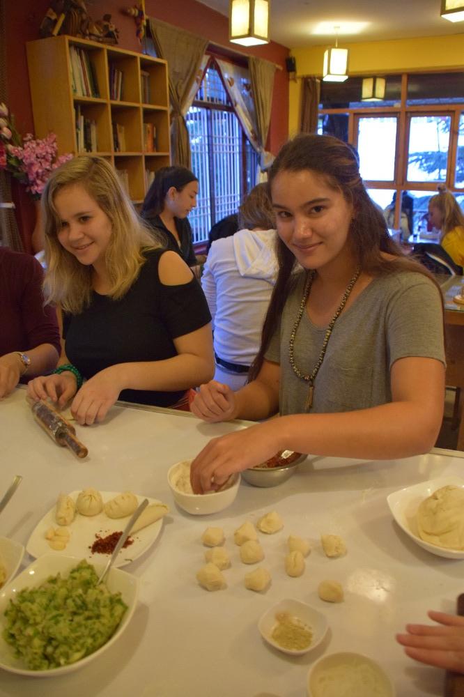 For the most part, today was yet another fun but challenging day working with our learning partners and the students at the Men-Tsee-Khang. However, there were a few changes. When our lessons with the medical students were over, we revisited Tibet World for some conversation classes. Afterward, our group returned to Common Ground and learned how to make Mo Mos, which are Tibetan dumplings. Though some of us were far more successful than others, in the end, they were all delicious, and we concluded the day on a full stomach.