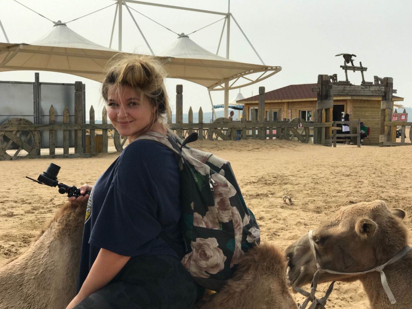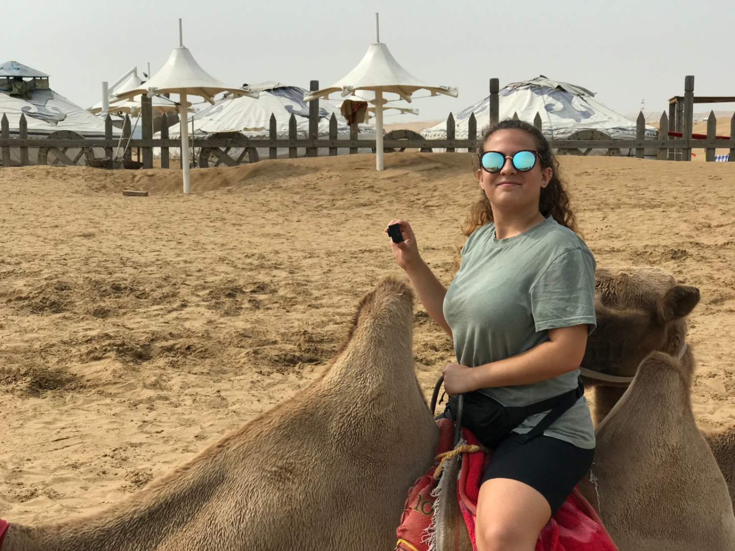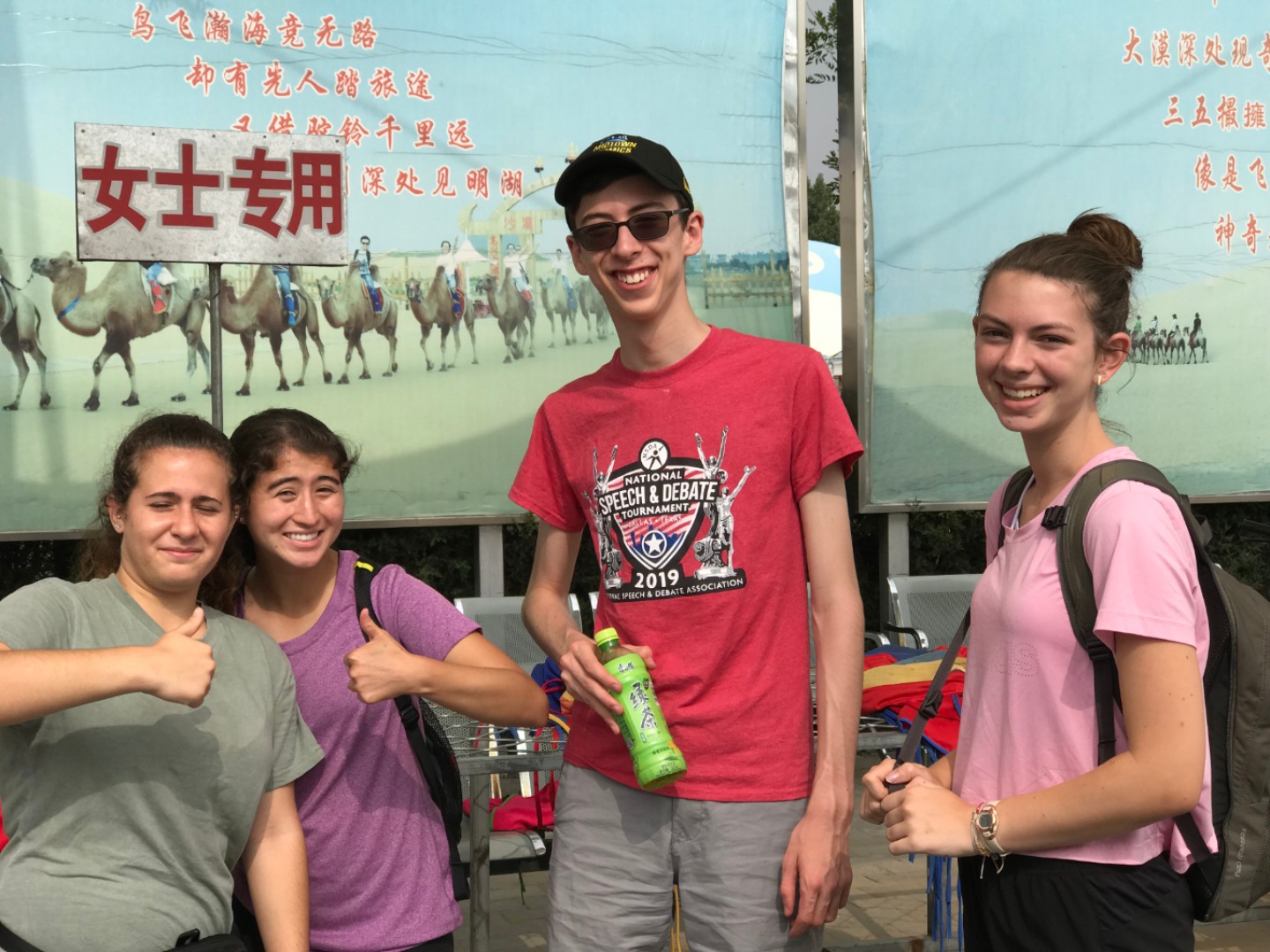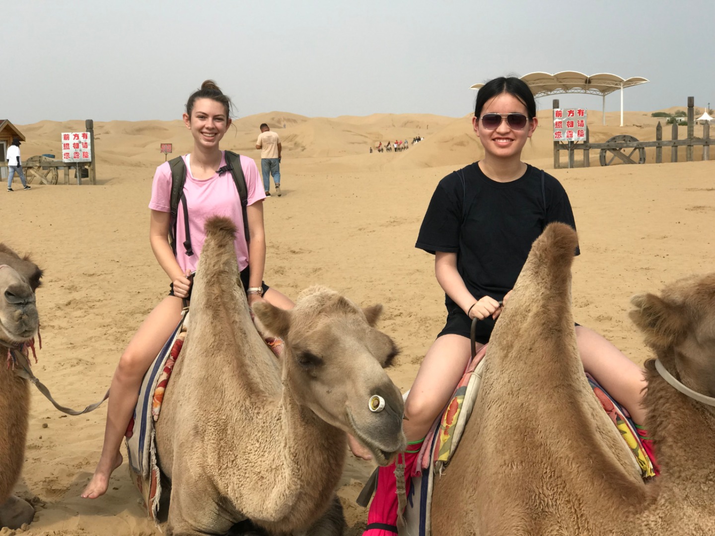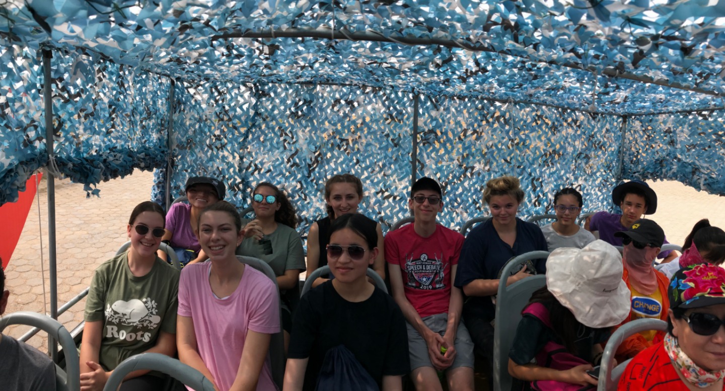 This morning, we met in the lobby at 7:30 am. During the morning, we visited a sand gorge in the seventh largest desert in China spanning nearly 400km (250 miles) in length. We saw camels (some of us even rode them!), climbed up to a Mongolian Buddhist monument, proceeded to slide down the side of a dune, and then visited the tomb of Genghis Khan. Genghis Khan’s empire spanned at one point 3.5x the size of modern China (2x the size of Russia) and was incredibly male-dominated. We thought it was interesting that Mongolian and Chinese culture still retained a lot of their male-oriented culture, something that we are not used to. On our way back, we had some deep conversations about this, and it was very interesting to learn. We then went to a fast-food restaurant to eat something quick before bed. We will be headed back to service tomorrow morning so it’s time for bed now! Good night!