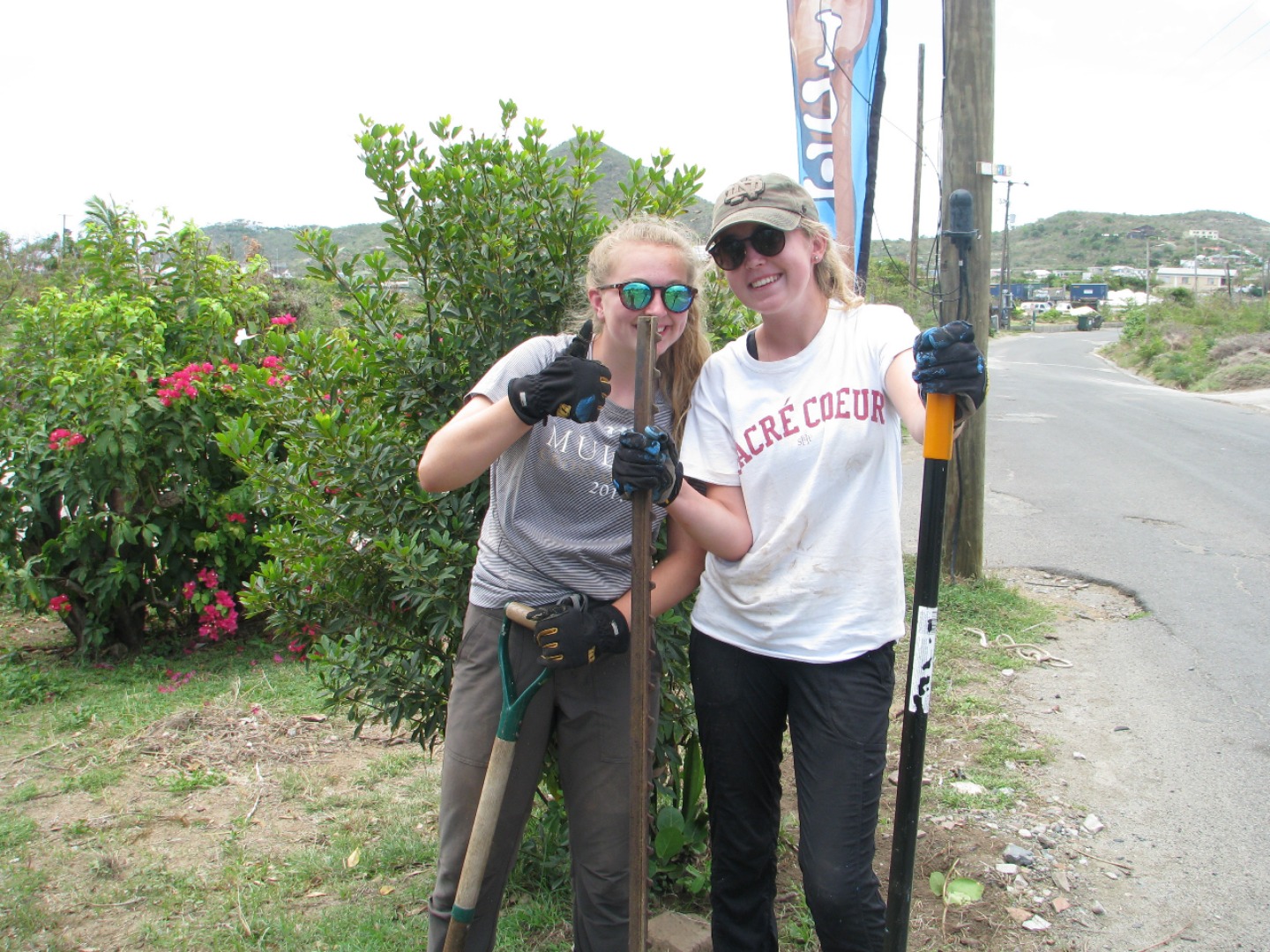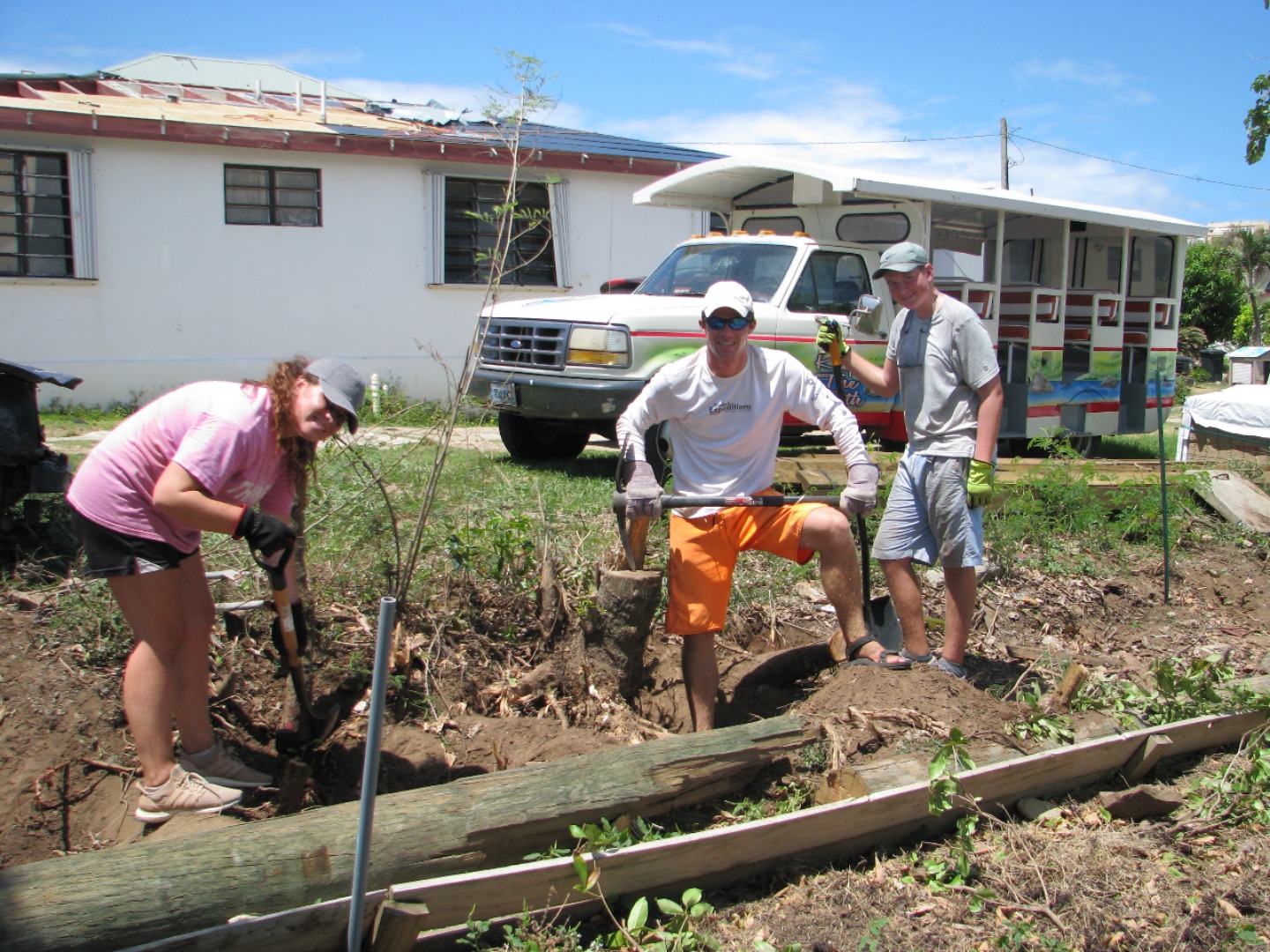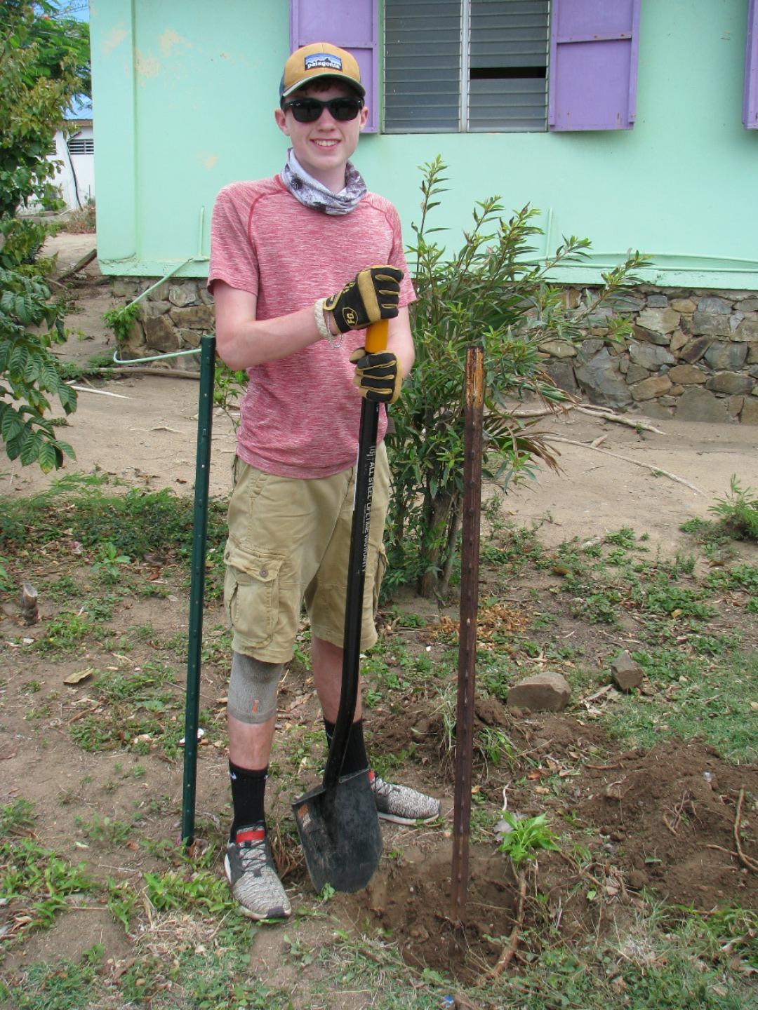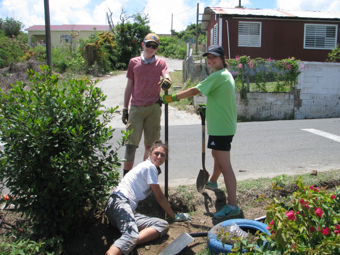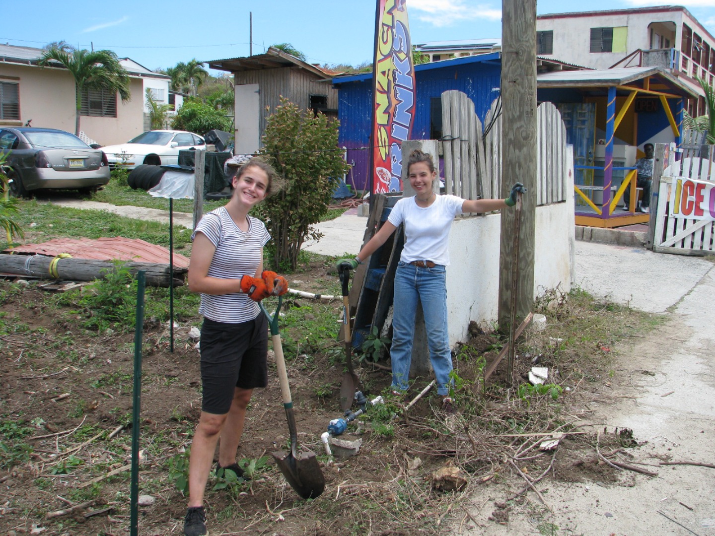 Today, we started the day with the best breakfast possible: pancakes. After breakfast, we quickly got ready to go back to shore and continue the work that we had started yesterday. This time nobody needed to go to the clinic. We split again into two groups, with those who went to Little Rainbows yesterday went back there to try and finish up the swing set. The rest went back to Valley Day School to try and get more than four inches of the fence up this time. The Valley Day crew started with a new tactic, attempting to clear the path for the fence by digging up roots and building a trench for the fence to go into. Sadly, we realized that the posts that caused multiple blisters yesterday were most likely going to be moved. Those at Little Rainbows made great progress on the swing set and were able to paint it and put a majority of it together. We were all rewarded with a pizza lunch and an amazingly cold fruit punch! Soon after lunch we returned to work we had started, and while we’re not able to put up more than four inches of the fence in the end, we were able to almost prepare the perimeter completely. Currently, we are on our way to a barbecue with all the other go beyond and action quest groups, and ready to party with DJ Heavy Beats!