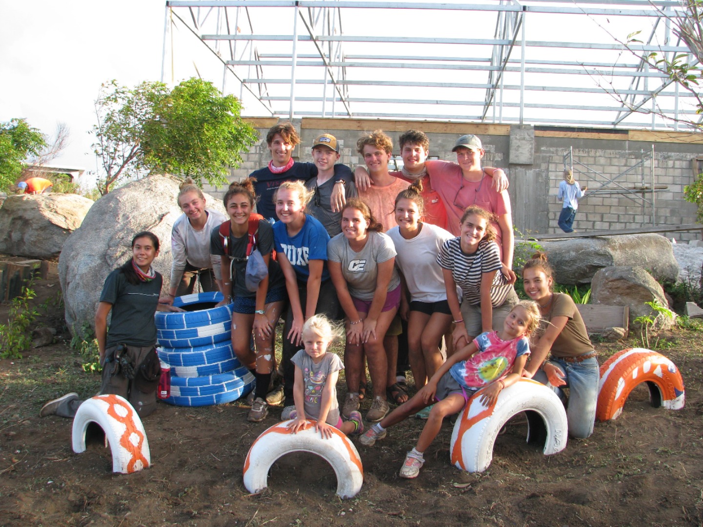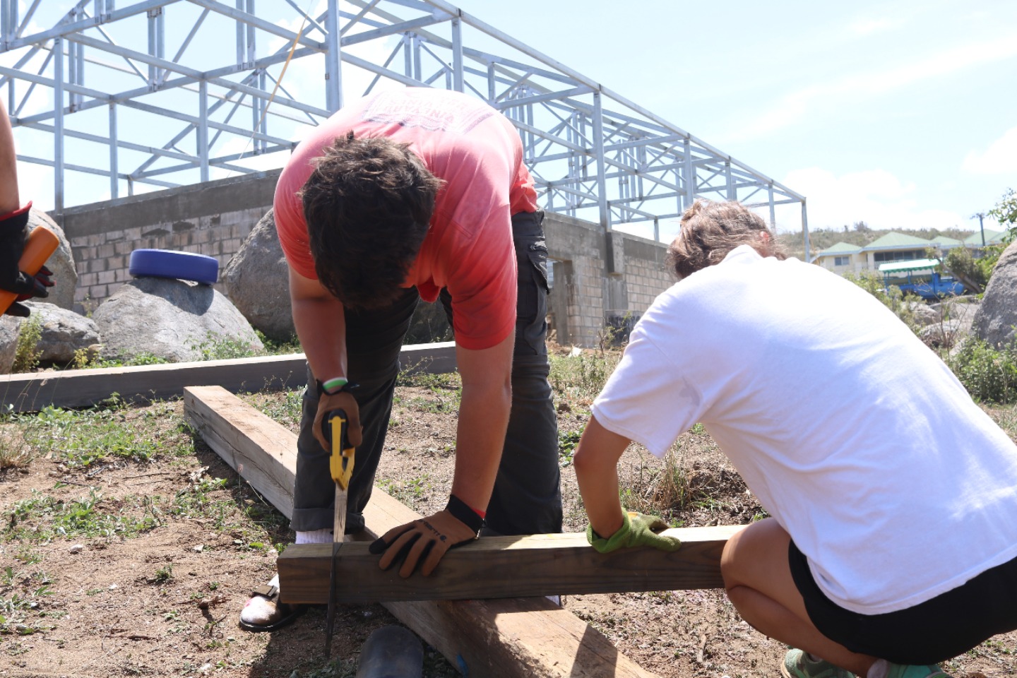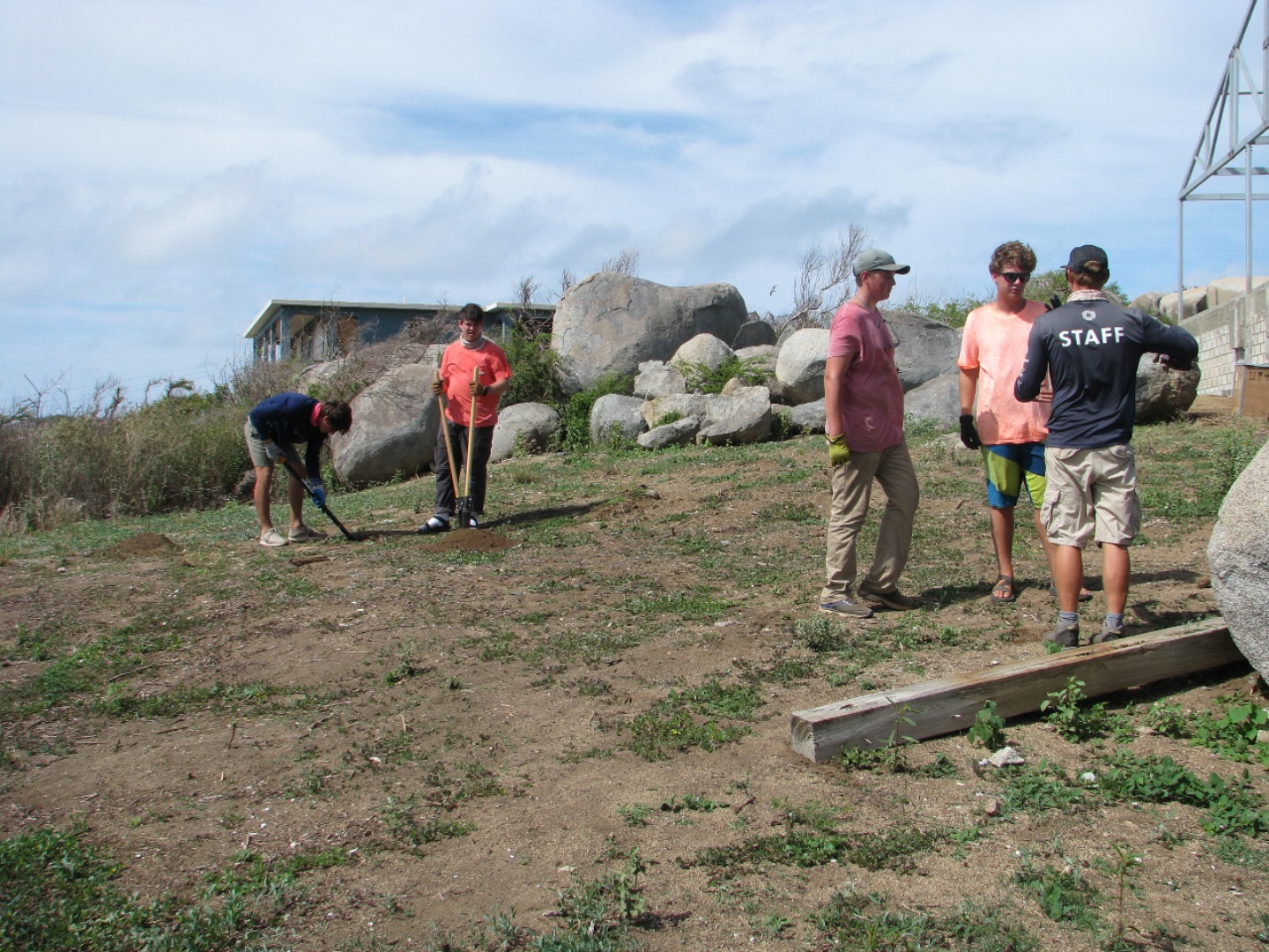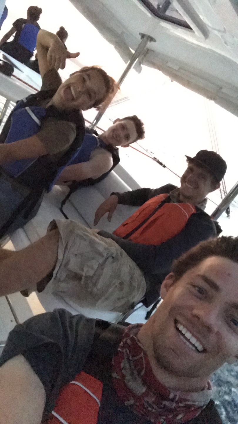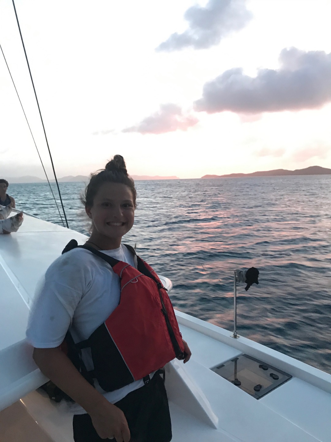 The day started at 6:45 with oatmeal, yogurt, and cereal. We drove back to Spanish Town for a new project. The woman who welcomed us saw our work at Little Rainbow School and asked us to create a playground for her future school. So we went to this construction site and did different projects in small groups: a balance beam, tetherball, the foundation of a swing set, and a snake made with painted tires. Some local students came to help us paint the tires. Laura, the woman who welcomed us, bought us some pizza for lunch and ice to get cold water. While getting back to work, it started raining, we all ran under the tent, trying to protect the cement and tools. I’ve never seen so much rain in only ten minutes. After this episode, Laura’s girls came to the construction site. The youngest one, called Ciel stayed on the balance beam with me. She explained to me that she left for Canada after Hurricane Irma to be safe, but she was excited to come back here in her future school. We asked her if she liked our balance beam, she answered she would prefer it pink. We finished the day and all our projects at 6 pm. It was one of the most productive days. Before coming back on the boat, I meet Ciel’s dad, who speaks French. @maman @papa, I had to tell him that France won the World Cup! Then Ciel asked me to come in the truck with her; she wanted me to come back see her again and her school when it will be done. We came back on the boat and had ocean showers in the evening. We all started shouting because of some jellyfish stings, that was a very funny moment. We finally ended the day with chili and the Saltine Challenge.