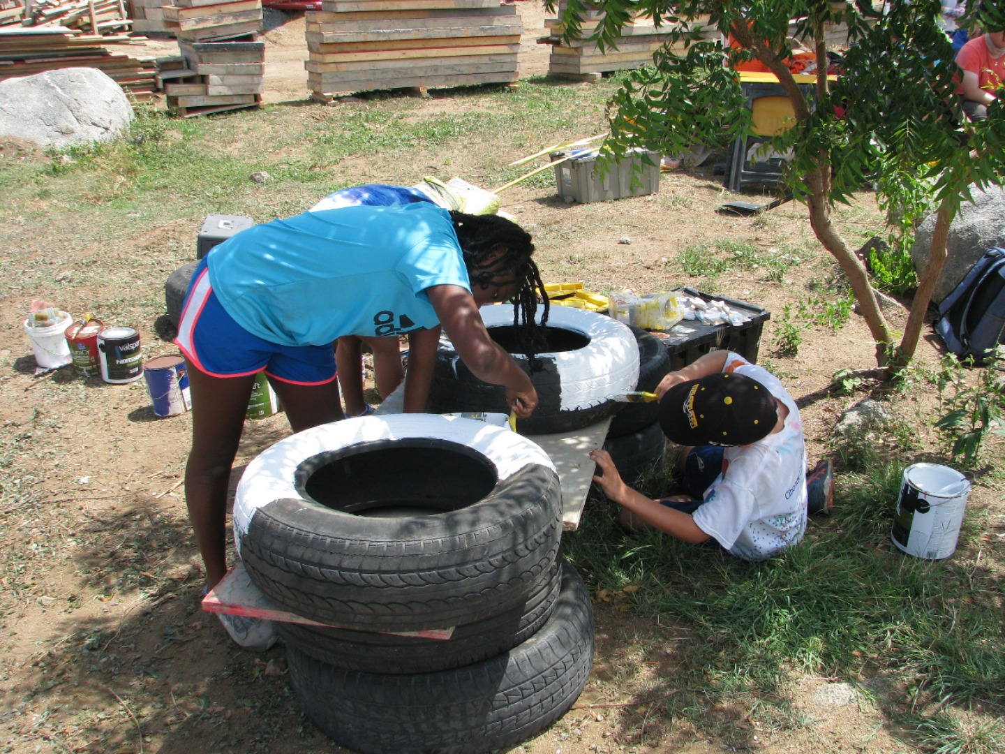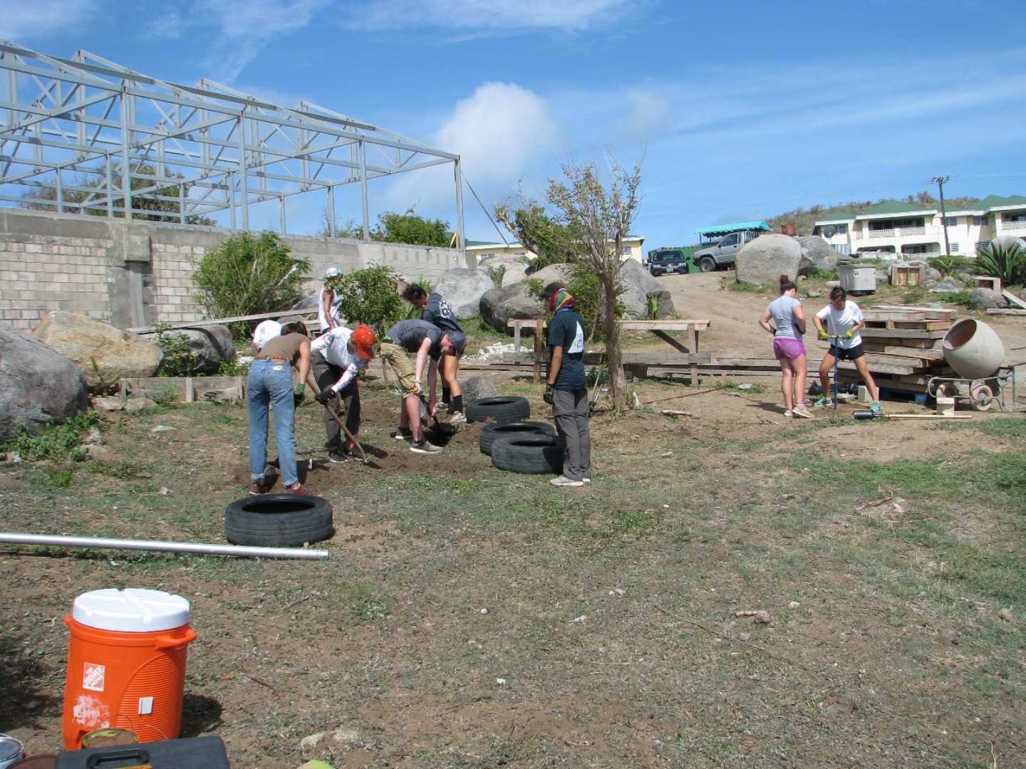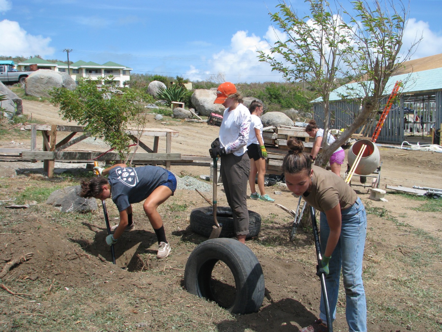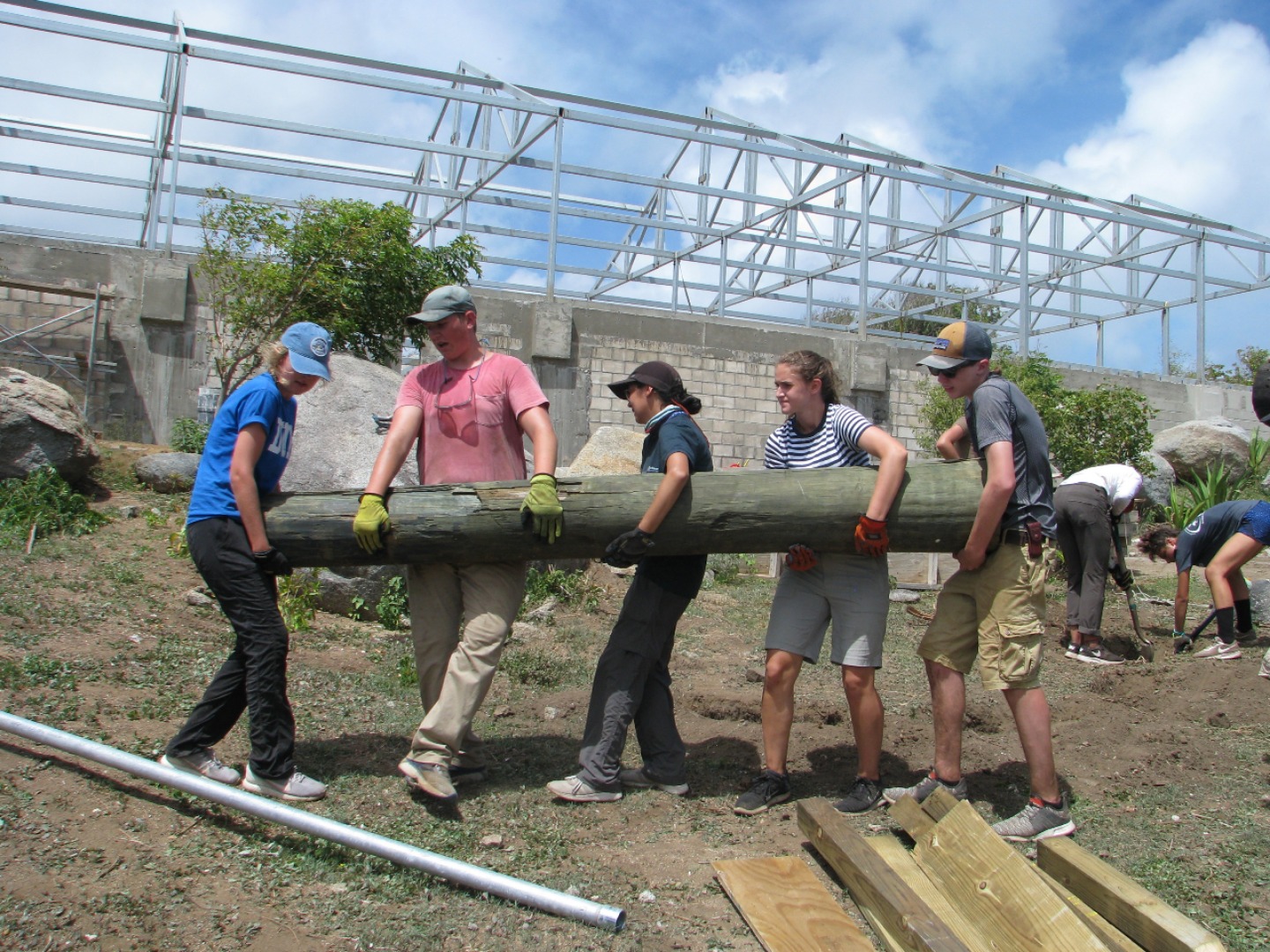 The day started at 6:45 with oatmeal, yogurt, and cereal. We drove back to Spanish Town for a new project. The woman who welcomed us saw our work at Little Rainbow School and asked us to create a playground for her future school. So we went to this construction site and did different projects in small groups: a balance beam, tetherball, the foundation of a swing set, and a snake made with painted tires. Some local students came to help us paint the tires. Laura, the woman who welcomed us, bought us some pizza for lunch and ice to get cold water. While getting back to work, it started raining, we all ran under the tent, trying to protect the cement and tools. I’ve never seen so much rain in only ten minutes. After this episode, Laura’s girls came to the construction site. The youngest one, called Ciel stayed on the balance beam with me. She explained to me that she left for Canada after Hurricane Irma to be safe, but she was excited to come back here in her future school. We asked her if she liked our balance beam, she answered she would prefer it pink. We finished the day and all our projects at 6 pm. It was one of the most productive days. Before coming back on the boat, I meet Ciel’s dad, who speaks French. @maman @papa, I had to tell him that France won the World Cup! Then Ciel asked me to come in the truck with her; she wanted me to come back see her again and her school when it will be done. We came back on the boat and had ocean showers in the evening. We all started shouting because of some jellyfish stings, that was a very funny moment. We finally ended the day with chili and the Saltine Challenge.
