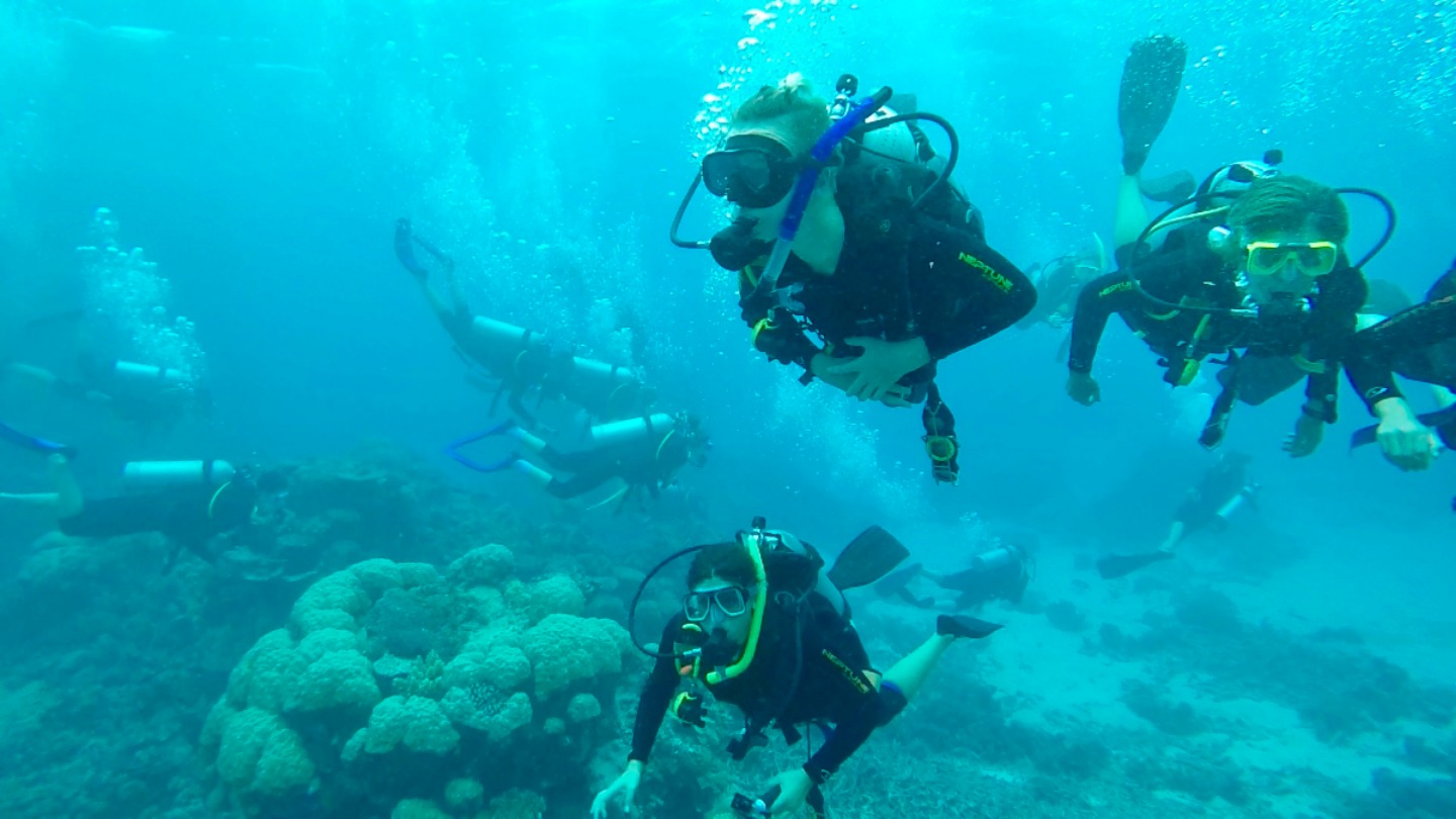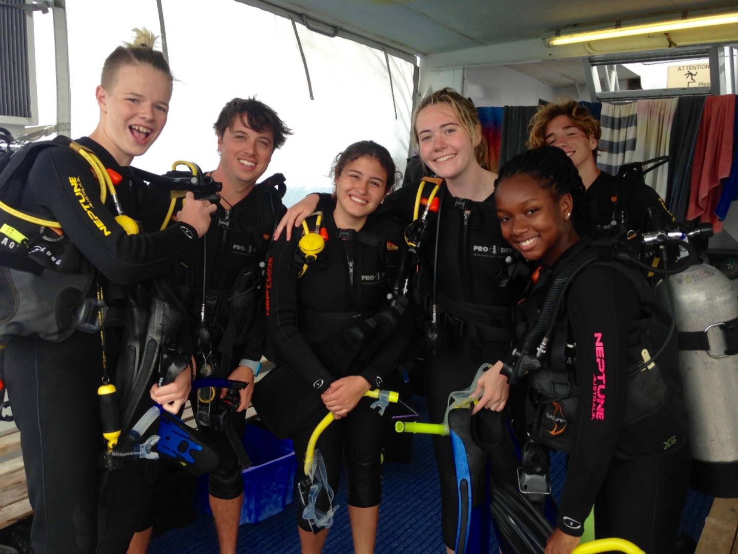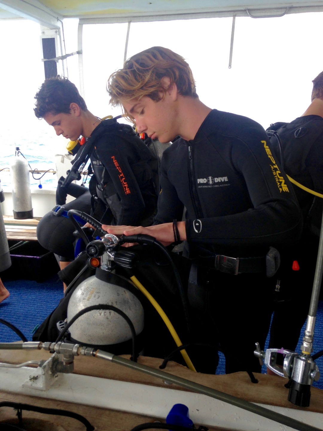 We had an early morning being woken up at 5:30 because we had to board the dive boat. No one complained because first, it was too early and second everyone was really excited to dive finally. After going to the Dive Pro shop to get the paperwork done, we were finally on our way to board the dive boat that we would live in for three days. When we boarded the boat, there were 22 other passengers who were as eager as us to dive. The first dive we did was at 11 am, and everyone was scared that the water was going to be too cold. When we finally jumped into the water in our wetsuits and gear, we descended and started to enjoy diving in the Great Barrier Reef. In the dive, we saw a massive white stingray, a cool titan triggerfish, and many other types of marine life. When we got out we all agreed that the dive was one of the best experiences we had ever had, it was a really good opportunity to still see the coral because at the beginning of the trip we learned that in the next few decades years most of the coral in the ocean would likely die to coral bleaching. We had lunch, and after a small break, some of us did two more dives before having dinner. In the afternoon dives, they saw two white tip reef sharks and a sea turtle. After dinner, we finally dove at night. It was the first experience for many people the only people that had already dived at night were Celsius, Charlotte, and me. Most of the people were scared, but when they finally got in the water, we all experienced a whole different world underwater. We saw two gray tip reef shark and another sea turtle. After that dive, everyone was pretty exhausted, so we fell asleep. Diving in the Great Barrier Reef is a whole different experience than diving in the BVI’s.