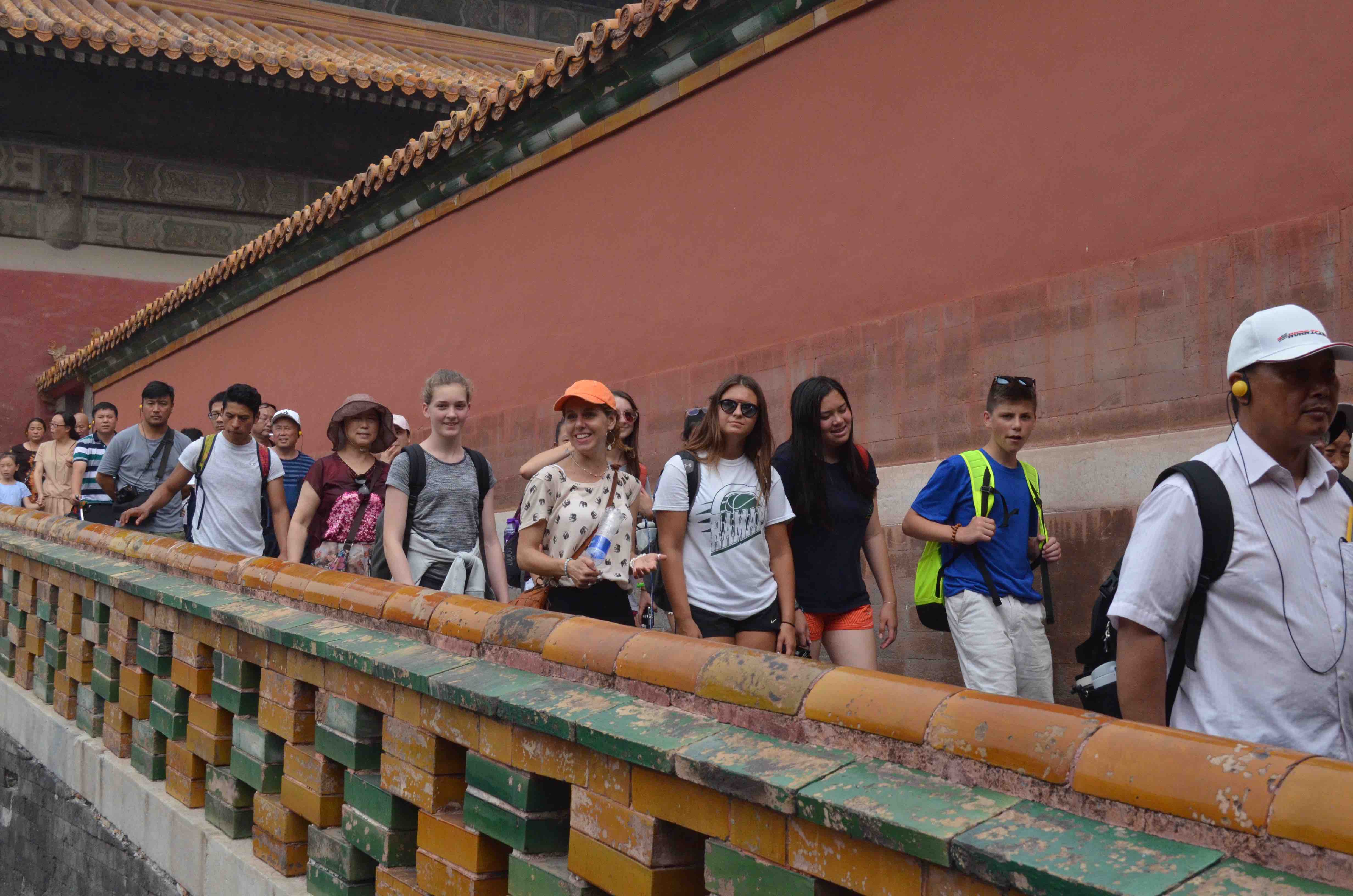 After a morning at Little Flower and working at a warehouse we proceeded to take a van into the heart of Downtown Beijing. That night we were permitted two hours to explore the streets of Beijing markets were we experienced the rich culture and were exposed to a side of Chinese culture that we could have only dreamt of. We thoroughly enjoyed the opportunity to break free from our large group and receive an authentic experience. We enjoyed fresh, local food while some utilized their ability to speak Chinese to natives. Several of us bargained with the people who ran the markets to get a fair deal on what we were purchasing. We truly gained insight into the vastness of the Chinese culture while enjoying some various traditional tourist foods. As the night grew on, the streets became packed with people, and the city became alive. In our groups, we greeted many people in their native language and received many “hellos” and smiles. After a beautiful night on the street, we then relaxed on the roof terrace of our hotel tossing an American football and chatting about the amazing sights we had experienced throughout the day. While in our hotel, we befriended a very nice girl who was four years old. She spoke little English but giggled and played with us as we talked to her mom in Chinese. The next morning we took a short bus ride to one of the most famous sites in China, Tiananmen Square, and the Forbidden City. While there, we gained a superb look into the history of China and its feudal system while also having fun with our friends. We saw beautiful palaces and gained just a small insight into the true vastness of the Forbidden City and its many palaces. It was truly an enjoyable experience, and we will never forget the memories that we made during this part of our volunteer trip abroad.
