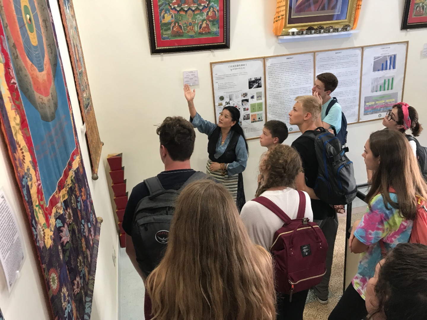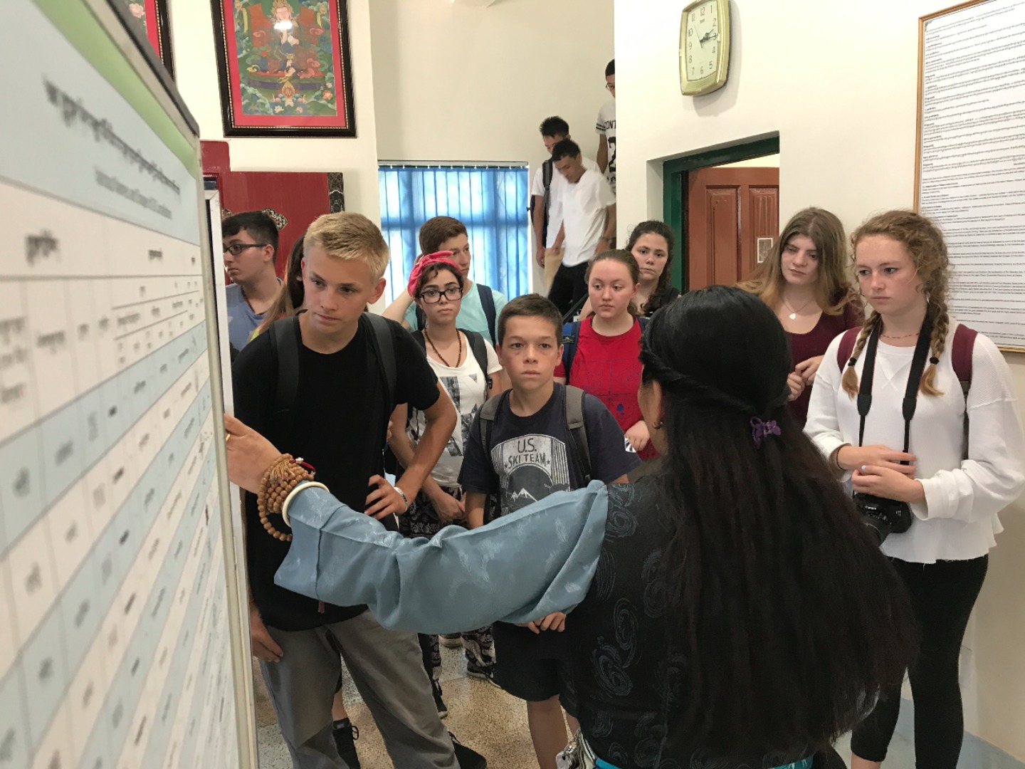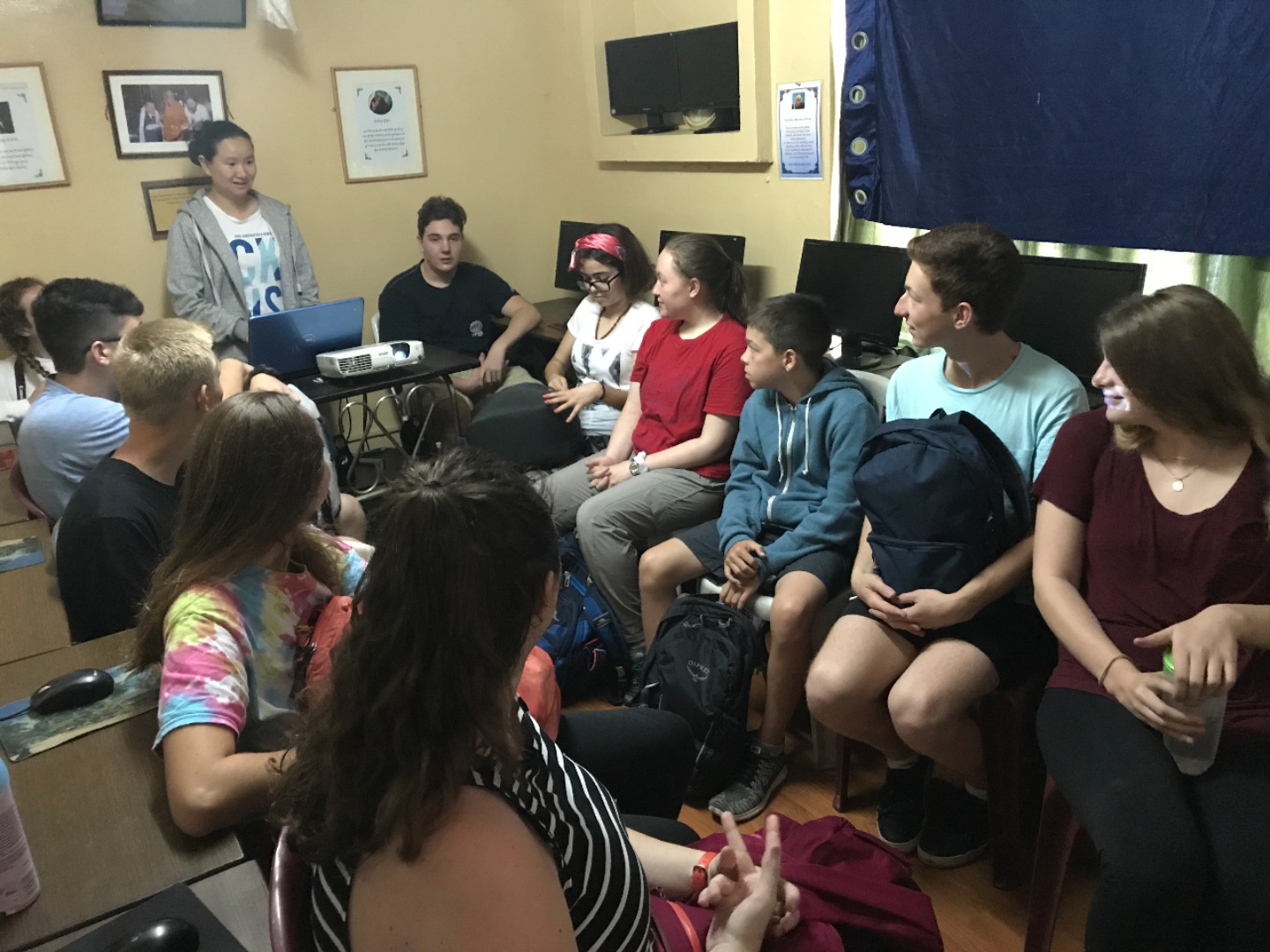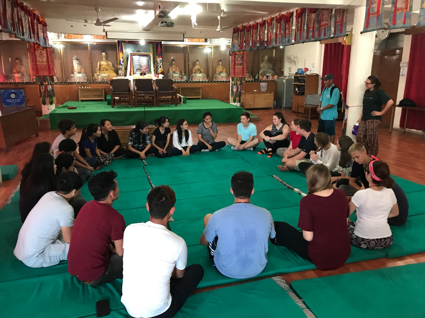 Eventually, we headed back into town and sat down at a cafe. I asked her what she wanted to work on regarding her English studies and she happily whipped out a book written by the Dalai Lama. She flipped to her bookmark and started reading aloud. As we went along, we paused to work on the pronunciation of difficult words and she would often stop me and ask for a definition. It was frustrating when I couldn’t think of a straightforward synonym, when the words she wanted to learn were completely abstract concepts, and when the language barrier seemed insurmountable. However, once I began to get the hang of things and was able to give an explanation that clicked, seeing the look of sudden realization and excitement on her face was incredible! Before I knew it, it was time to say goodbye to our partners for the day and head over to Men-Tsee-Khang. We all sat in a circle and introduced ourselves to the group of astrology and medical students. We heard more stories from people about their journey over to India, as well as from those that have lived here their entire lives. We wanted to hear all the amazing things they had to say, and they were also very curious about our lives back home. The games we played together to get to know one another and give them a chance to practice their English were loads of fun. By the end, everyone was cracking up and feeling much more comfortable. Once we had finished up our volunteer work for the day, we headed out for dinner and team building. It was a great first day of work and an exciting taste of what’s to come in these next two weeks.