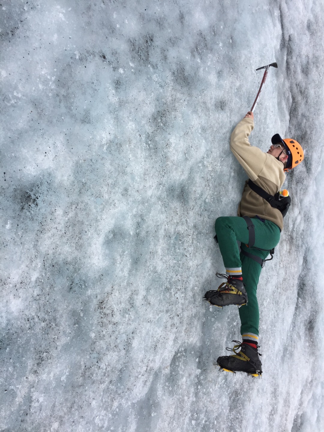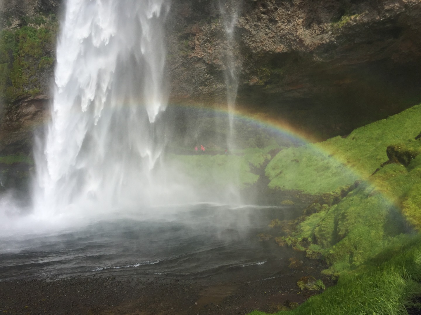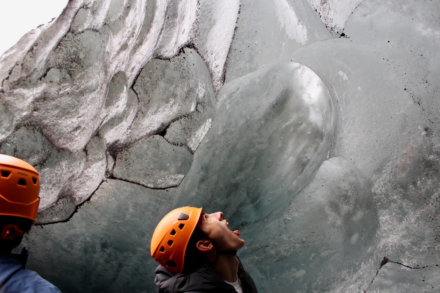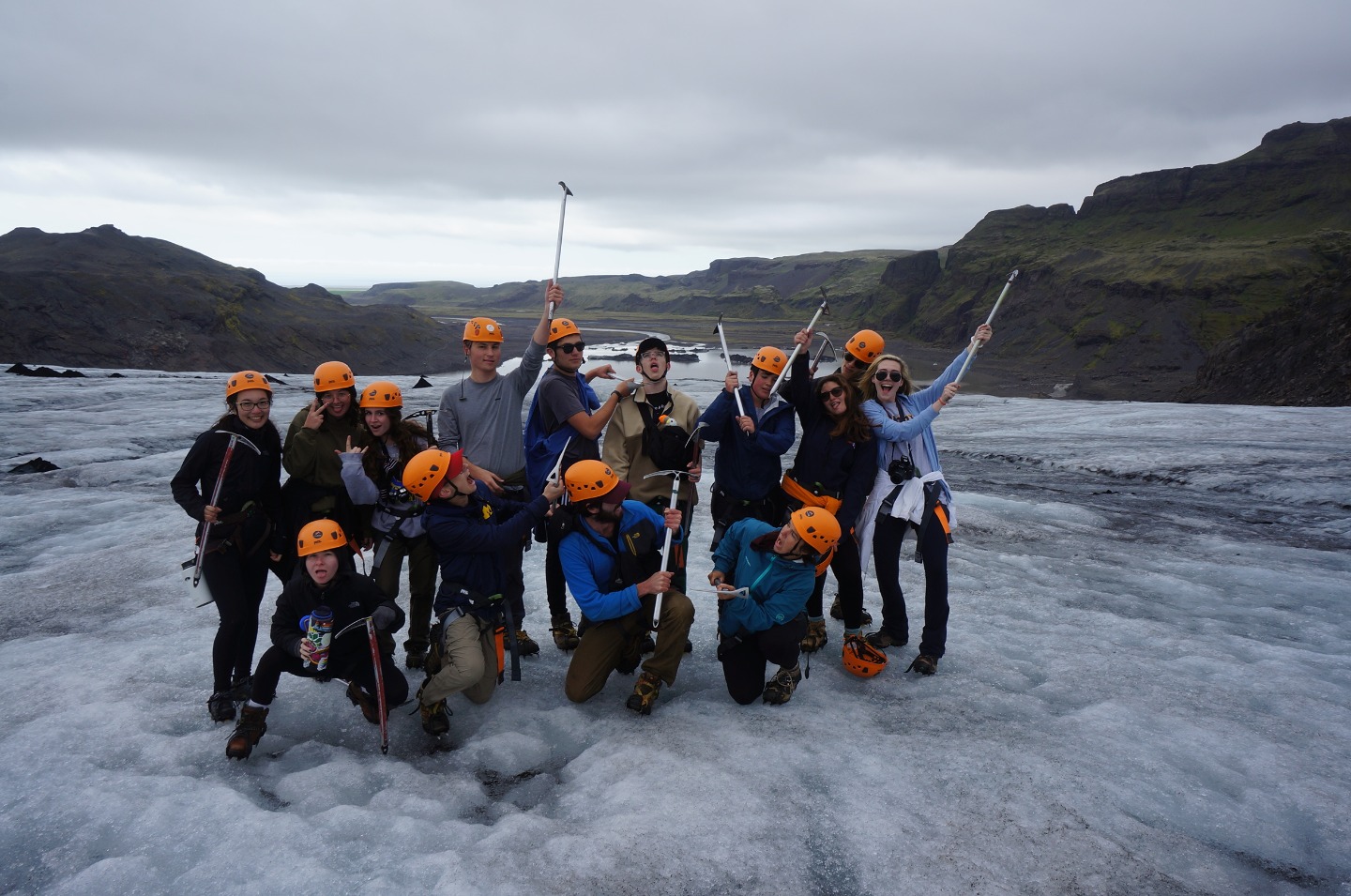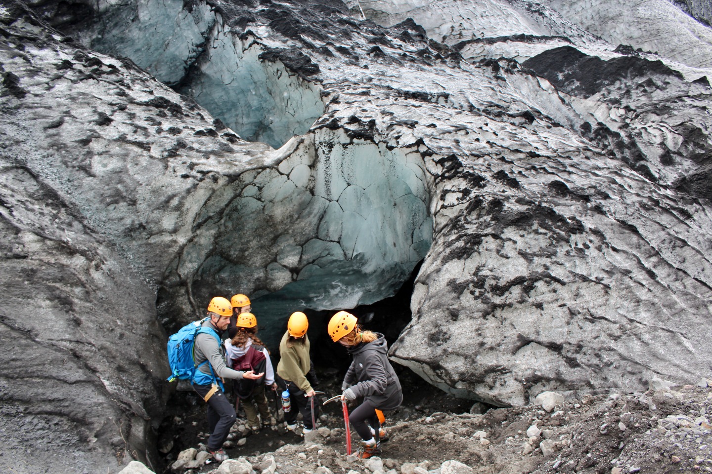 Today I woke everyone up at 7:45 am. We had a delicious breakfast along with cups of tea. After that, we joined the residents of Solheimar for their daily morning meeting and prayers. This was our last morning with them, and we enjoyed singing along. Then Gummi took us to the greenhouse we had worked on previously to see our final product. Everyone felt so satisfied with the work they had done and felt accomplished with what they had done. Solheimar was a beautiful community with really kind people, and we enjoyed every last moment there until our bus picked us up for the glacier hike. The bus ride was about one hour and 45 minutes, but we lost track of time because the scenic view was amazing. Getting ready for the hike was a little difficult because we had to find the right size helmet and crampons and we had to get climbing harnesses. Soon after we got all of our gear, we began our hike onto the glacier-covered in layers of ash from various volcanic eruptions. As we reached the summit, our guide offered to take us to an ice cave to which we happily agreed. Arriving at the cave was a difficult journey because we had to be careful of loose ice and slipping. However, the ice cave was magnificent, and the danger was worth what we saw. After we hiked off the glacier, we took off our gear and hopped from waterfall to waterfall and even visited the famous black sand beach, Reynisfjara, for the rest of the day. The waterfalls were amazing, but the best one was the last one, Seljalandsfoss, that had a pathway behind it, and we got soaked. It was a really amazing day, and we enjoyed every single activity.
