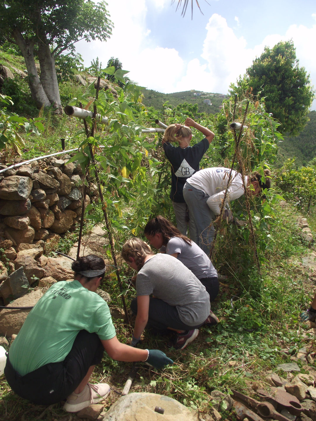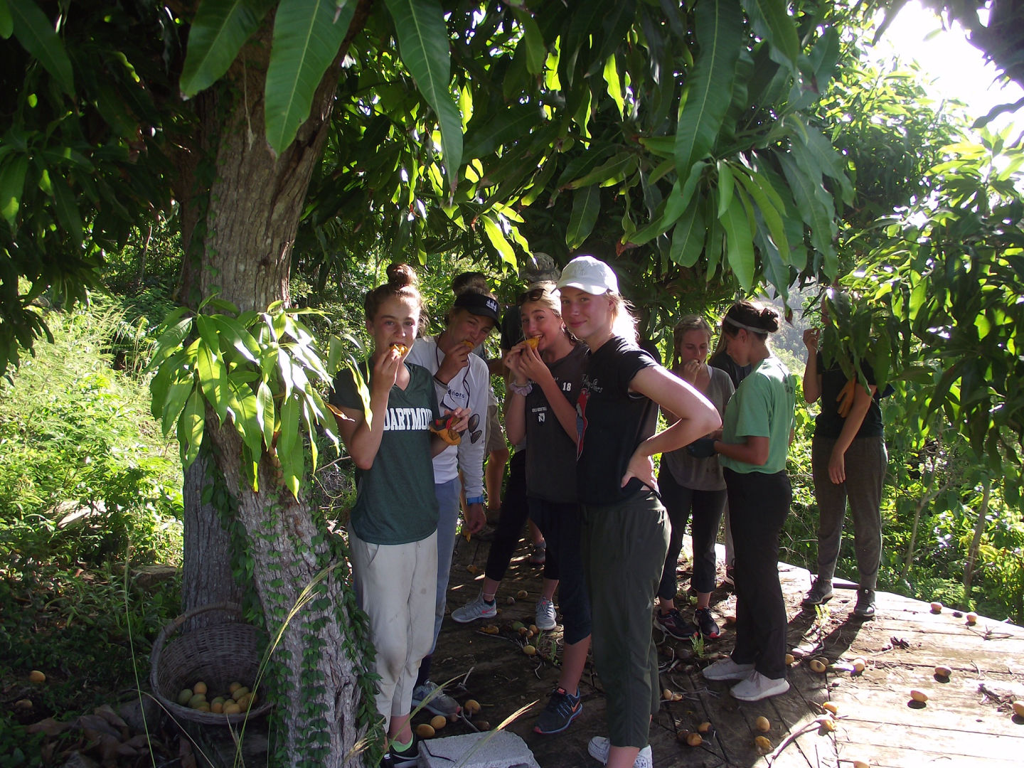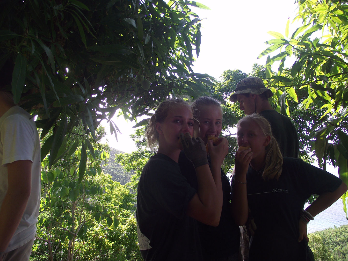 This morning I was delighted to come upstairs to be presented with pancakes made by Charlotte and G-ball. It was made even more special with the new-found knowledge of our boat having Nutella. After the delicious breakfast and the dishie squad cleaned, we set off on our journey to Beef Island. It was a beautiful day to take a sail, and we arrived at around 12:30. We were served white bean Tuscan soup made by the splendid chefs, Nitty and Kate. After our amazing lunch, we got dressed in work clothes to go to ‘Good Moon Farm,’ a local farm. The farm was located on the top of a large mountain. The work was hard, but the view made up for it. We also were rewarded with fresh mangoes straight off the tree. When we returned to the boat, we were excited to hear we could take freshwater showers. After our showers, we felt rejuvenated and excited to devour colorful tortellini and crispy garlic bread. After dinner, we had an evening activity that was very inspirational and fun. We finished the day with gooey brownies, and it was a perfect end to a perfect day.