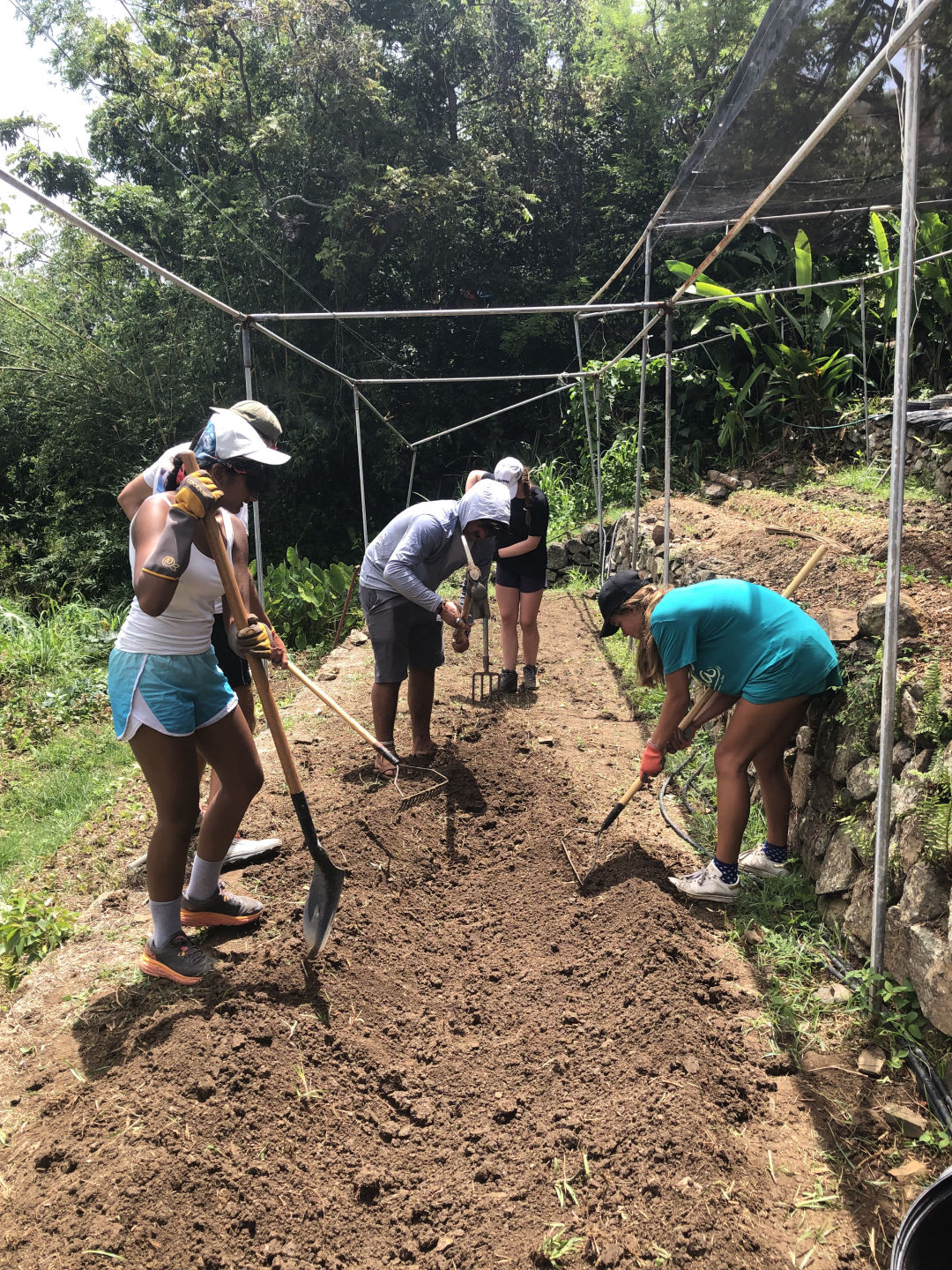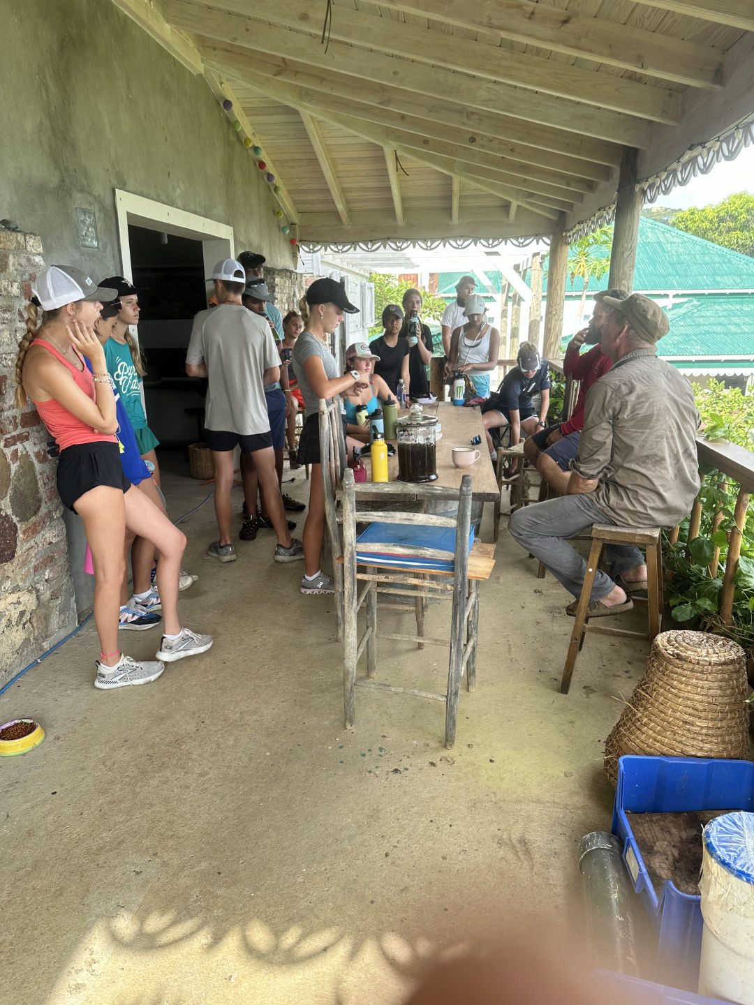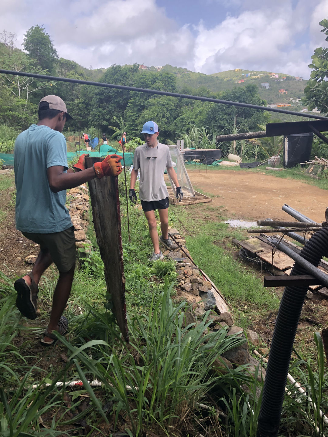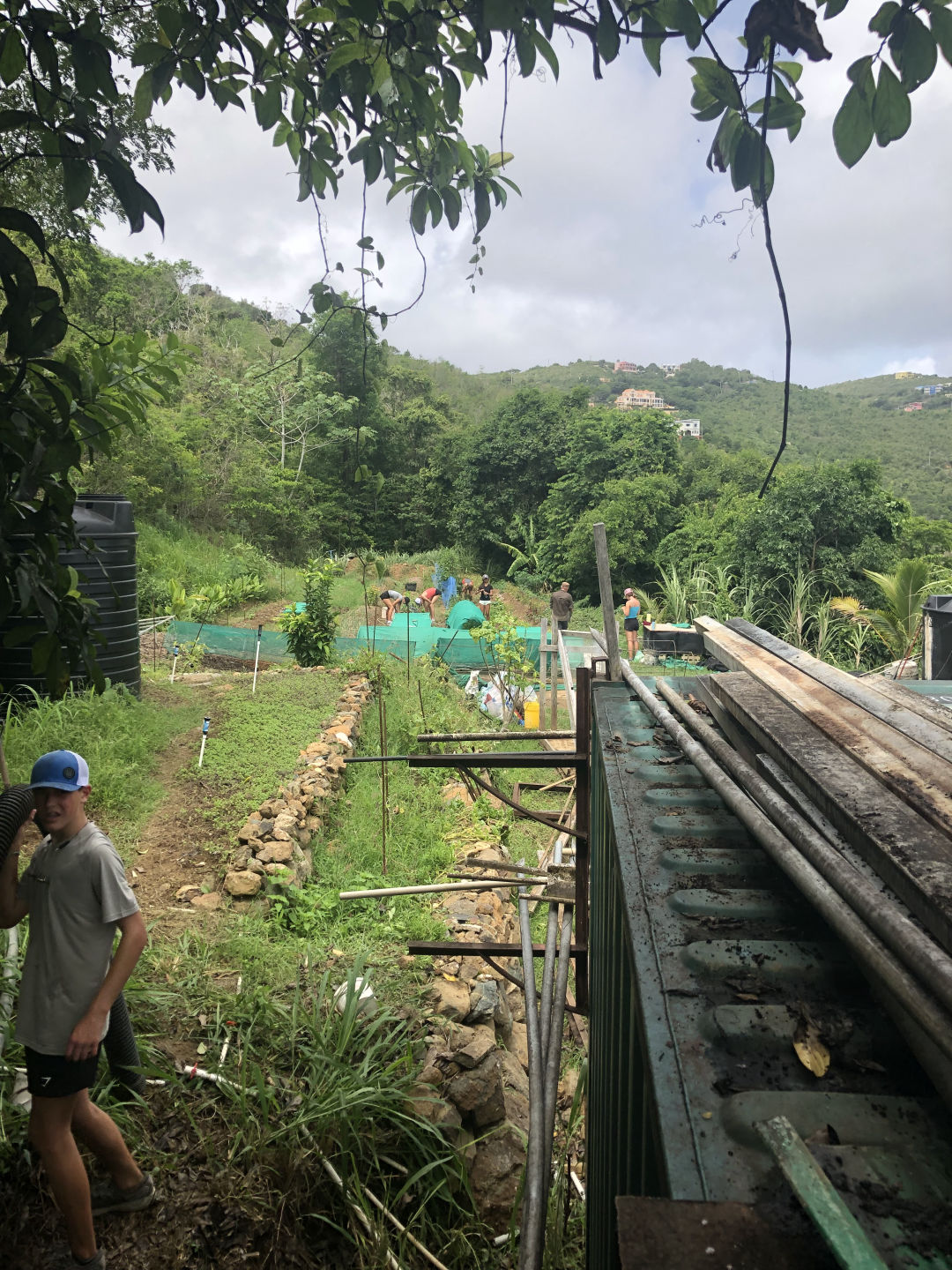 I woke up this morning to Edie and Samira looking very uncomfortable, sleeping on a tiny side table and chairs, and Aditya… on the galley (kitchen) floor. I then was told it rained one too many times on those poor outside sleepers. Meanwhile, I was oblivious in the comfort of the Blue Lagoon with Talula and Manola. We ate cereal and oatmeal again for breakfast and immediately got on the dinghy to a farm on Tortola. I didn’t really know what to expect when Riley told us this would be the most challenging service project yet…
