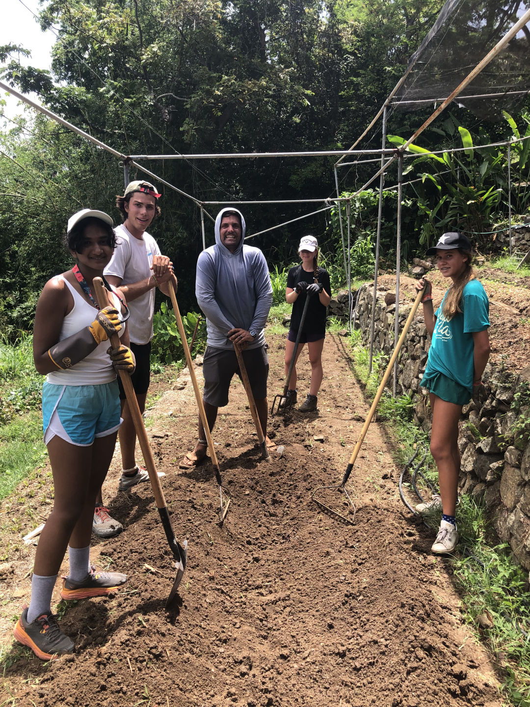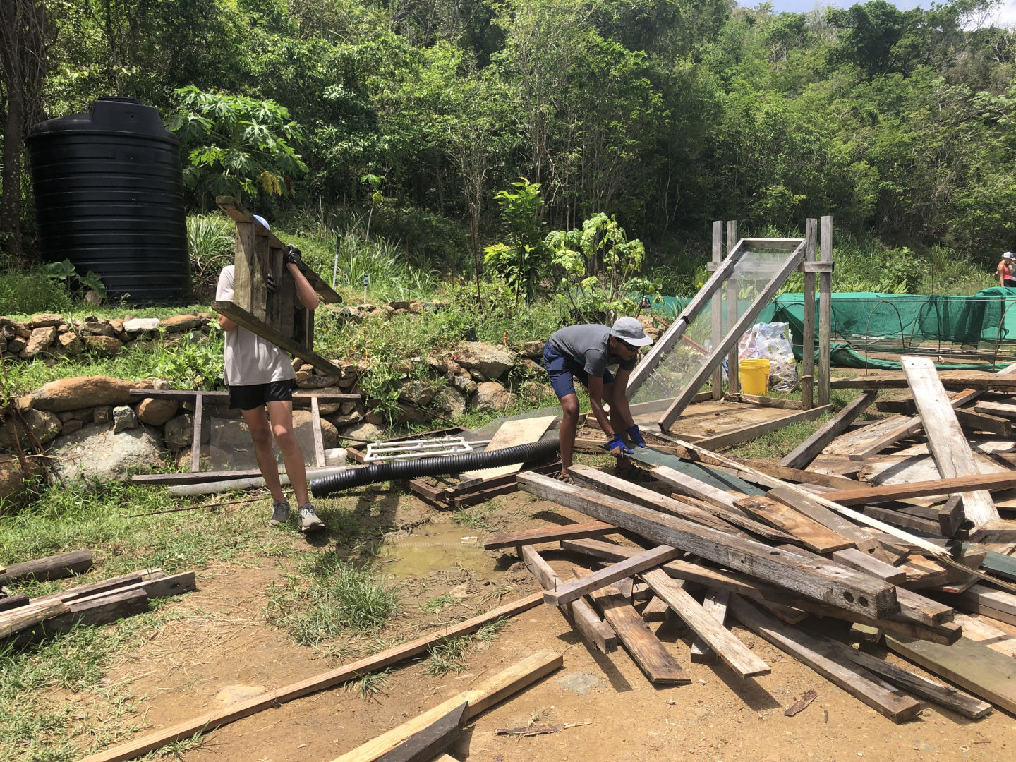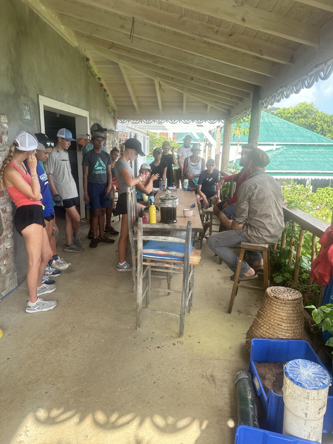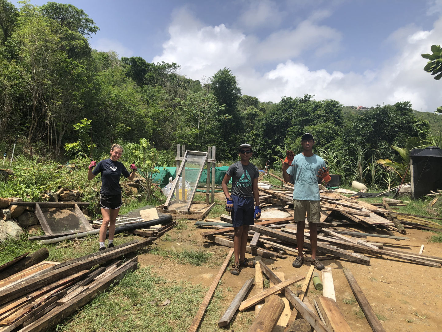 I woke up this morning to Edie and Samira looking very uncomfortable, sleeping on a tiny side table and chairs, and Aditya… on the galley (kitchen) floor. I then was told it rained one too many times on those poor outside sleepers. Meanwhile, I was oblivious in the comfort of the Blue Lagoon with Talula and Manola. We ate cereal and oatmeal again for breakfast and immediately got on the dinghy to a farm on Tortola. I didn’t really know what to expect when Riley told us this would be the most challenging service project yet…