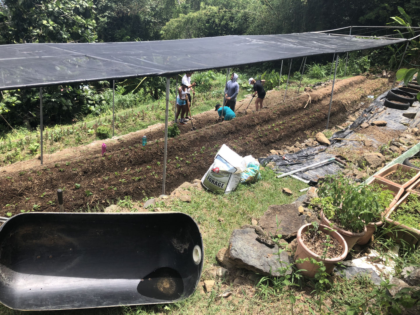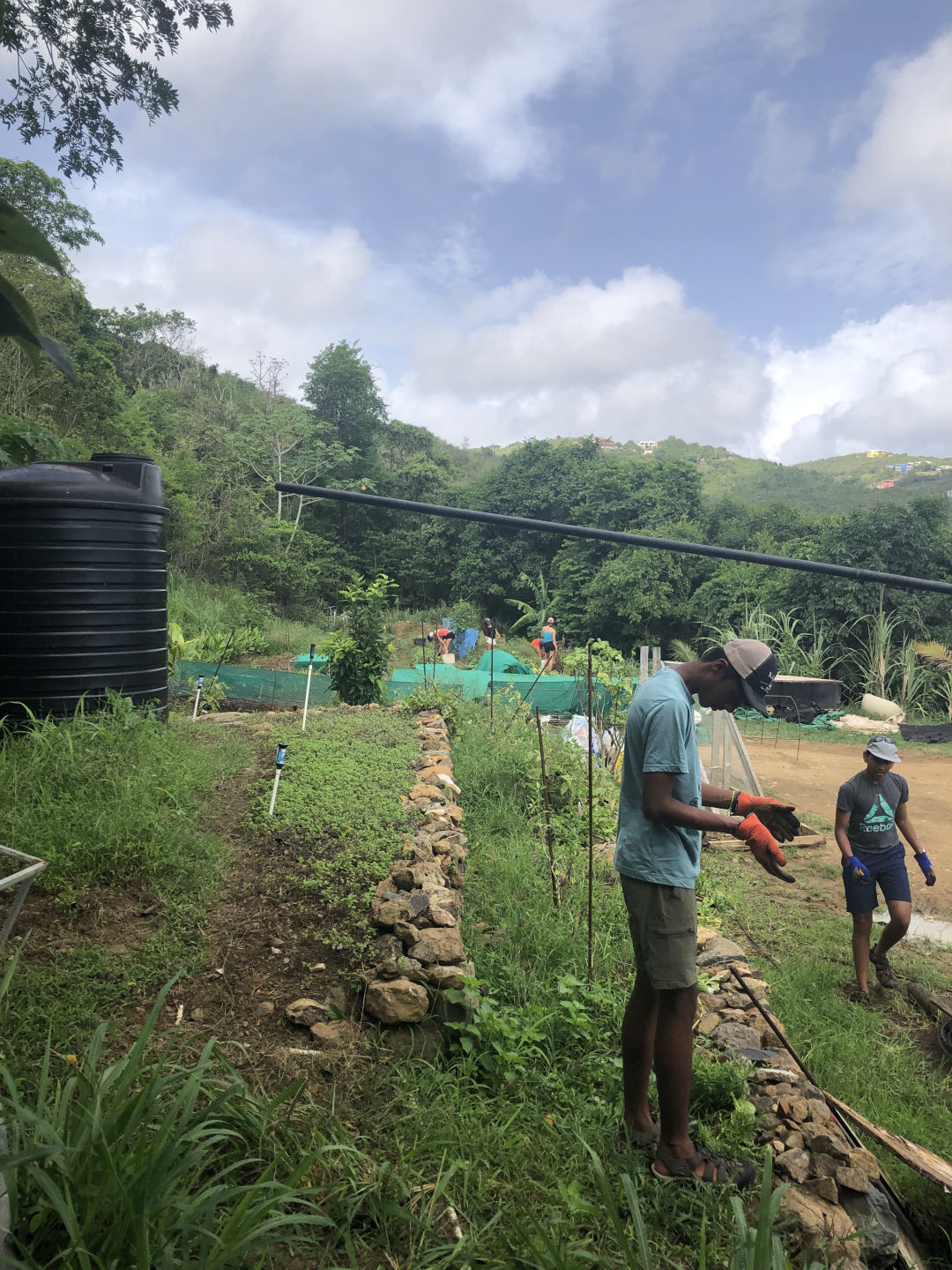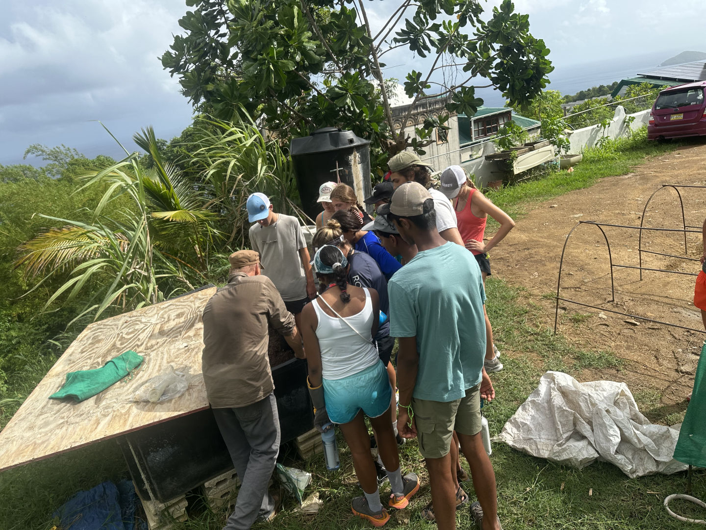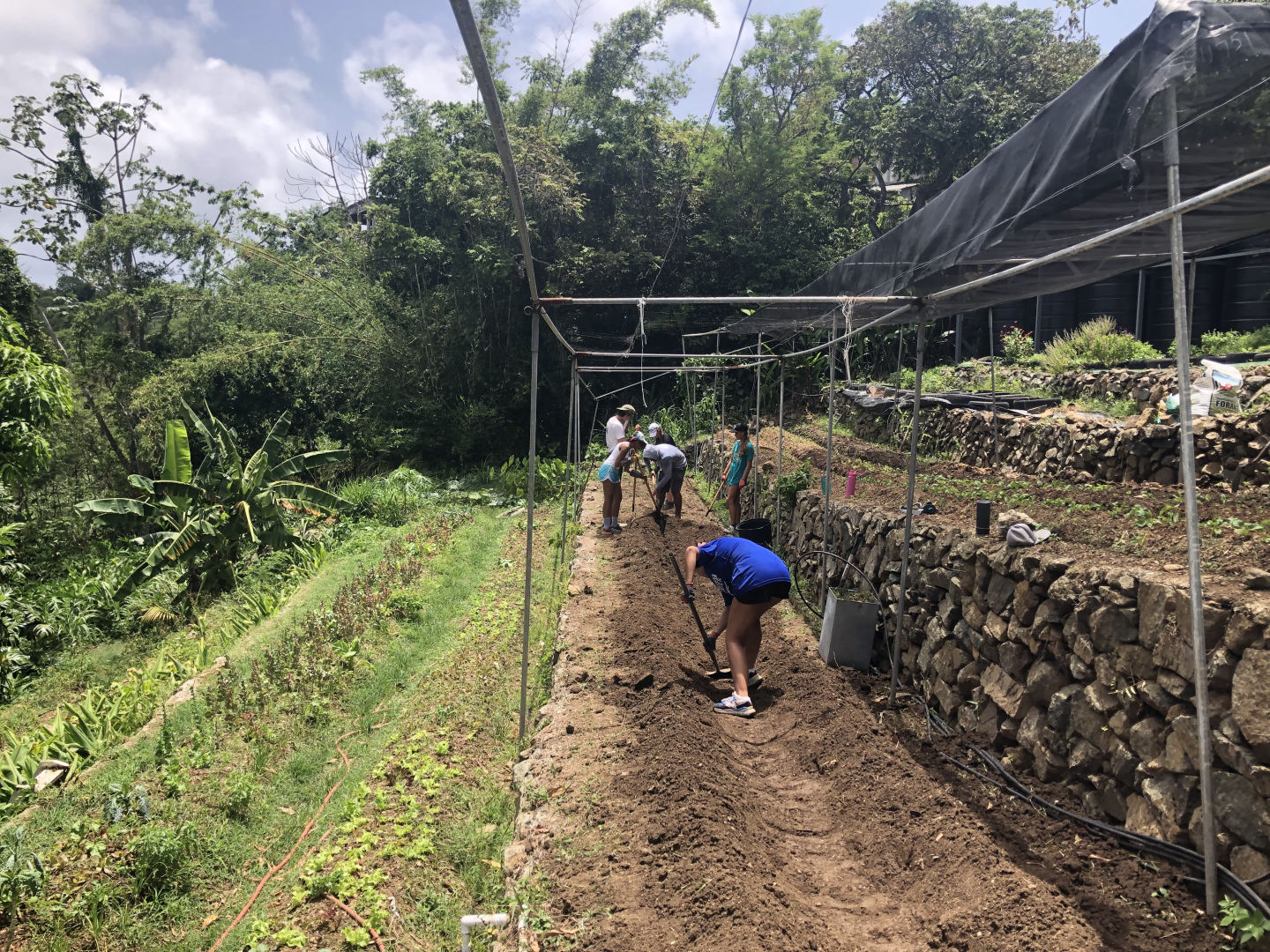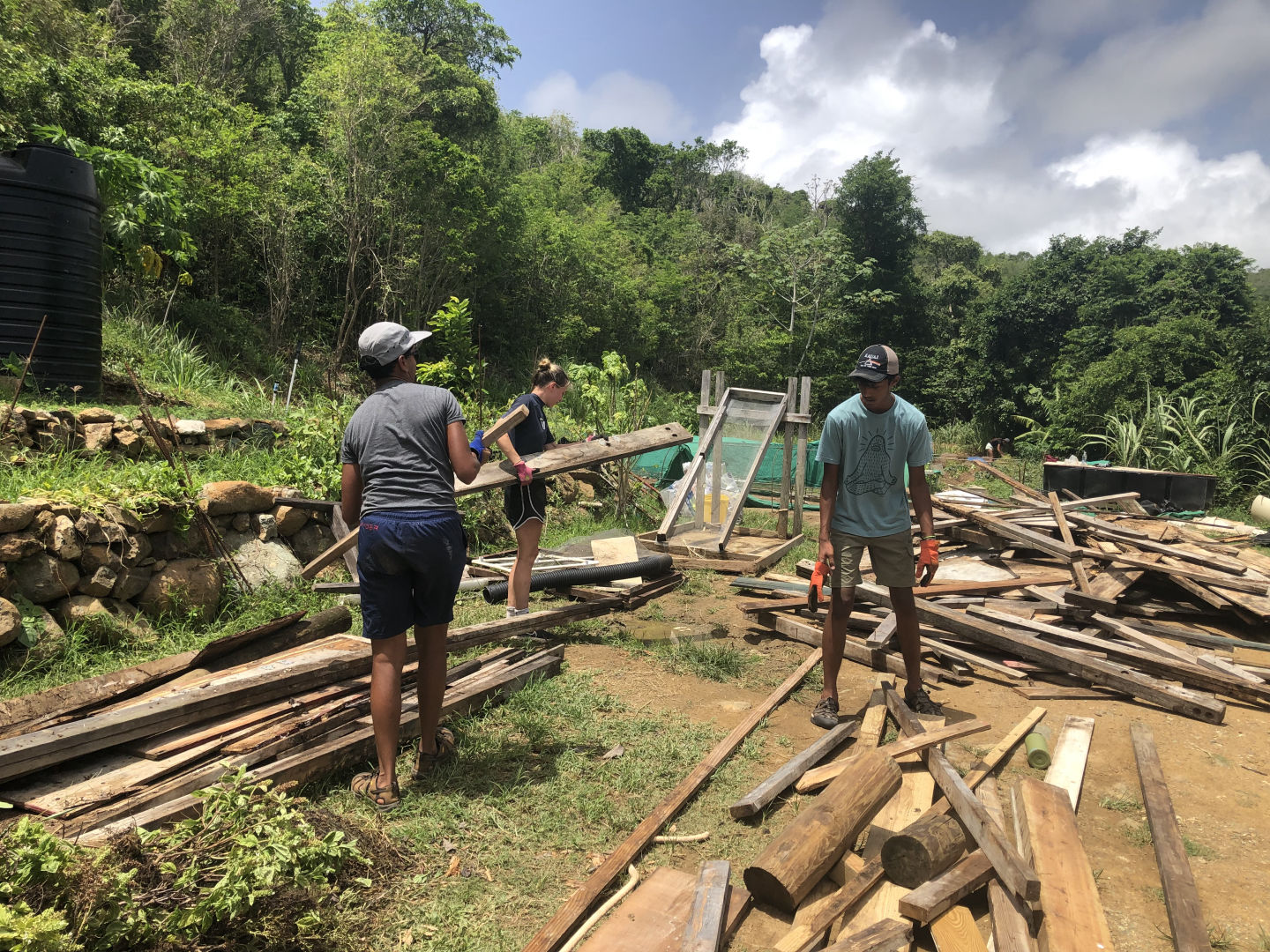 I woke up this morning to Edie and Samira looking very uncomfortable, sleeping on a tiny side table and chairs, and Aditya… on the galley (kitchen) floor. I then was told it rained one too many times on those poor outside sleepers. Meanwhile, I was oblivious in the comfort of the Blue Lagoon with Talula and Manola. We ate cereal and oatmeal again for breakfast and immediately got on the dinghy to a farm on Tortola. I didn’t really know what to expect when Riley told us this would be the most challenging service project yet…