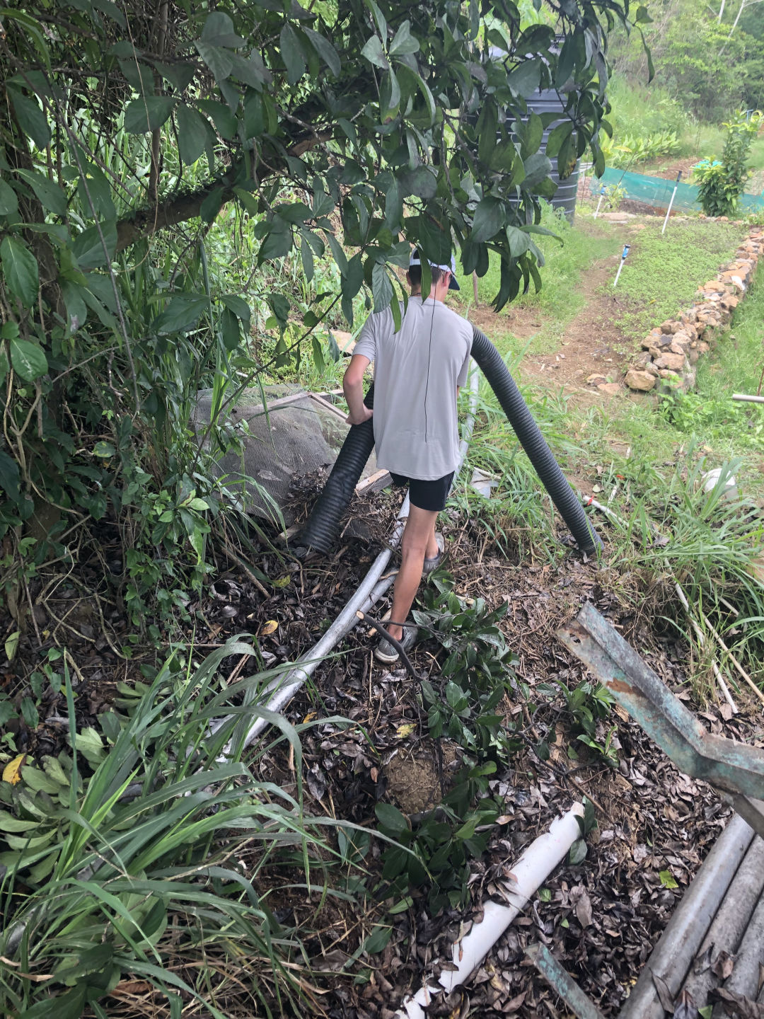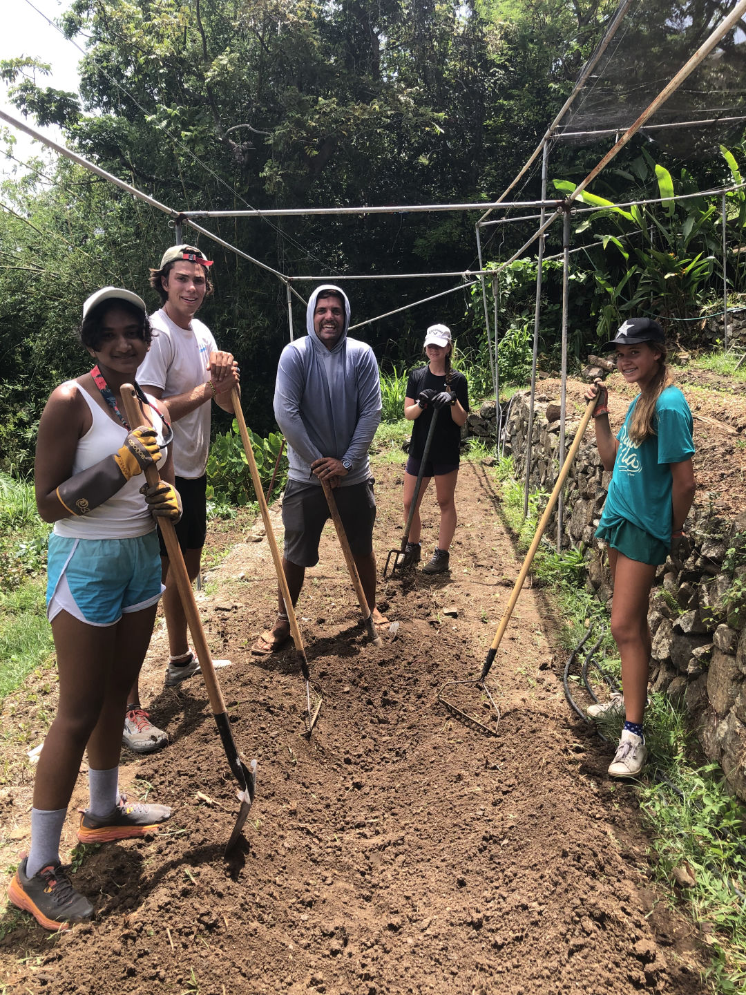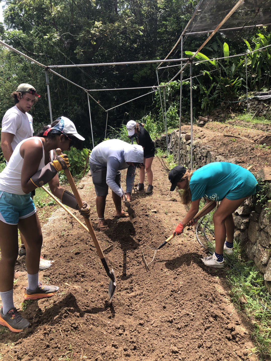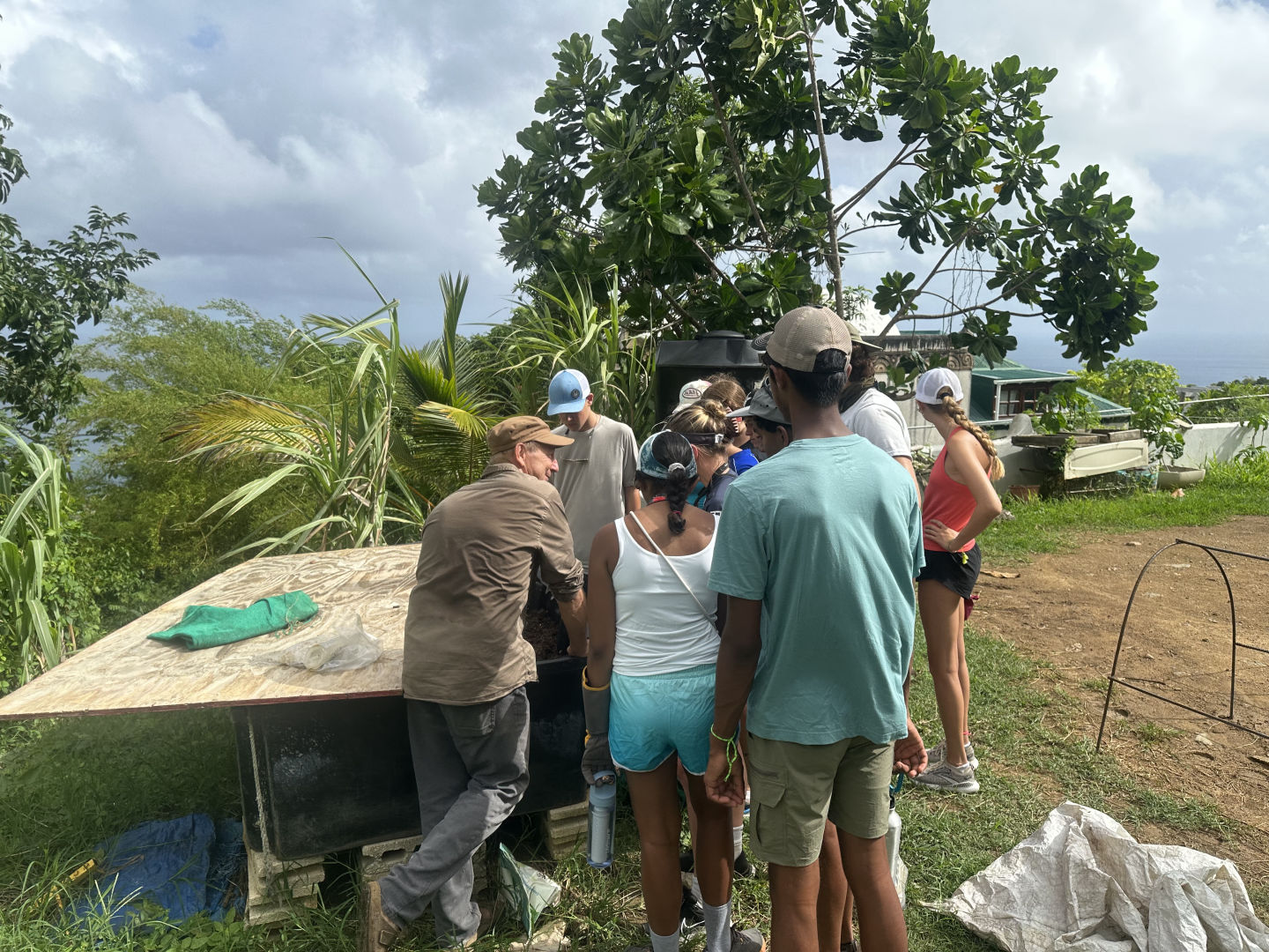 I woke up this morning to Edie and Samira looking very uncomfortable, sleeping on a tiny side table and chairs, and Aditya… on the galley (kitchen) floor. I then was told it rained one too many times on those poor outside sleepers. Meanwhile, I was oblivious in the comfort of the Blue Lagoon with Talula and Manola. We ate cereal and oatmeal again for breakfast and immediately got on the dinghy to a farm on Tortola. I didn’t really know what to expect when Riley told us this would be the most challenging service project yet…