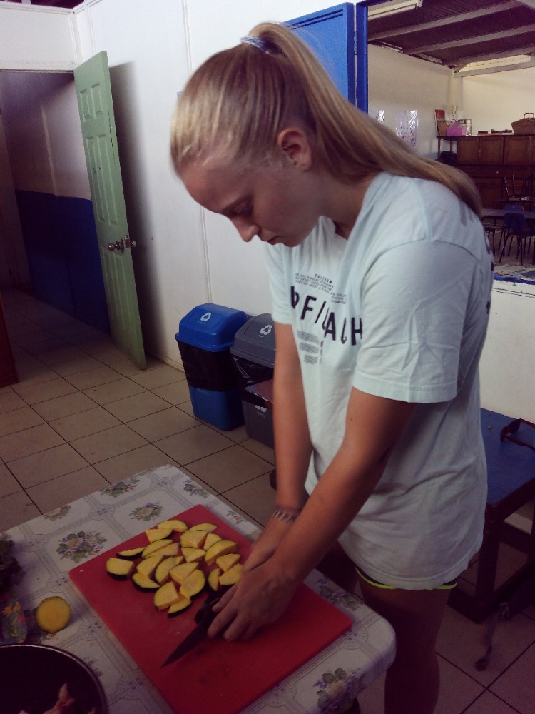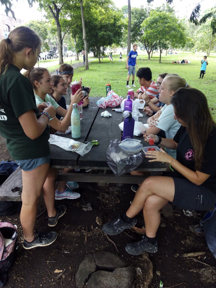 We woke up at our host families for the second last time today. After the brief drive to La Carpio, we chopped vegetables and cooked food that we would later serve at a “soup kitchen” type place in San Jose. I think I speak for everyone when I say this was one of the most interesting things we’ve experienced. We’ve heard all the stories but communicating and being with the homeless directly brought an entirely new perspective on their situation to our attention. We also spent some time playing volleyball and frisbee at a local park and later, before a delicious goodbye dinner, we had a dance class with the man I can easily say is the best dancer in Costa Rica. To finish the night we had a talent show.
