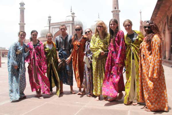 The group woke for their last day in Delhi. After a delicious breakfast, we toured Jama Masjid, India’s largest mosque, as well as the Red Fort, the massive and brilliantly red sandstone palace built by the 17th century Mughal Emperor Shah Jahan (who also built the Taj Mahal). Despite the chaotic streets and stifling heat, they were grand sites to see.
