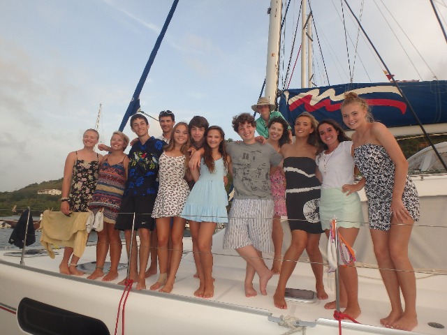 The first week of the program the boys and girls seemed pretty divided, but as the week came to an end, we noticed that the group was becoming more of a unit. The first to leap was Ladislas. He befriend the girls early, and the rest of the guys followed along. In just a few days time Graham, Ladislas, Linus and Eli were all hanging out with the girls on the bow and jumping on the trampoline as we sailed over the wakes. Graham was often looking for a job to do. He was always willing to pick up the jobs that nobody else would. His squeeze answers and questions continuously kept the group guessing and entertained with his wit and dry humor. Usually, when the staff needed a chore done, we ask the group for a volunteer. Eli learned very quickly that hiding behind someone would get him chosen for the job. He kept us laughing telling us stories about NYC and his life at home. It is hard to believe that Ladislas grew up in France because his English is almost perfect! He was constantly educating the group on French/American politics and policies. Always something new and fascinating. Linus, referred to as Dark Lord Sparkle Horse always had something to contribute to the conversation. The staff appreciated his detail orientated personality and ability to keep Moko Jumbie clean! Overall this session has been a blast, and we are sad to see it come to an end. We have watched all of the shipmates grow individually and work together as a team. We want to thank our shipmates for always staying positive and working hard even when times were hard. 🙂 Best wishes to you all!! -The staff of Moko Jumbie