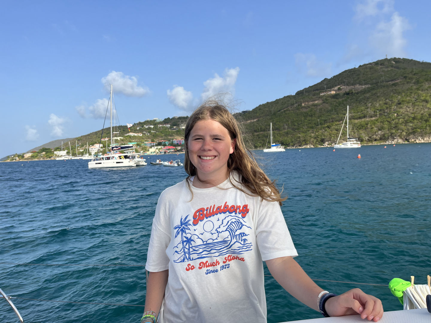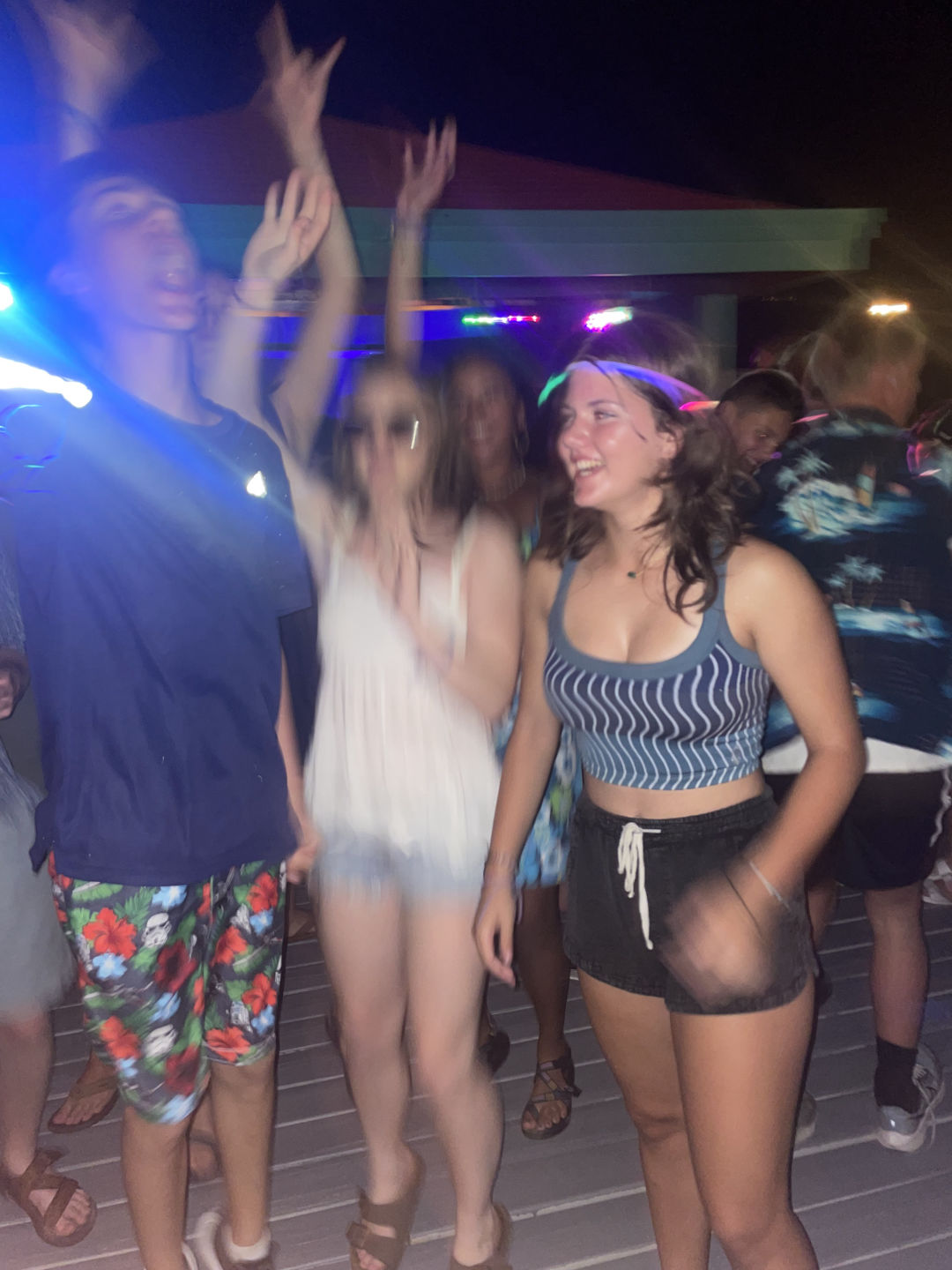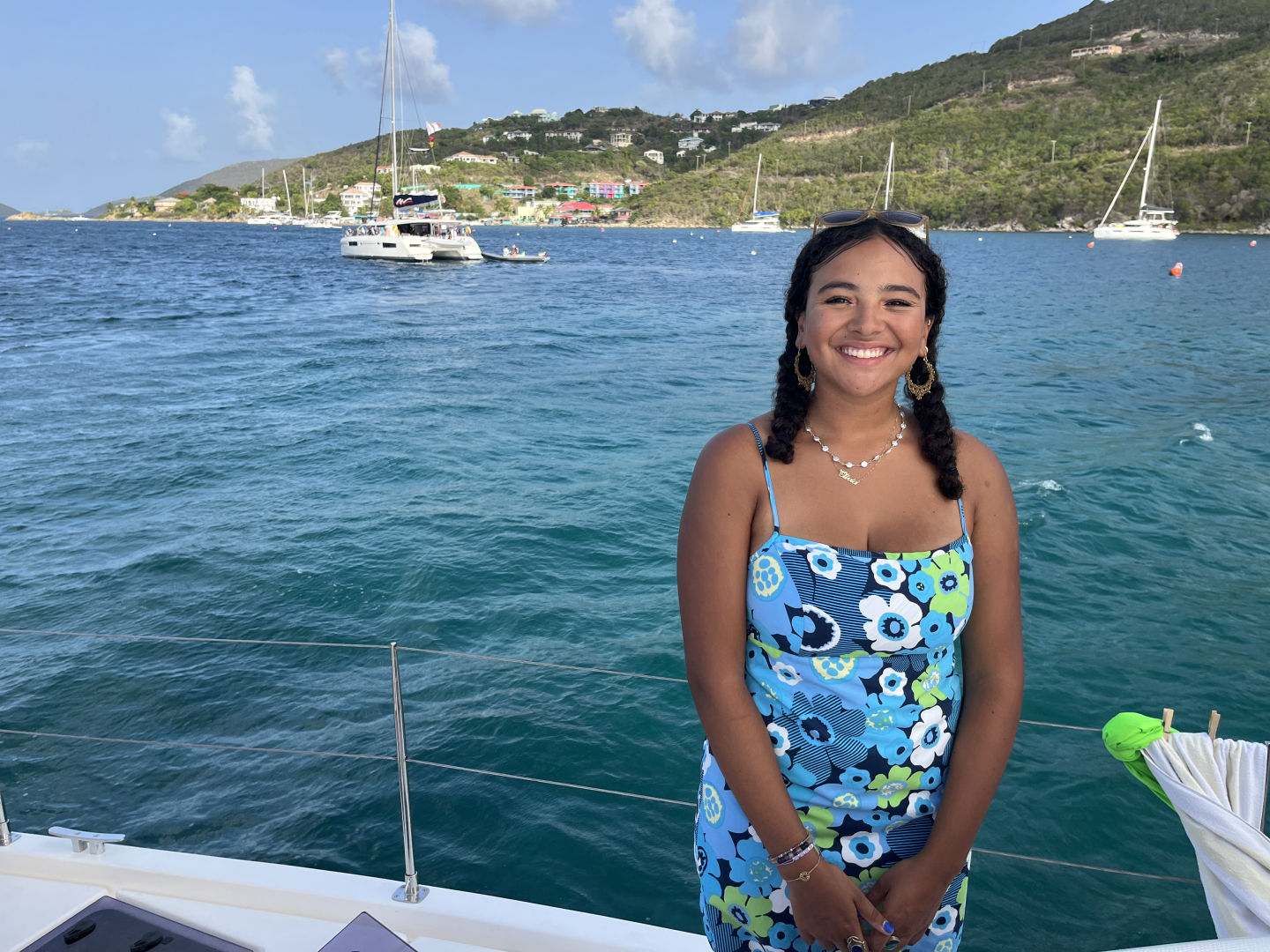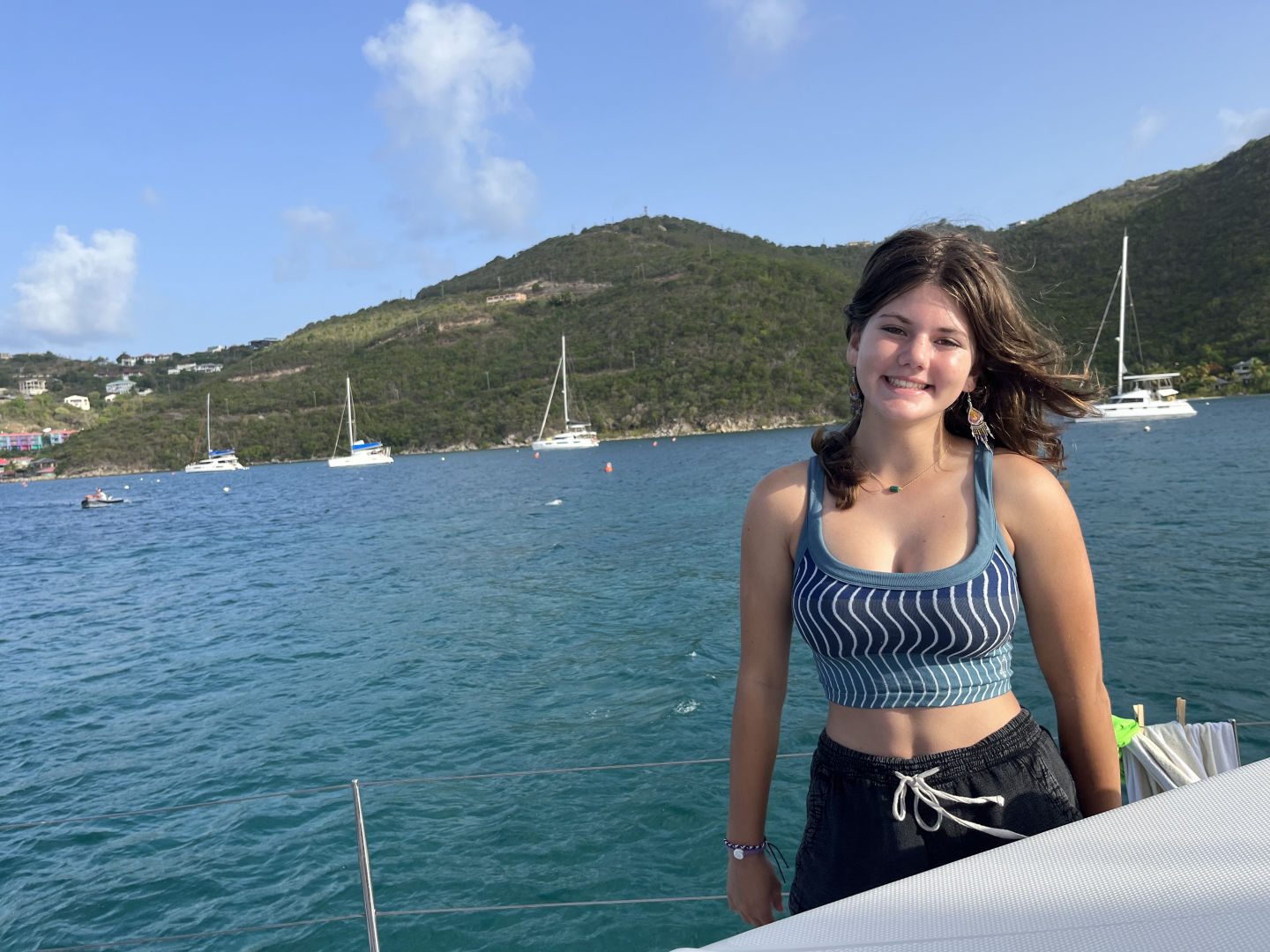 When we arrived on our boat, we were shocked to see our counselor, Chris, with a brand new haircut. He somehow looks even cooler now. Our lunch was a classic grilled cheese with Italian seasoning. After doing the dishes, we set sail to a new town where we finally got to shop and get a taste of the exquisite culture in the BVI. There were two main shops that our group of 12 hungry and needy teenagers raided. The items bought were mainly snacks, clothes, and jewelry. After our 30 minutes of shopping was up, we went back to the boat, where we were met with another surprise: the chance to talk to our wonderful friends and family. We miss you all so much, and hearing your voices was better than any touristy souvenir bought. The fun didn’t stop there. We dressed in our nicest clothes and went to a beach party with the other 100-ish kids on similar ActionQuest journeys. There were Virgin Daiquiris of many flavors served, burgers, pulled pork, lemonade, salad, and other scrumptious food served. Finally, we danced our brains out on the dance floor. Today was a tiring but enjoyable day, and I can’t wait to sleep.