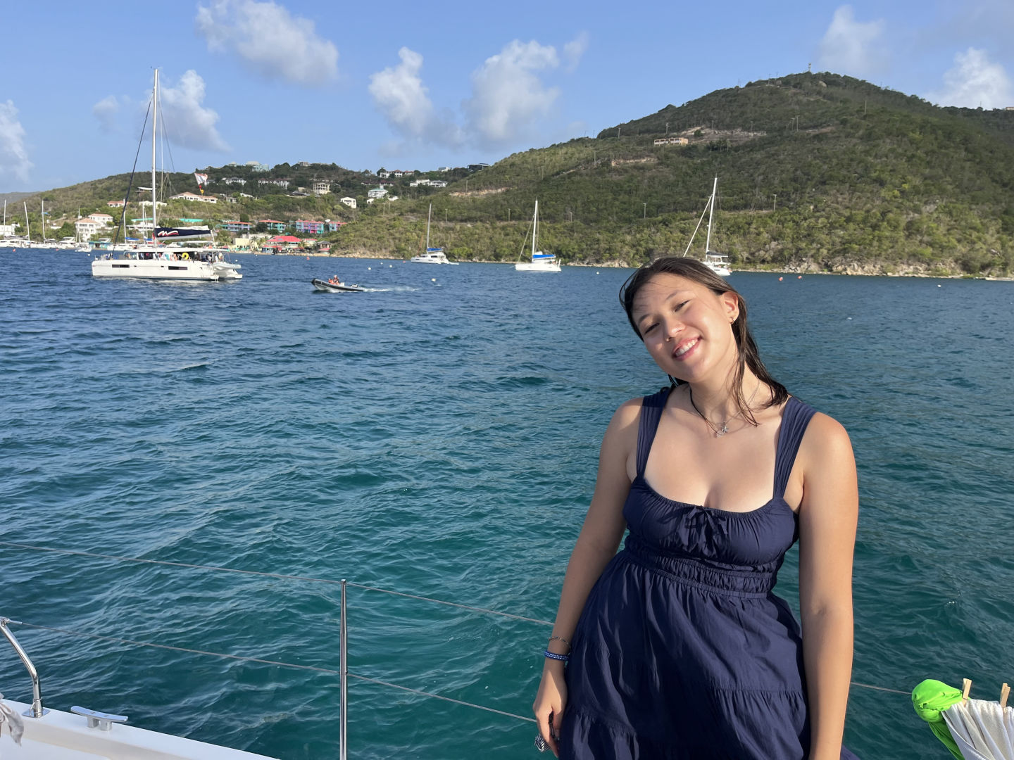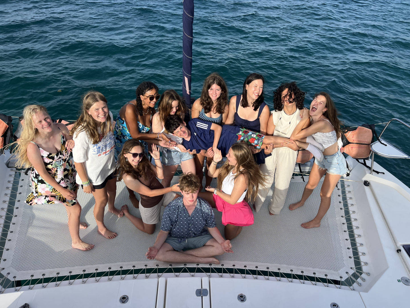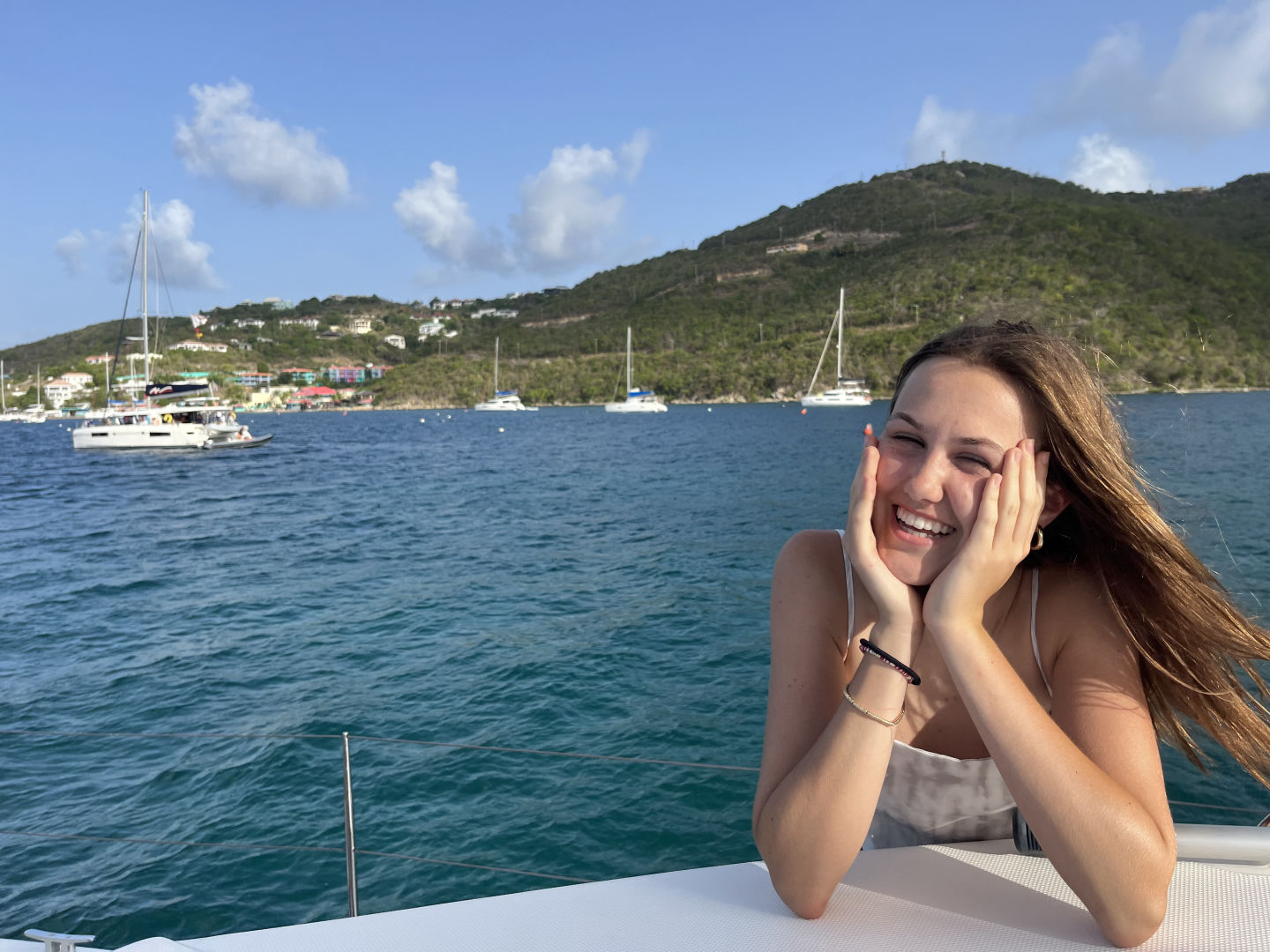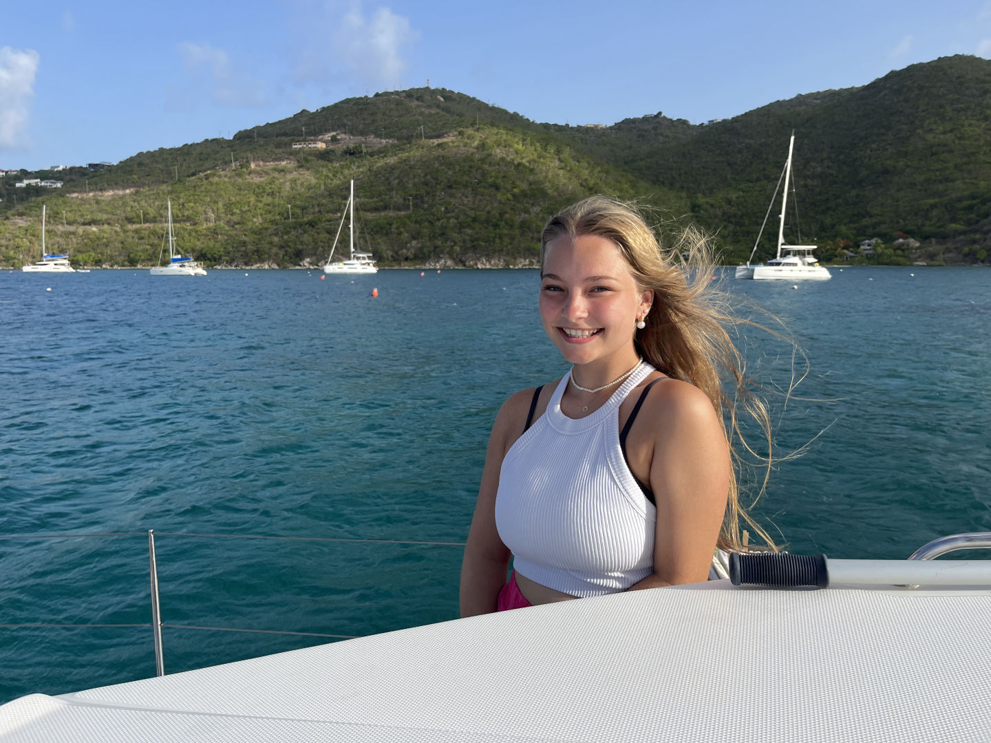 When we arrived on our boat, we were shocked to see our counselor, Chris, with a brand new haircut. He somehow looks even cooler now. Our lunch was a classic grilled cheese with Italian seasoning. After doing the dishes, we set sail to a new town where we finally got to shop and get a taste of the exquisite culture in the BVI. There were two main shops that our group of 12 hungry and needy teenagers raided. The items bought were mainly snacks, clothes, and jewelry. After our 30 minutes of shopping was up, we went back to the boat, where we were met with another surprise: the chance to talk to our wonderful friends and family. We miss you all so much, and hearing your voices was better than any touristy souvenir bought. The fun didn’t stop there. We dressed in our nicest clothes and went to a beach party with the other 100-ish kids on similar ActionQuest journeys. There were Virgin Daiquiris of many flavors served, burgers, pulled pork, lemonade, salad, and other scrumptious food served. Finally, we danced our brains out on the dance floor. Today was a tiring but enjoyable day, and I can’t wait to sleep.