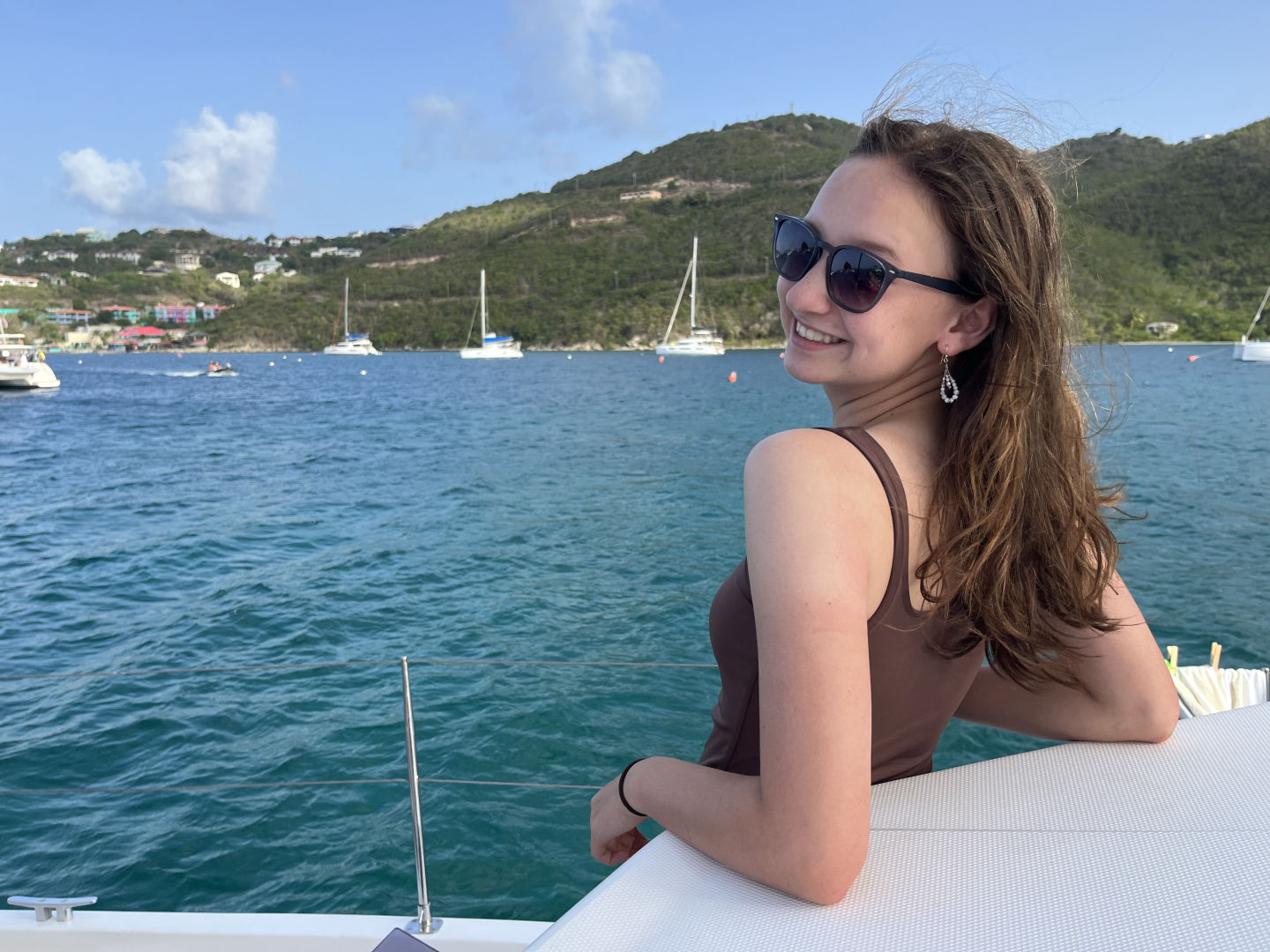 Hi guys, my name is Stella, and I am the skipper. Currently, I’m excited to sleep after a long and eventful day in the BVI. We started the morning with a breakfast handcrafted by our chefs, Nicole and Emma, consisting of fried and scrambled eggs, toast, and cantaloupe. Something that I learned on this trip is that crushed red pepper tastes good with EVERYTHING. After breakfast, we attempted to finish the last of our sea turtle tagging videos, which were very laggy. Then, we rode off on the dinghy to a nearby reef to search for sea turtles we could grab and tag. Although we were unsuccessful today, we did, in fact, have a wonderful time observing stingrays, the vibrant coral, and a mean jellyfish that decided to sting Luke (He is okay and healing wonderfully).