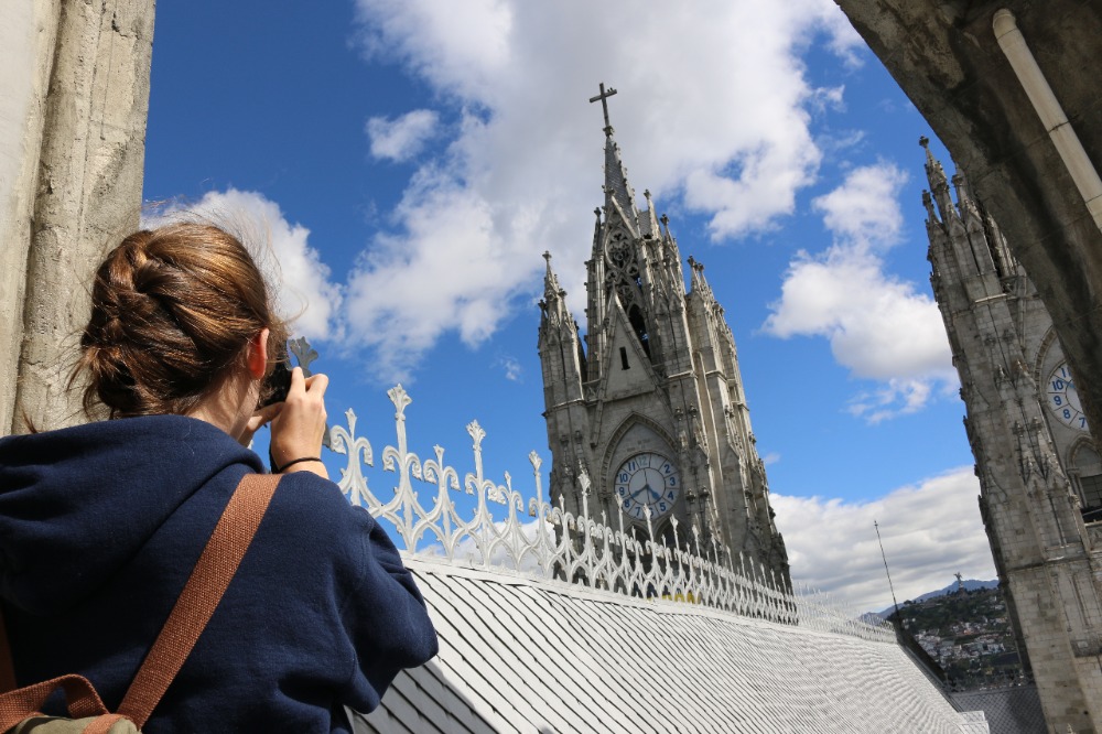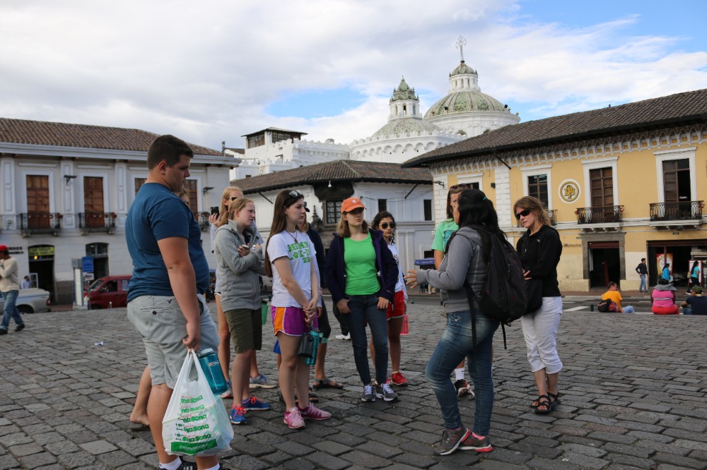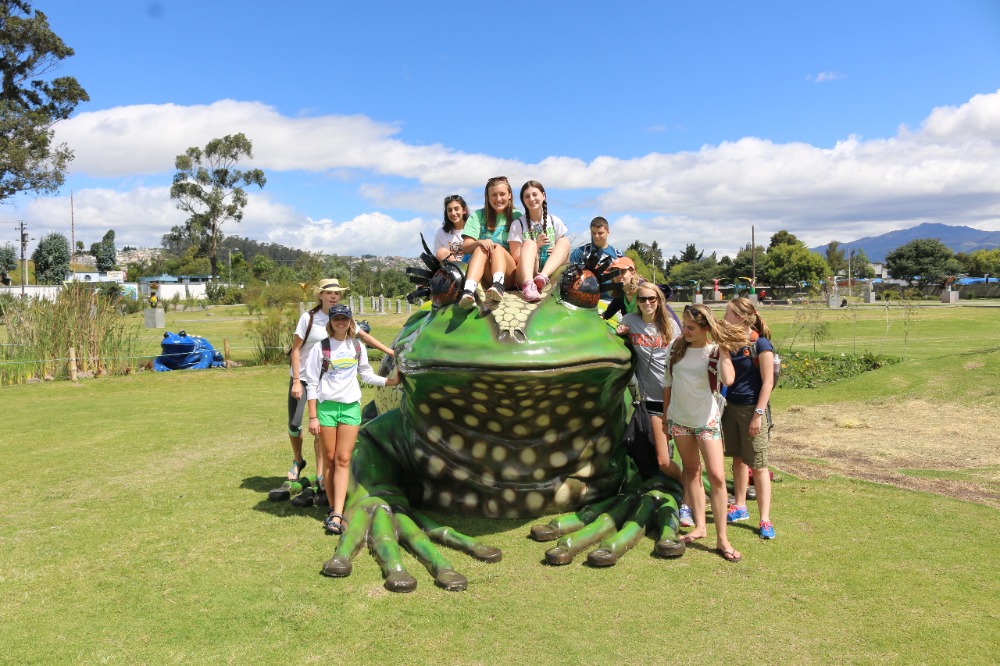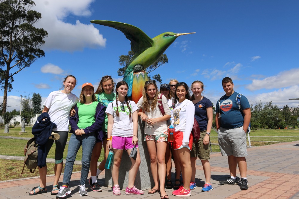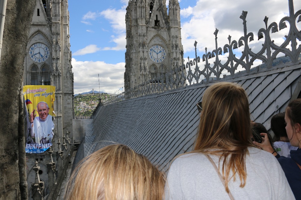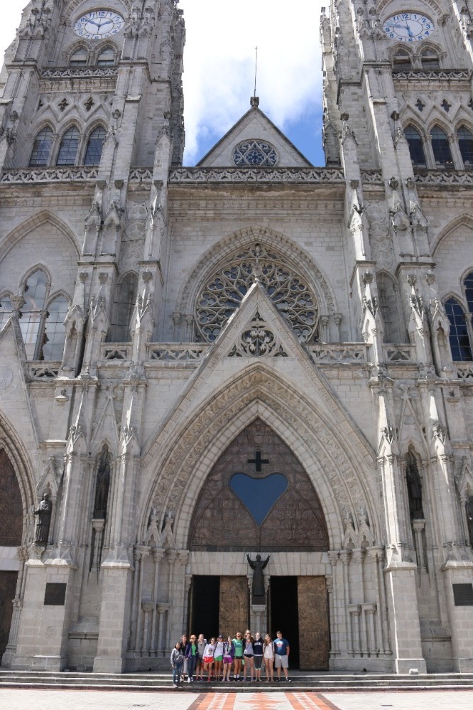 The first day of our Ecuadorian adventure began with a tasty and delicious breakfast served by our hosts at Airport Garden Hosteria. After breakfast, we got on a bus and began our hour-long trek into the heart of Quito. When we arrived at our first destination, Parque Itchimbia, we were all overcome by the view of hundreds of homes embedded into the long, vast mountains surrounding this pocket of civilization. At the park, we had our first real adventure: going to the bathroom without lights, however, through our resourcefulness (phones with flashlights) we made do. We played many get-to-know-you games, talked about Ecuadorian culture, and expressed our fears and excitements about the upcoming days (in which we all agreed we were super excited for being emerged in a new culture but also worried about getting homesick). After finishing up at the park, we went into the historical district of Quito, also known as Old Town. We had an amazing tour guide, Stephanie, who took us to many places in a very short amount of time. These places included the cathedral called La Basilica, multiple city squares, and The Society of Jesus Church in Plaza de San Francisco. At the cathedral (side-note: Pope Francis will be visiting next month), we were all tested to our limits when we climbed up over three stories on open-air ladders to the top of one of the towers. While walking through the squares, we were able to not only learn the significance of many of the buildings but also interact with some of the locals. At The Society of Jesus Church, we were all overcome by the extensive amount of gold leaf covering all the walls (side-note: it is one of the wealthiest churches in South America) and impressed with many of the histories behind some of the artifacts. After a day of new experiences in Quito, we returned to our hostel, and now we are getting ready for our adventure tomorrow…..flying to the AMAZON!